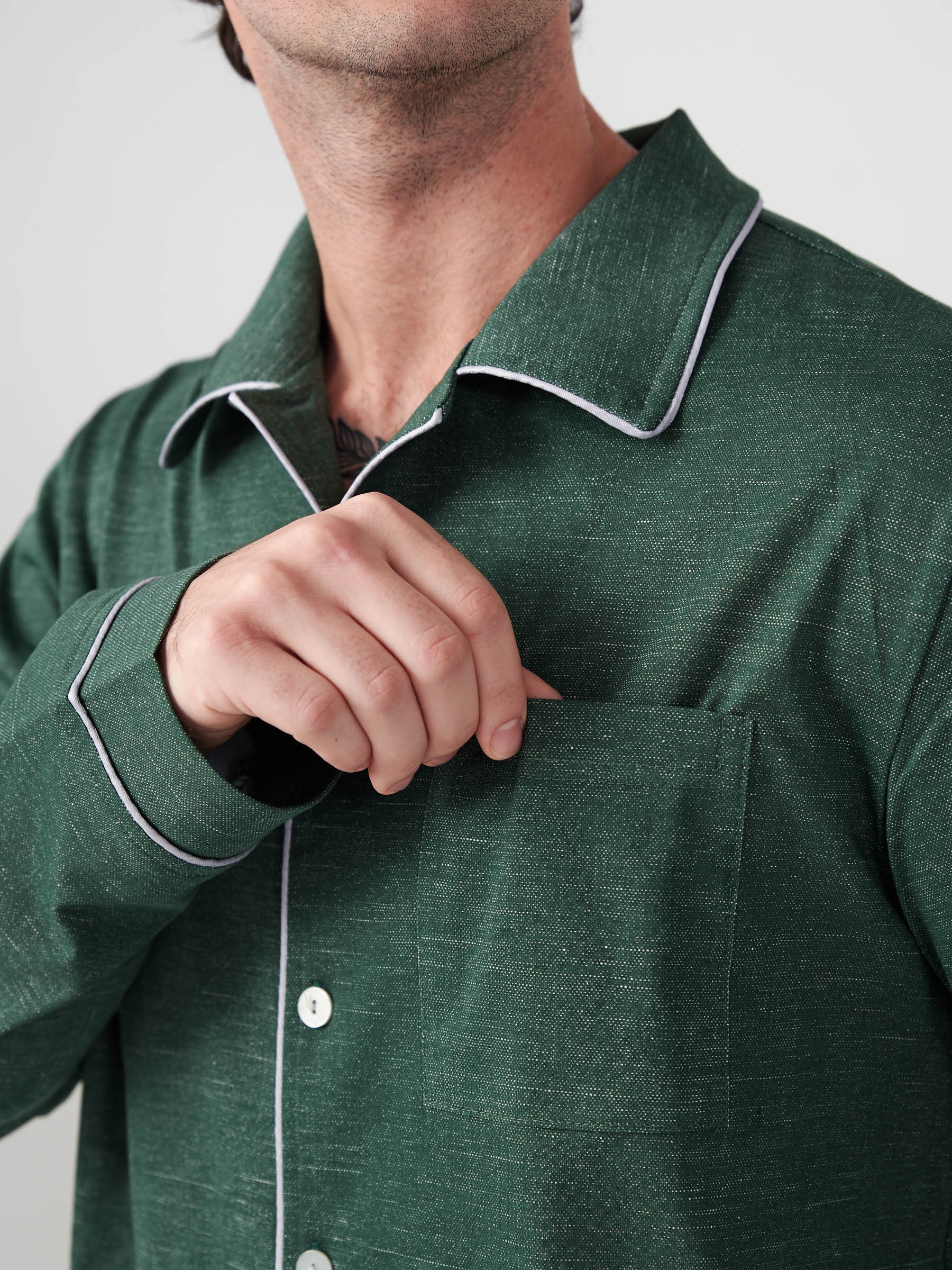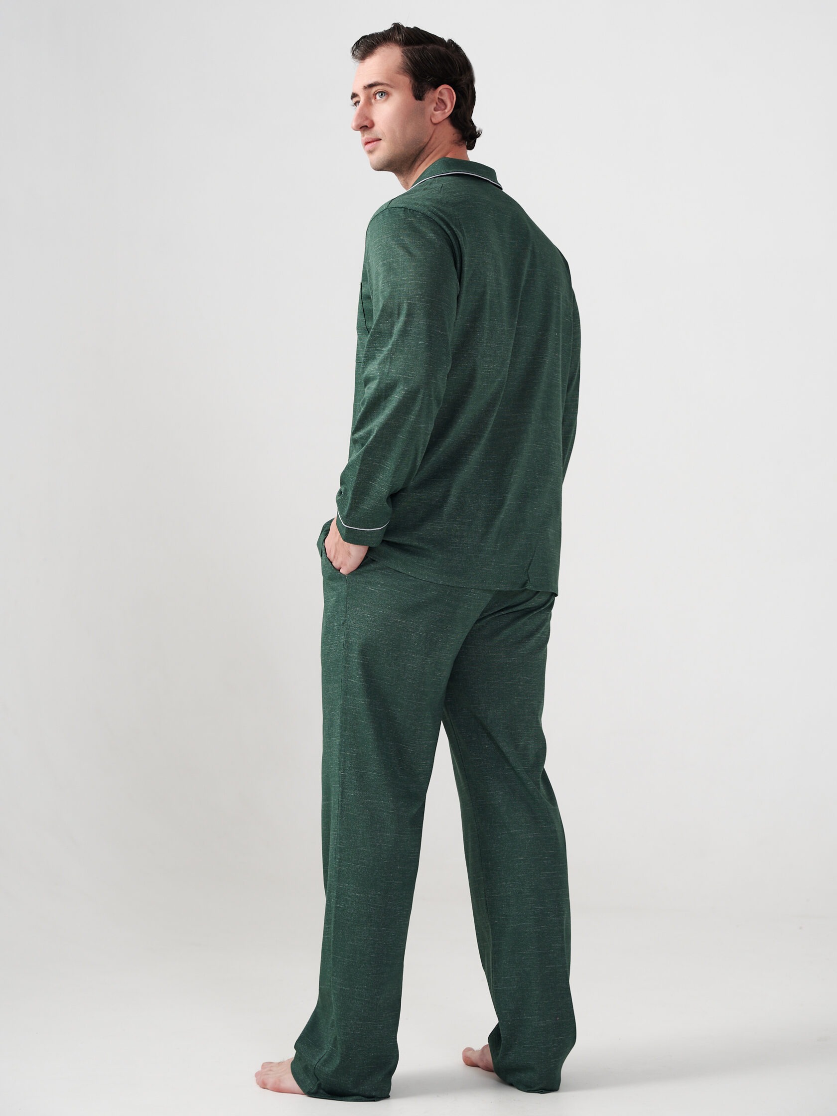 Мужская пижама "Лен" (классическая) 2417-К / Зеленый