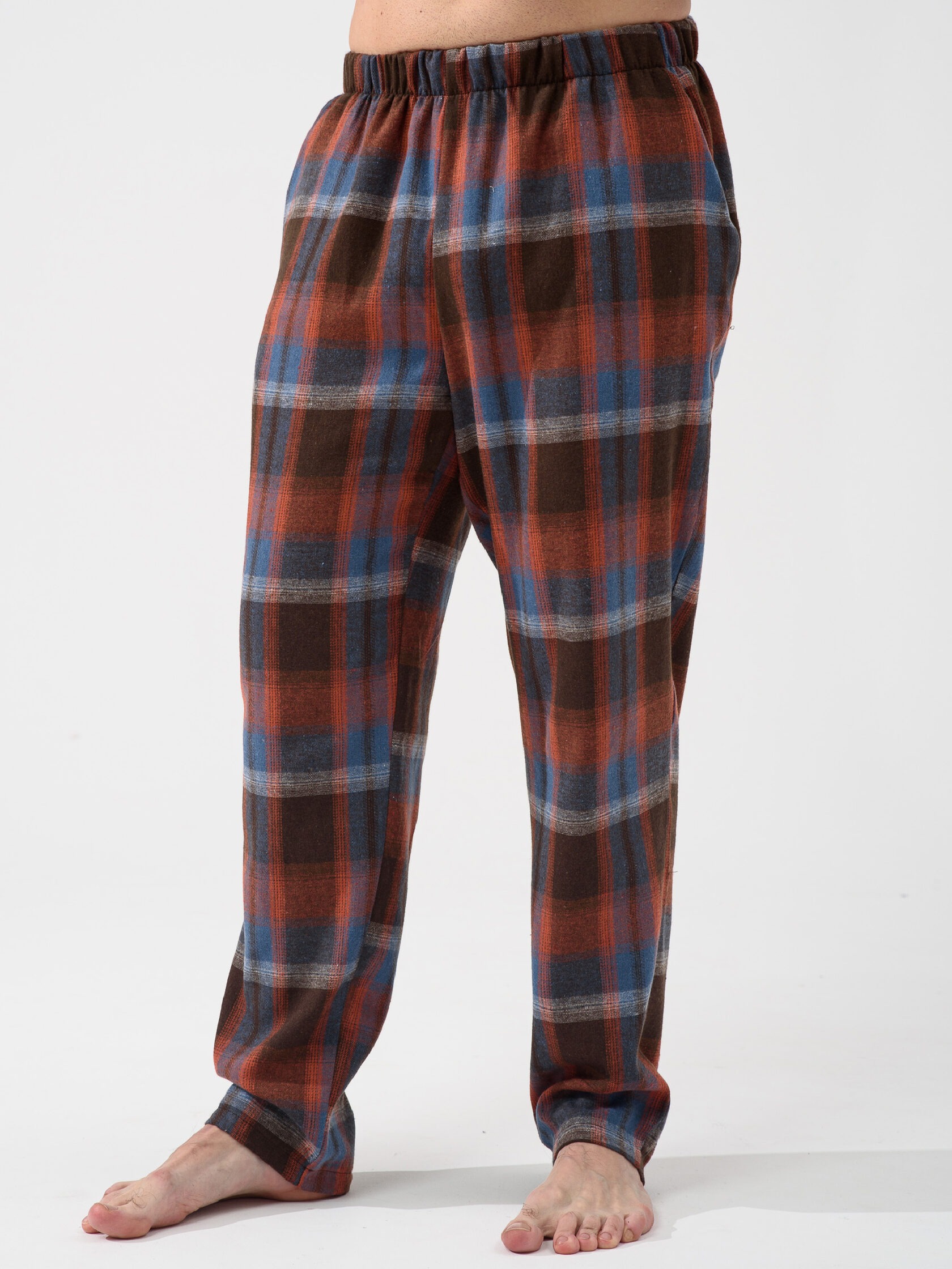 Мужская пижама "Огни ЕКБ" 2431-К/Ф состоит из футболки и свободных брюк. Мужской костюм отшивается из комбинированных тканей - верх из кулирки, брюки из фланели.