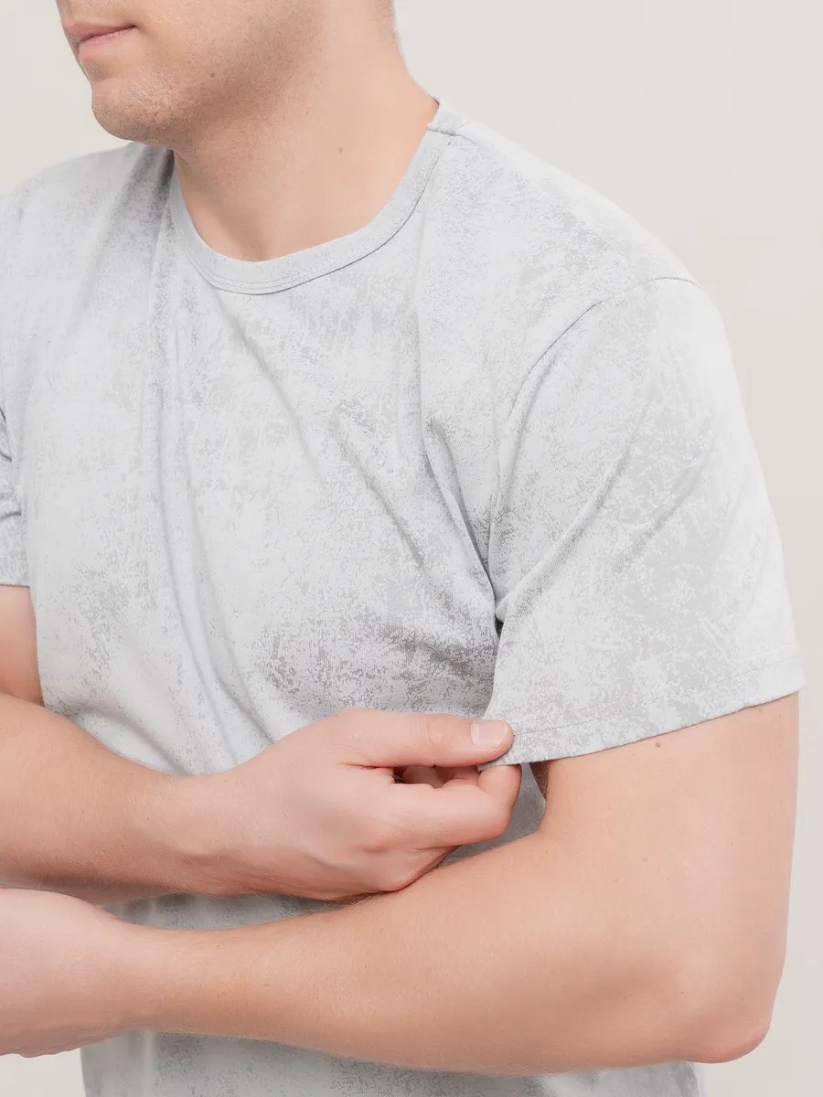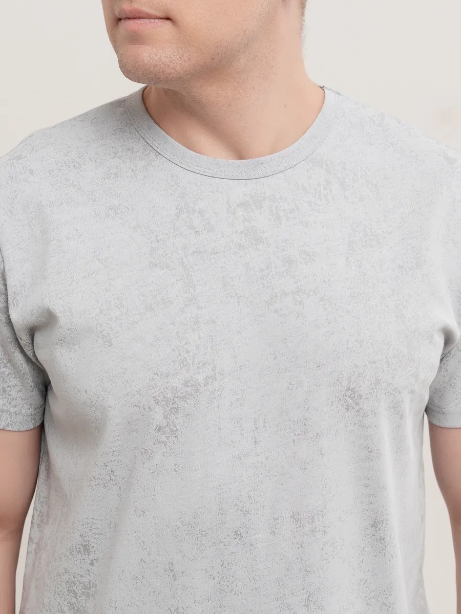Футболка выполнена в классическом свободном крое с круглой горловиной, обработанной окантовкой, которая не растягивается и держит форму. Короткий рукав удобен и практичен в любое время года. Особый акцент модели — ткань с эффектом «варёнки», создающая модный внешний вид и уникальный оттенок каждой вещи.