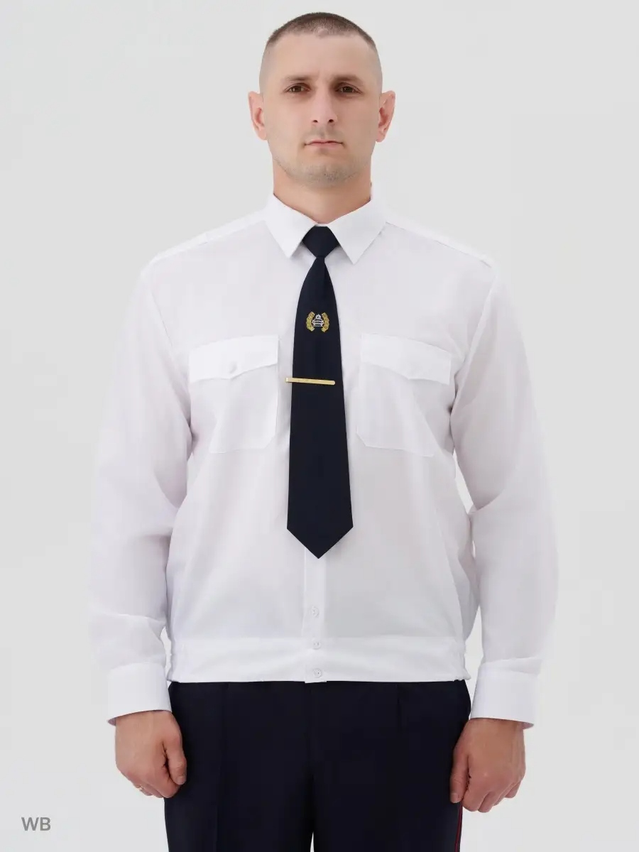 Рубашка форменная с длинным рукавом для сотрудников Полиции, ДПС, с застежкой до низа на восемь-девять пуговиц. Полочки рубашек с верхними накладными карманами с защипами, с клапанами, застегивающимися на пуговицы. Спинка с кокеткой. Рубашка с цельнокроеным поясом, стянутым в области боковых швов эластичными лентами. Воротник отложной с отрезной стойкой. Сорочка форменная для мужчин.