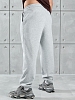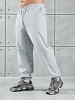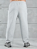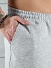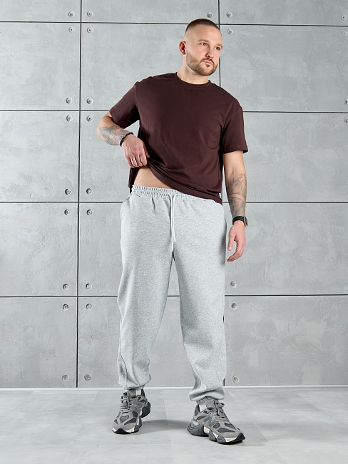 Брюки мужские из трикотажного полотна "лининг" свободного покроя, со смещенными к центрам передних половин боковыми швами, карманами в боковых швах и притачным поясом с эластичной тесьмой внутри. Нижние срезы обработаны подгибкой с эластичной тесьмой. Для регулирования степени прилегания изделия по талии предусмотрен шнурок, вставленный через две обметанные петли в центре пояса спереди.