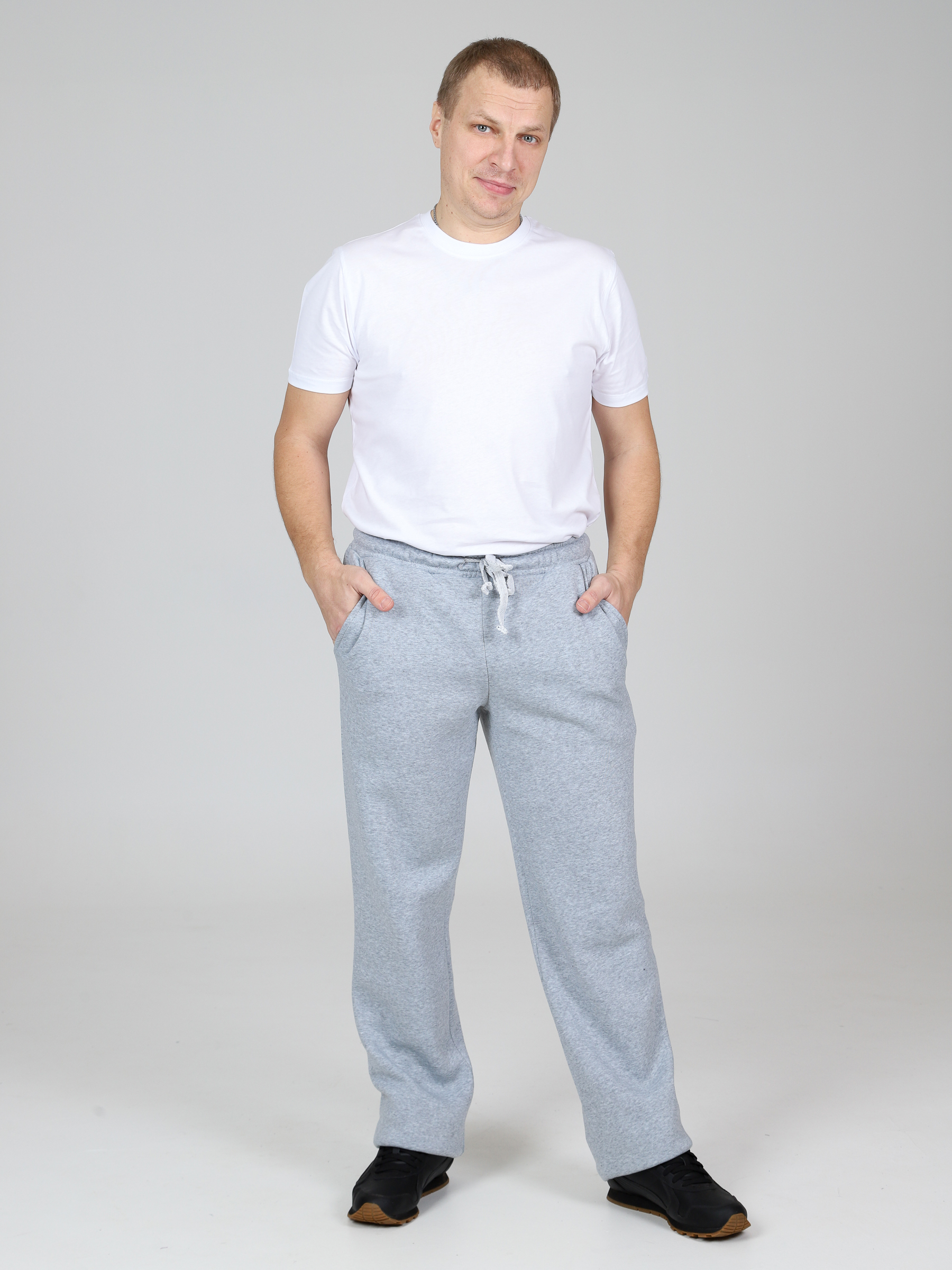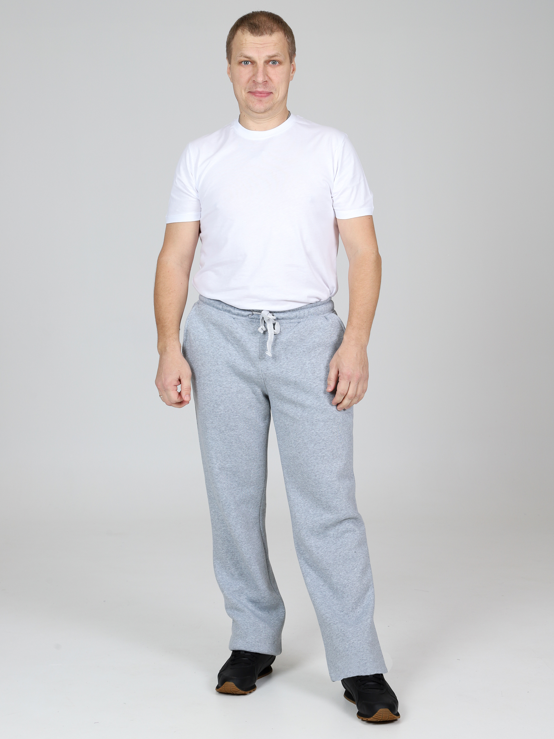 Брюки футер с начесом мужские, на резинке и регулирующих завязках. Сбоку по шву удобные и глубокие карманы. Уникальное сочетание высокого качества и стильного фасона. Однотонные прямые брюки – базовая вещь в мужском гардеробе, впишутся в любой стиль милитари, спортивный. В наших брюках настолько тепло и комфортно, что Вы не захотите их снимать. Начес на изнаночной стороне очень приятен телу. Идеально подходят для повседневной носки, для прогулок с коляской, на работу, на рыбалку и для спортивных занятий.