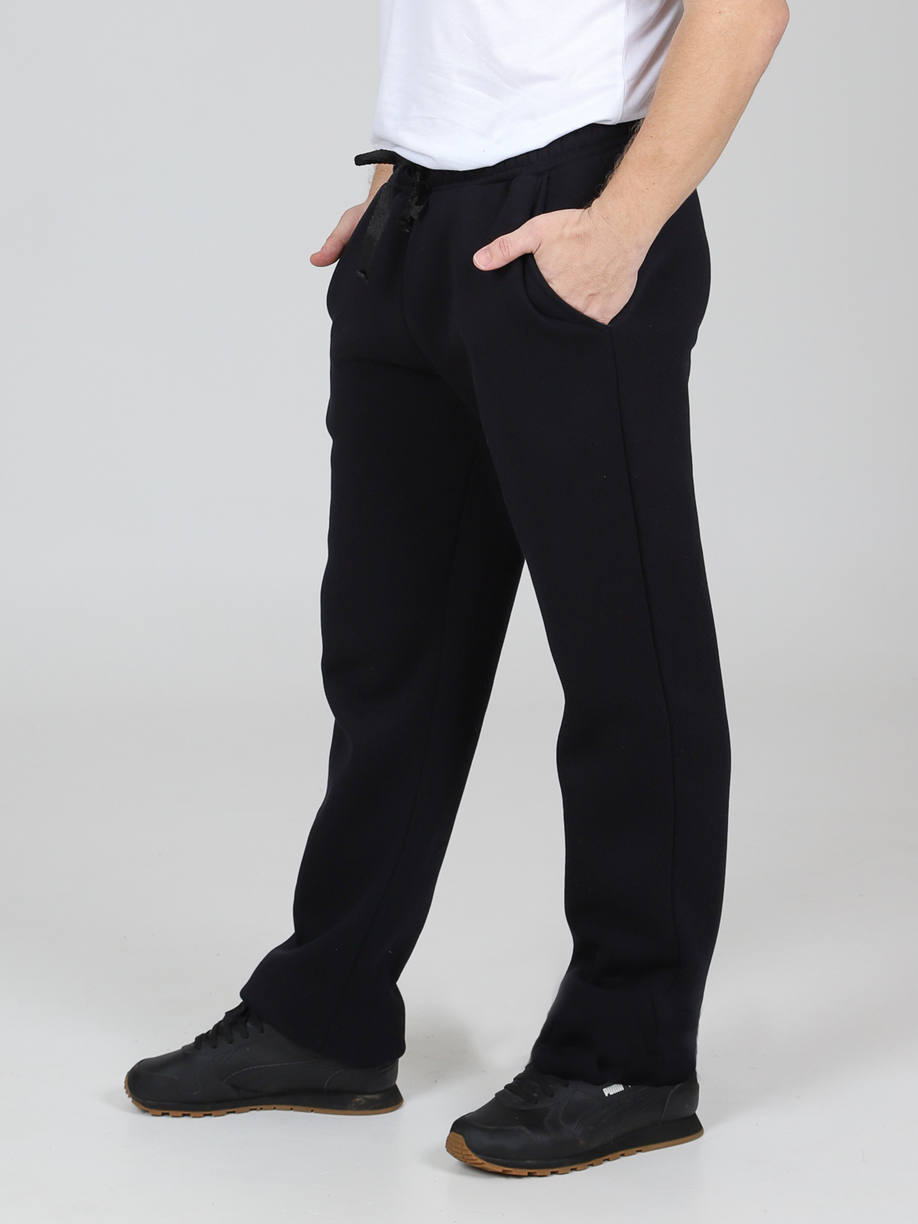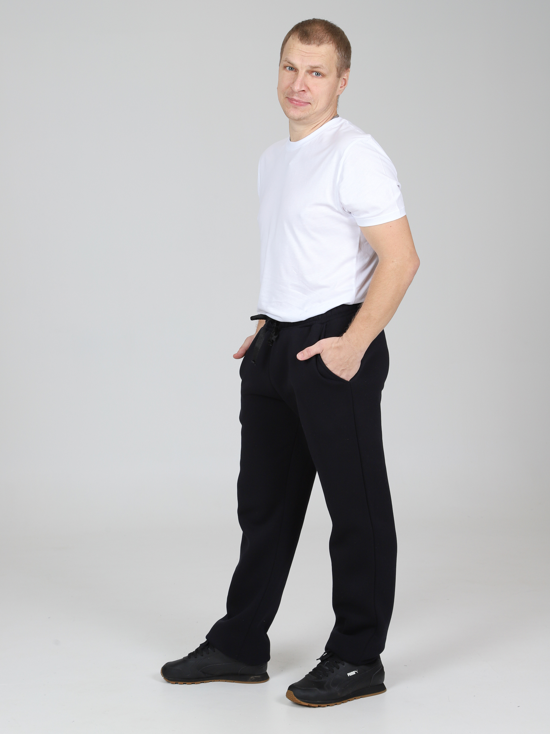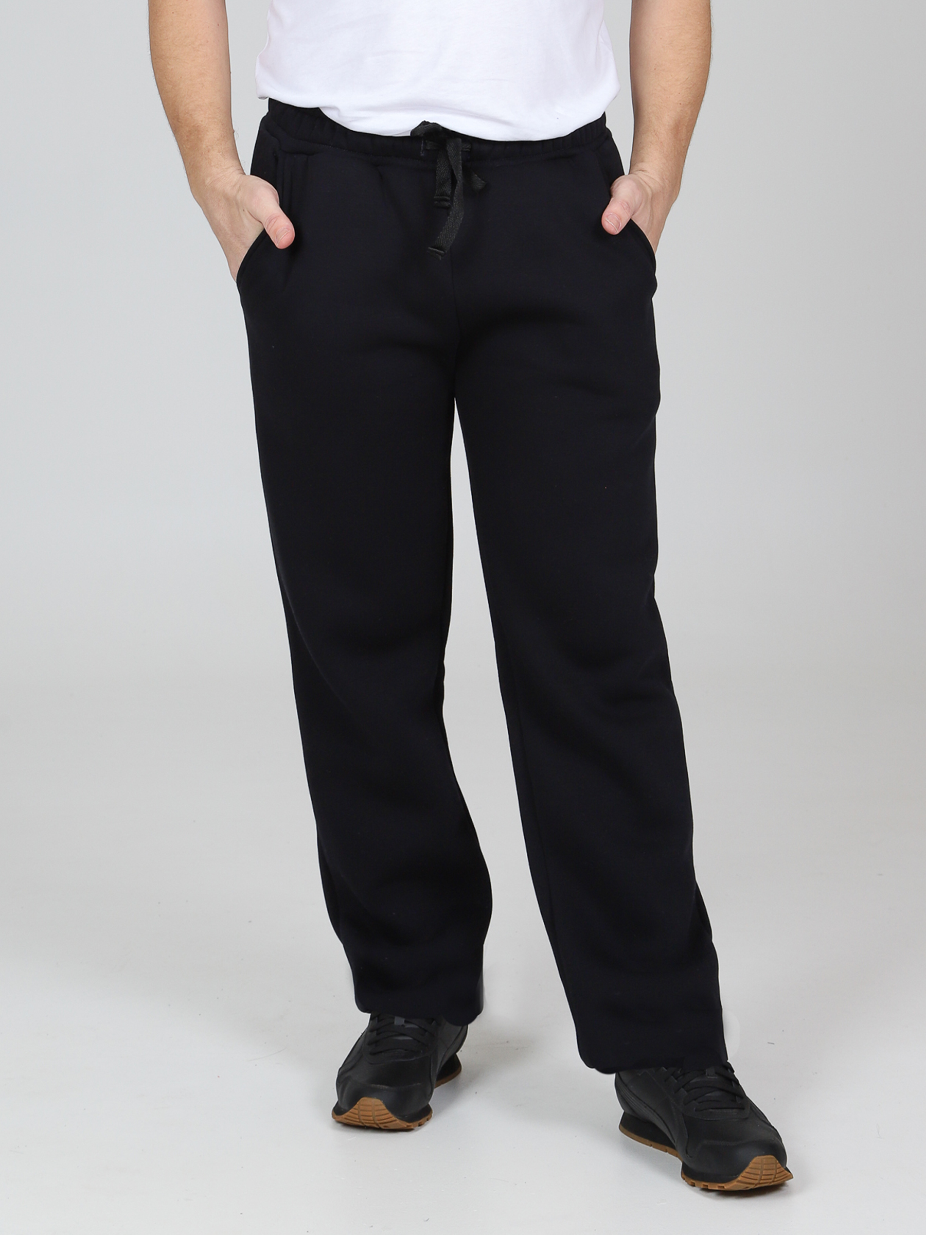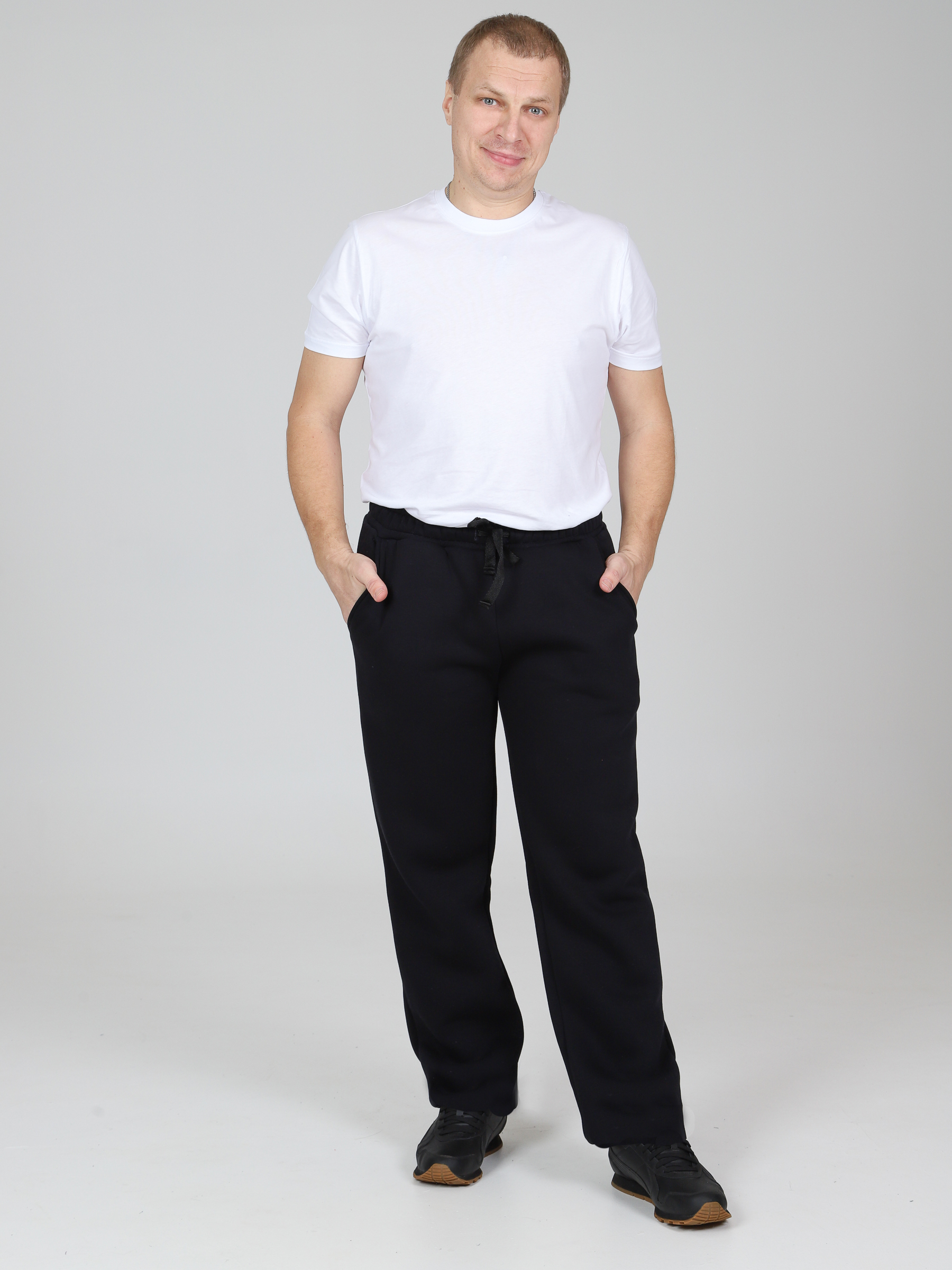 Брюки футер с начесом мужские, на резинке и регулирующих завязках. Сбоку по шву удобные и глубокие карманы. Уникальное сочетание высокого качества и стильного фасона. Однотонные прямые брюки – базовая вещь в мужском гардеробе, впишутся в любой стиль милитари, спортивный. В наших брюках настолько тепло и комфортно, что Вы не захотите их снимать. Начес на изнаночной стороне очень приятен телу. Идеально подходят для повседневной носки, для прогулок с коляской, на работу, на рыбалку и для спортивных занятий.