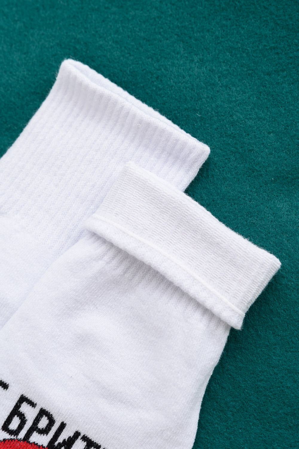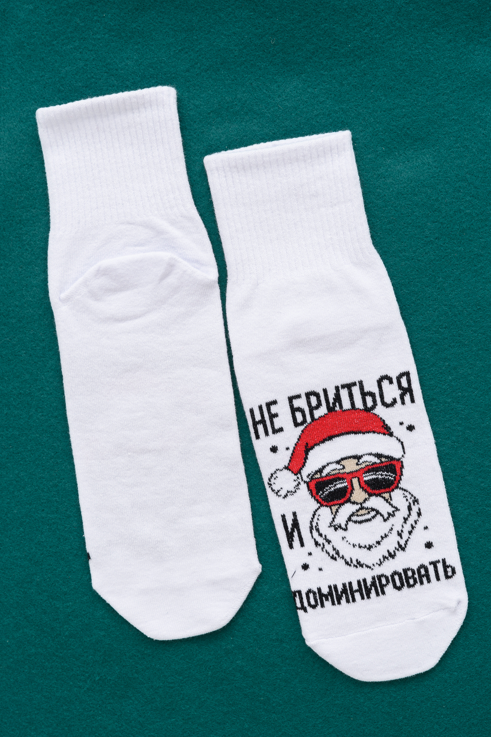 Новогодние мужские носки. На основной части носка изображение Санта Клауса и надпись Не бриться и доминировать. В комплекте 1 пара.