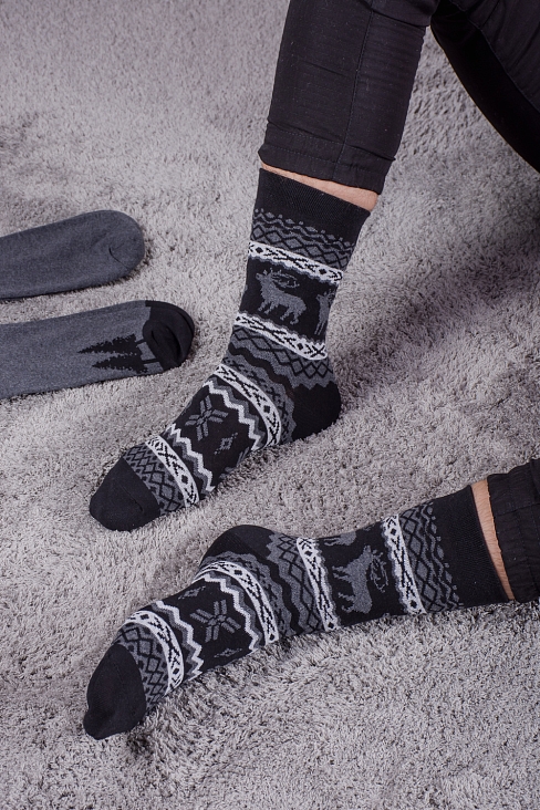 Набор мужских носков с лаконичным зимним орнаментом. В упаковке 3 пары.