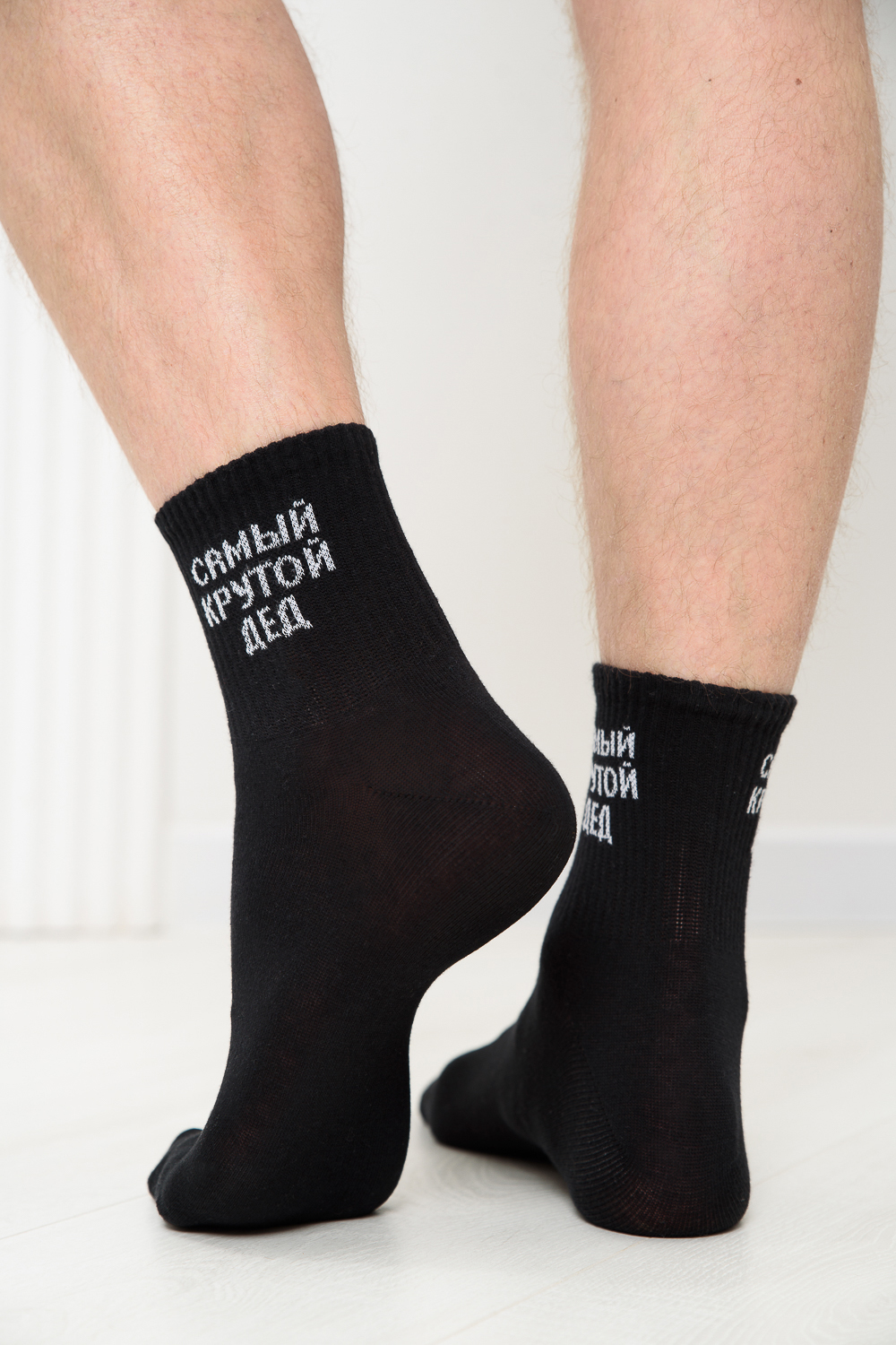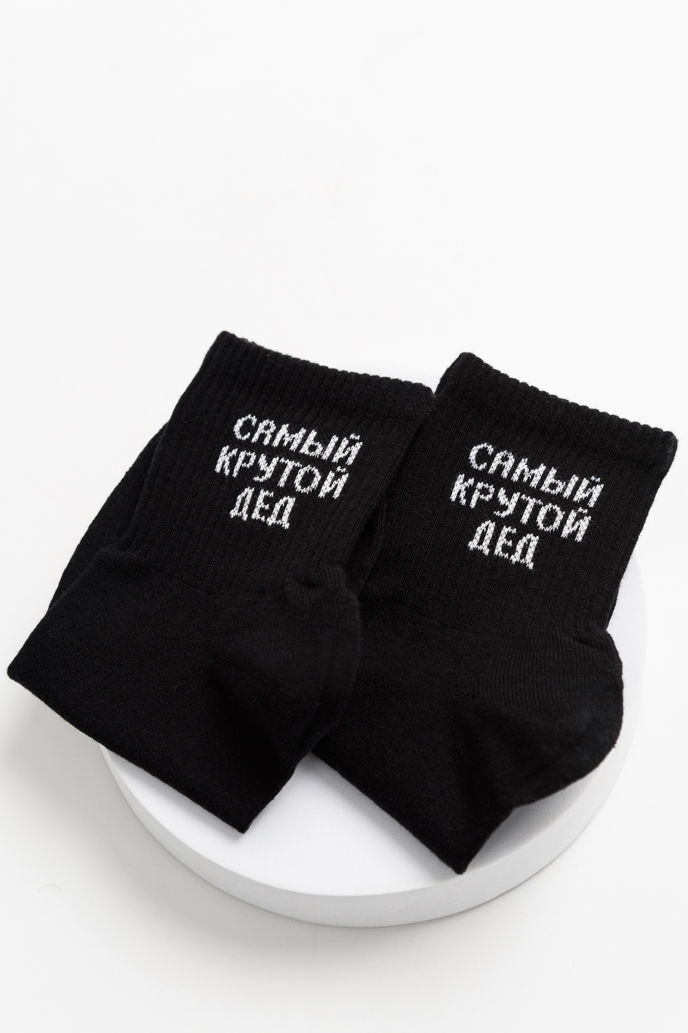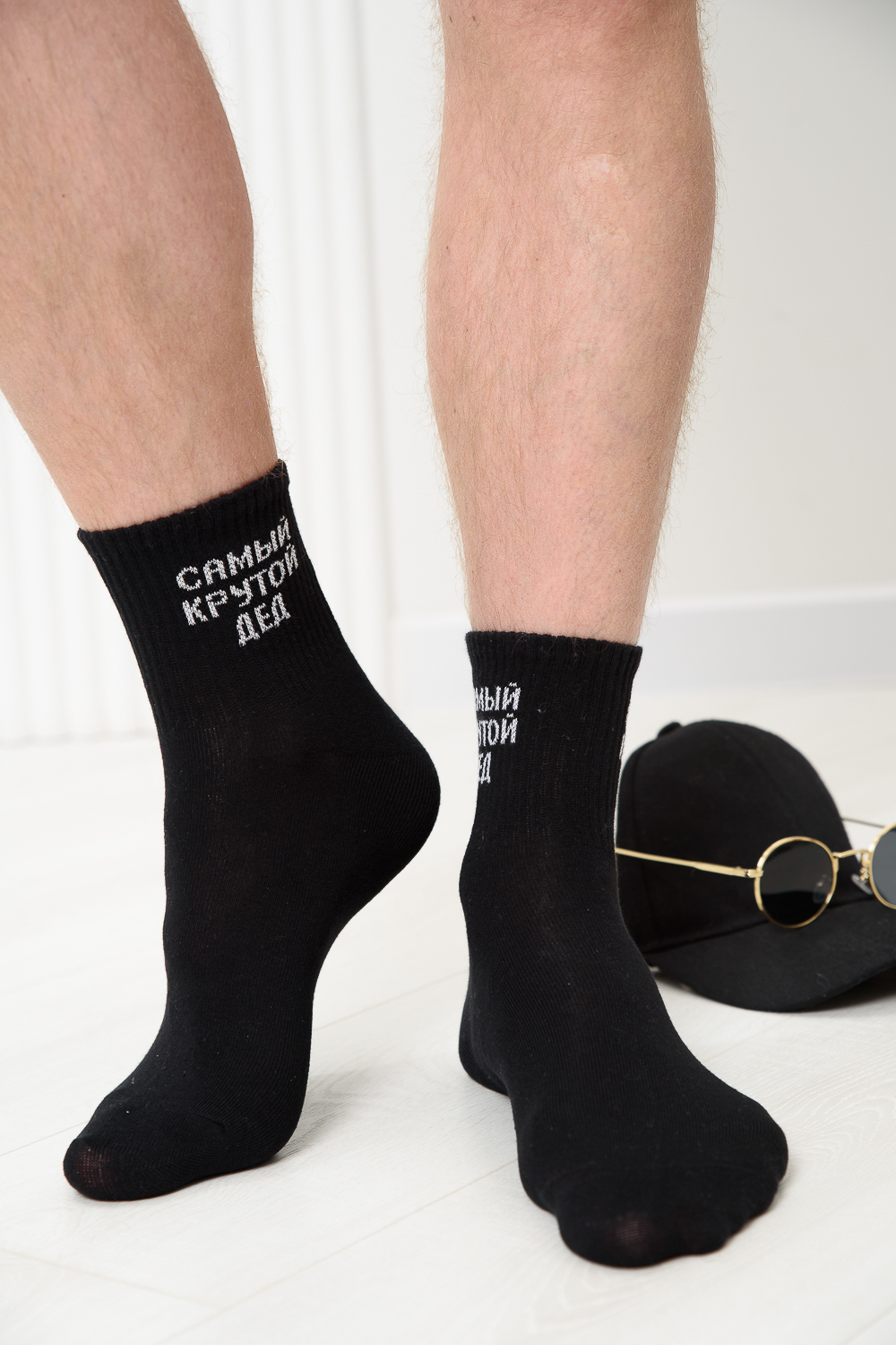 Комплект мужских носков одна пара. Широкая резинка по всей верхней части носка. На резинки надпись самый крутой дед