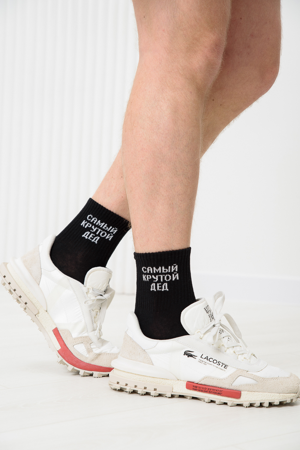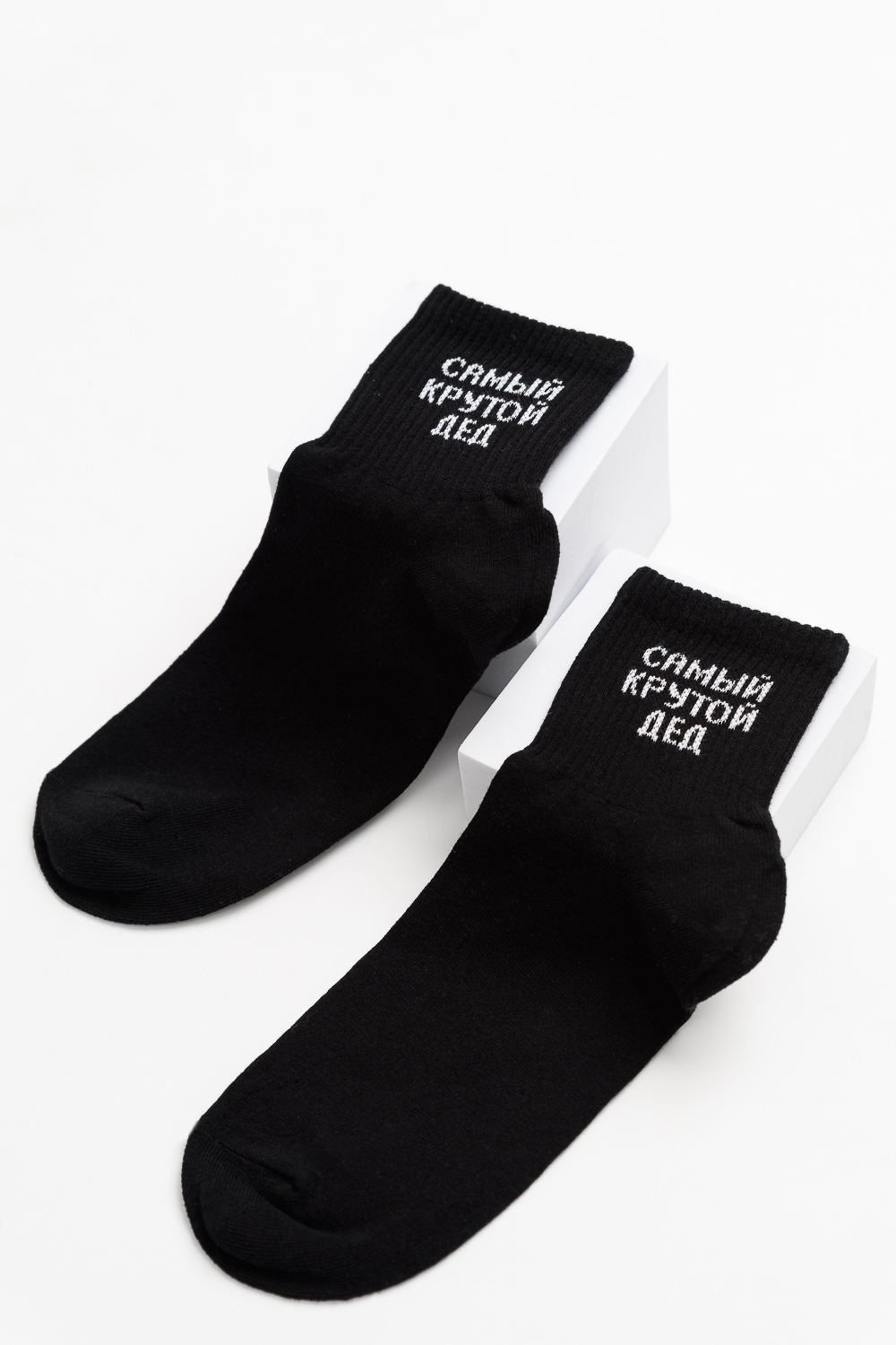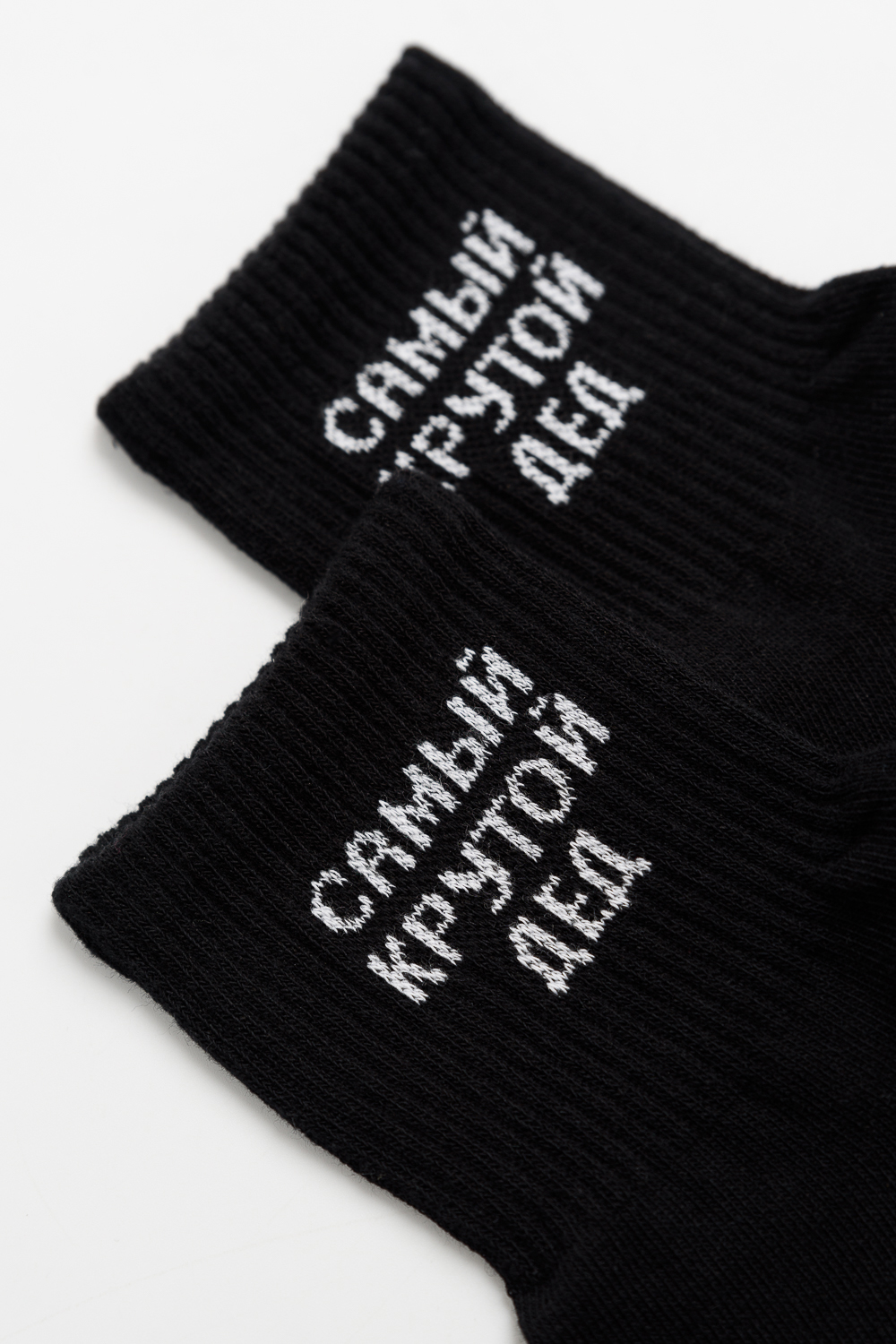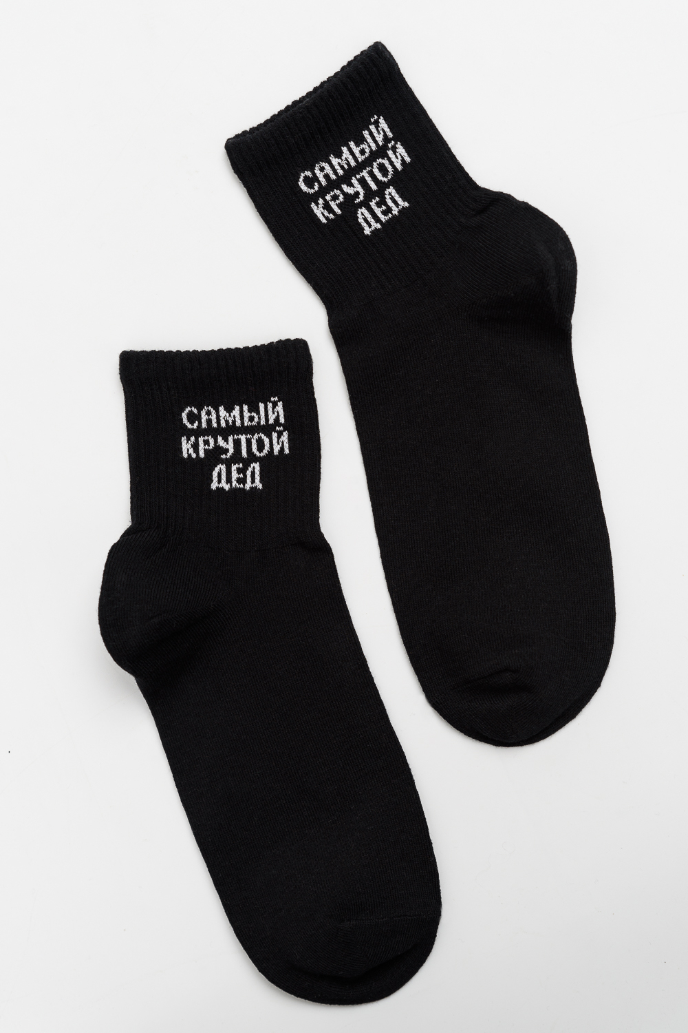 Комплект мужских носков одна пара. Широкая резинка по всей верхней части носка. На резинки надпись самый крутой дед