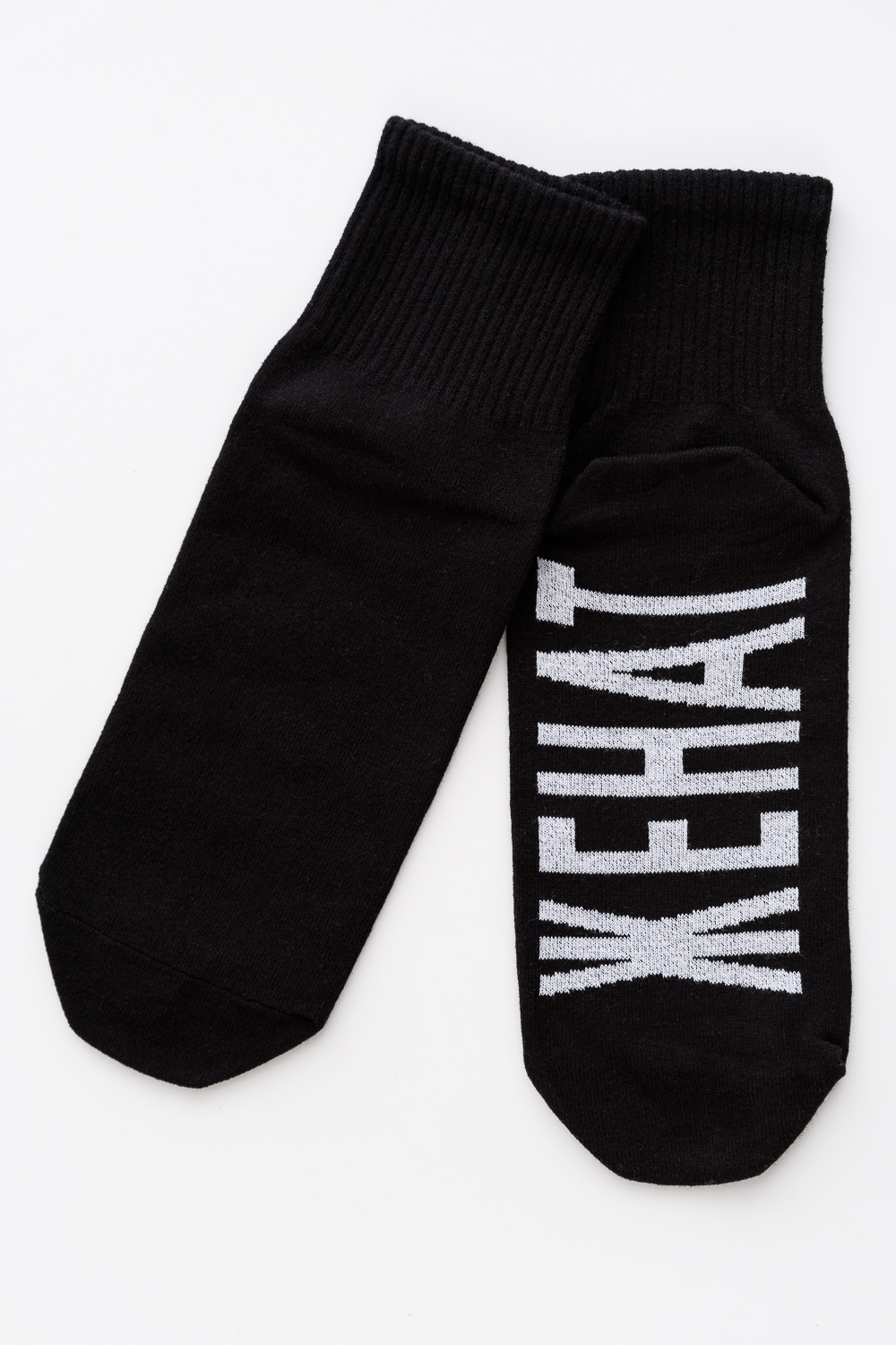 Мужские носки, комплект 1 пара. Большая надпись на стопе ЖЕНАТ. Пятка и носок другого цвета.