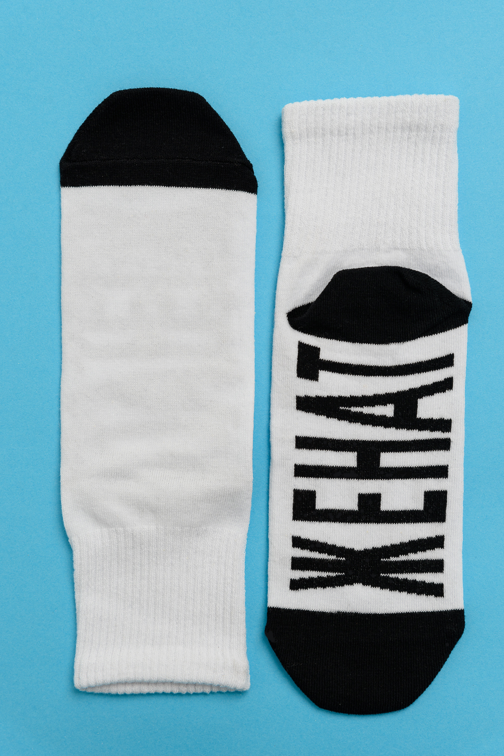 Мужские носки, комплект 2 пары. Большая надпись на стопе ЖЕНАТ. Пятка и носок другого цвета.