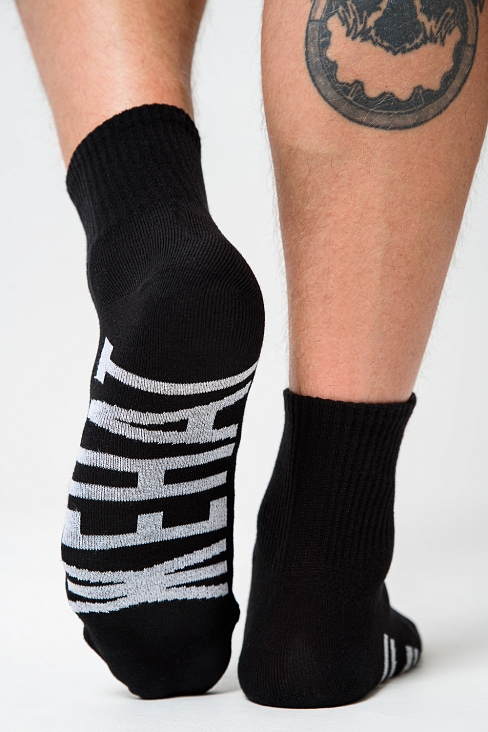 Мужские носки, комплект 2 пары. Большая надпись на стопе ЖЕНАТ. Пятка и носок другого цвета.