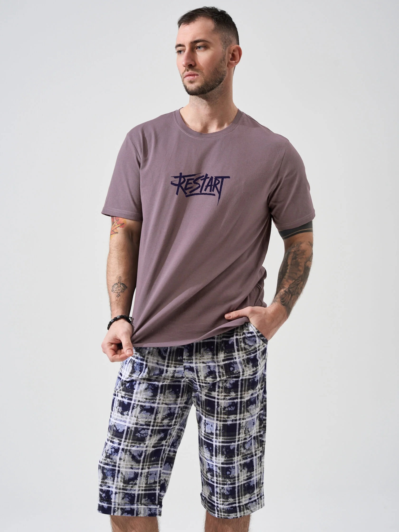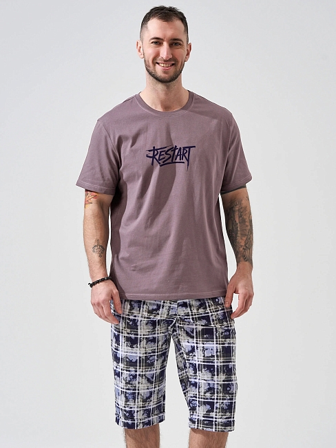 Мужской комплект "Рестарт" (бриджи) 2449-К отшивается из кулирного хлопкового полотна. Мужской летний костюм с бриджами - отличный вариант в качестве домашней одежды или для прогулок в теплое время года.