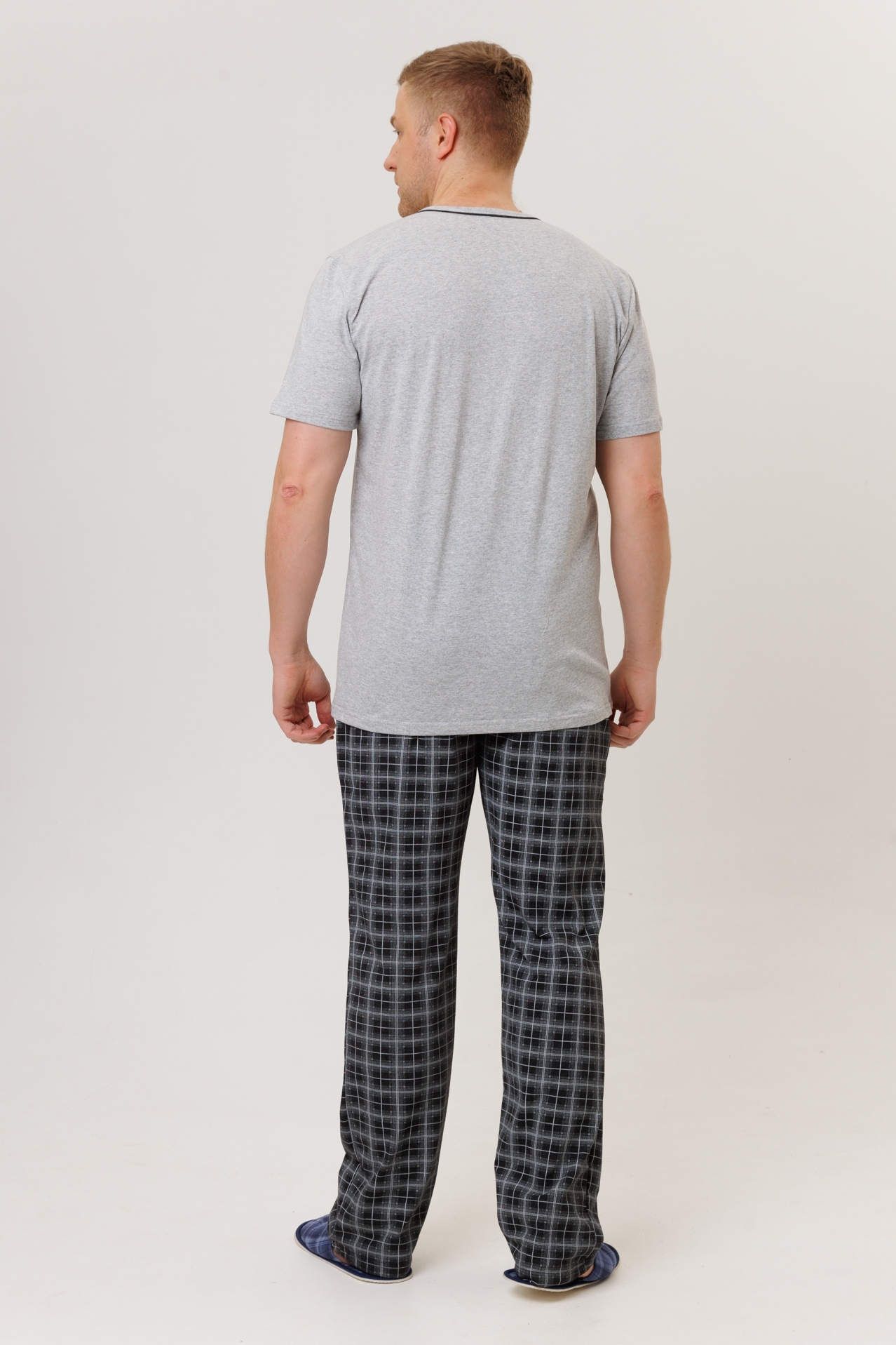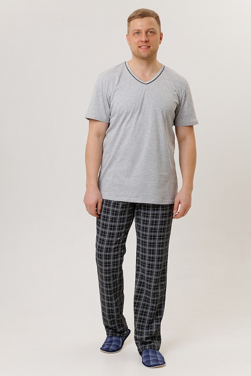 Мужской костюм из кулирки с брюками — это комплект из футболки и свободных брюк, изготовленный из 100% хлопка. Кулирка — тонкое трикотажное полотно, которое хорошо тянется, не мнётся и позволяет коже дышать. Такие костюмы подходят для дома, отдыха, спорта.