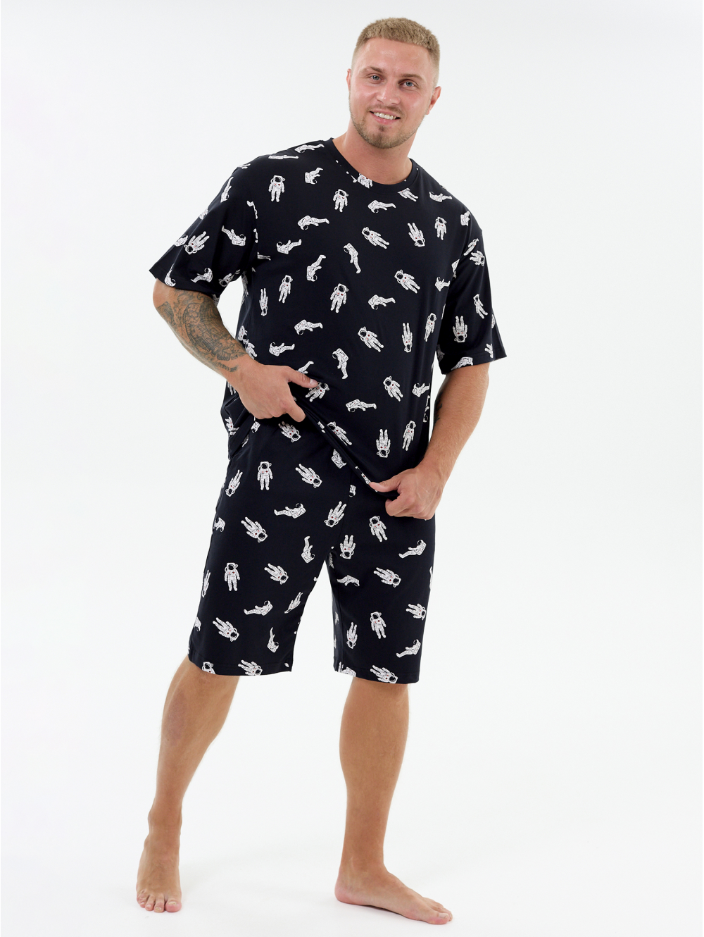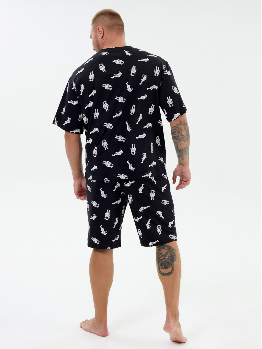 Костюм Альтаир состоит из футболки и шорт. Футболка оверсайз со спущенной линией плеча. Рукава втачные короткие. Шорты мужские полуприлегающие.