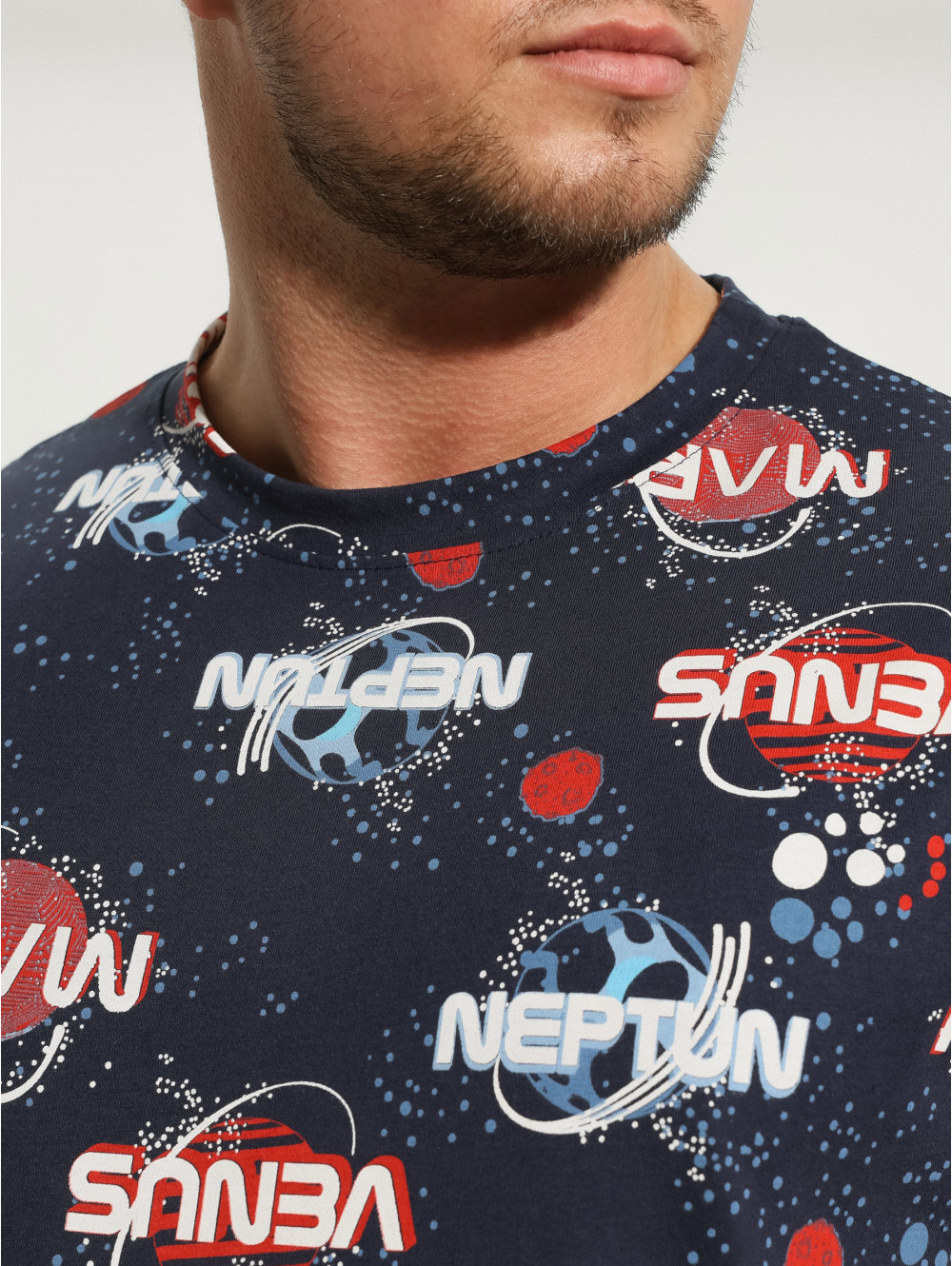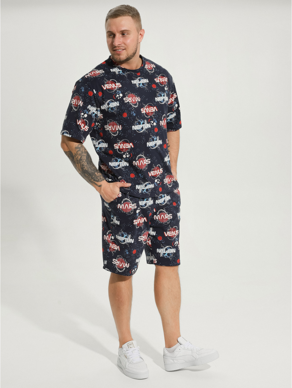 Костюм Альтаир состоит из футболки и шорт. Футболка оверсайз со спущенной линией плеча. Рукава втачные короткие. Шорты мужские полуприлегающие.
