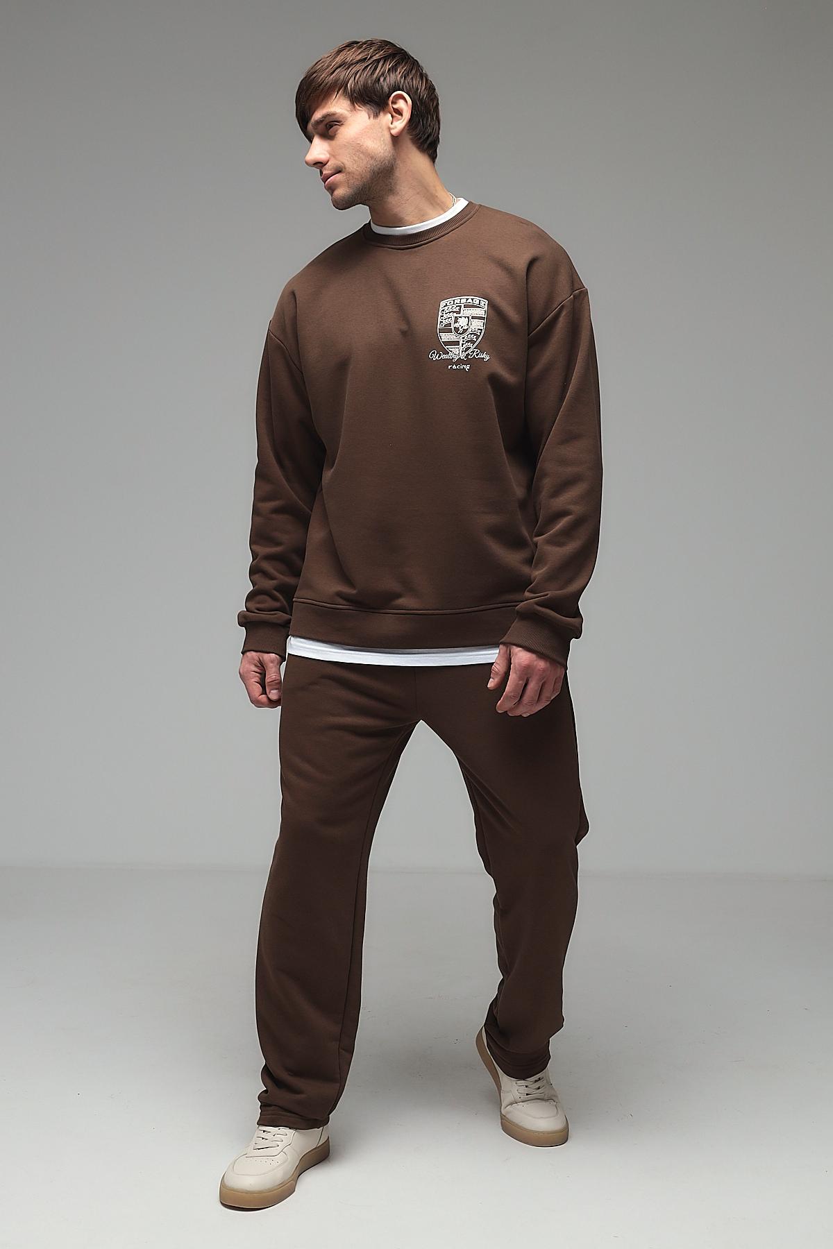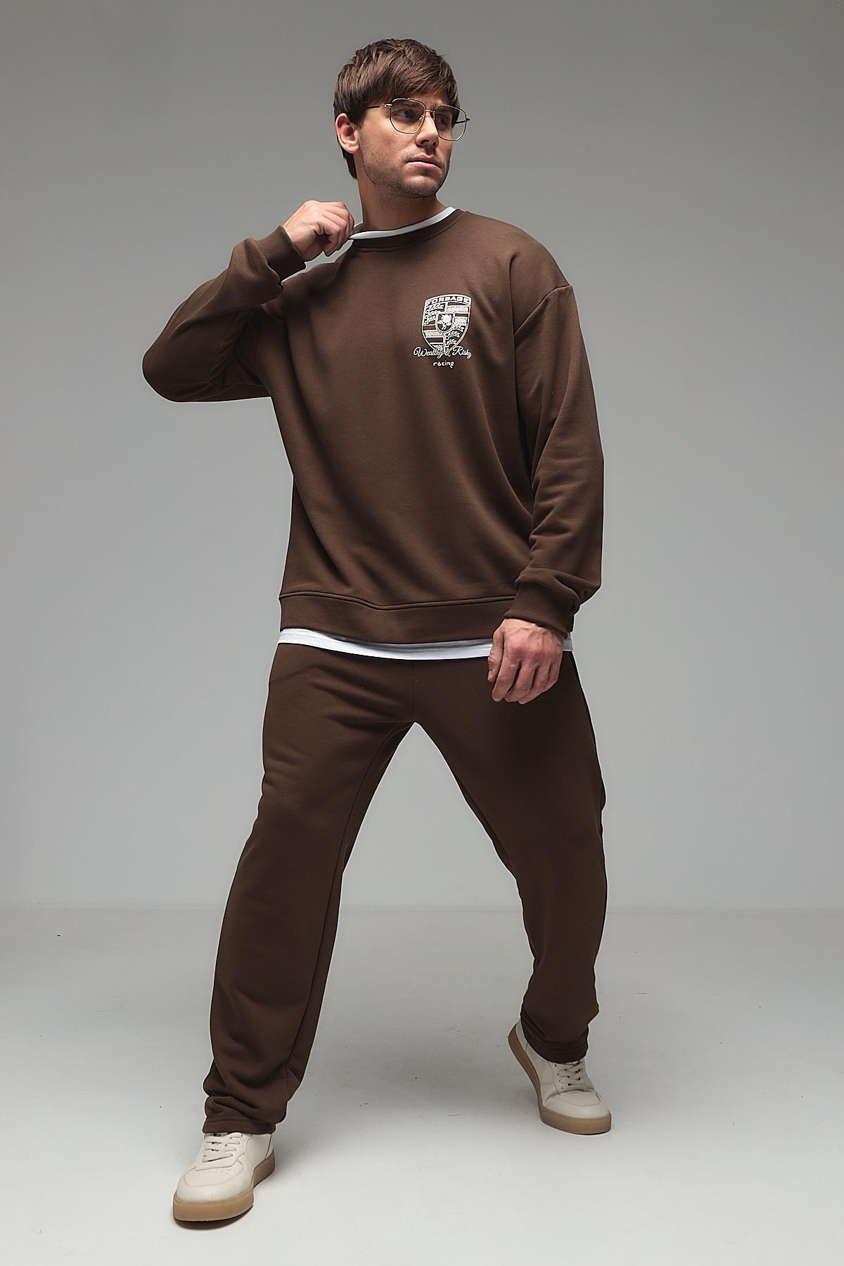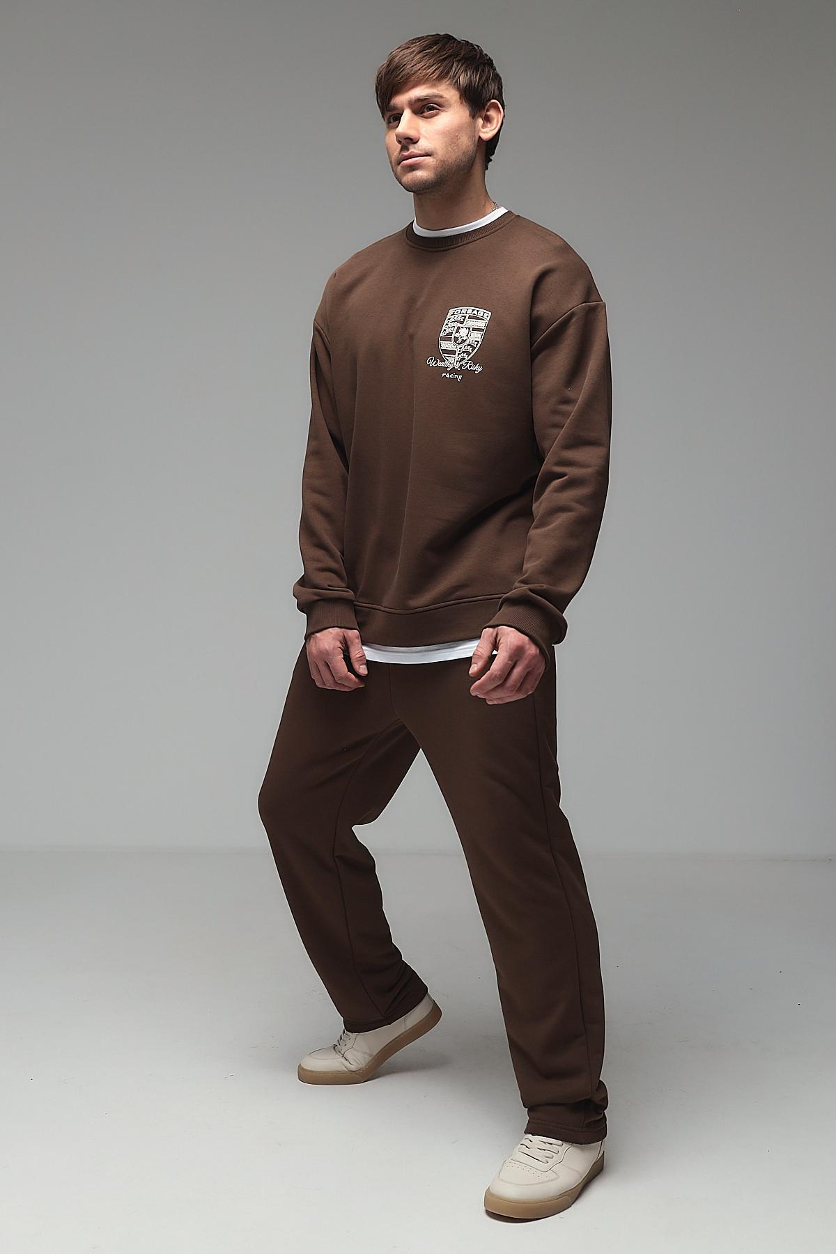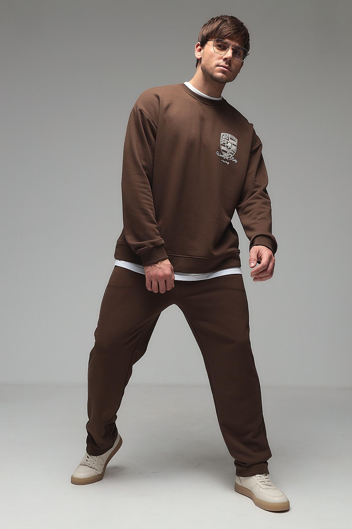 Мужской костюм с брюками из футера трёхнитки (петля) — это комплект одежды, обычно состоящий из толстовки или свитшота и брюк, изготовленный из особого вида трикотажа. Футер трёхнитка с петлёй — это плотный материал с гладкой лицевой стороной и изнаночной стороной, покрытой мелкими петельками. Такой костюм сочетает комфорт, износостойкость и теплоизоляцию, подходит для повседневной носки, спорта или домашнего использования.