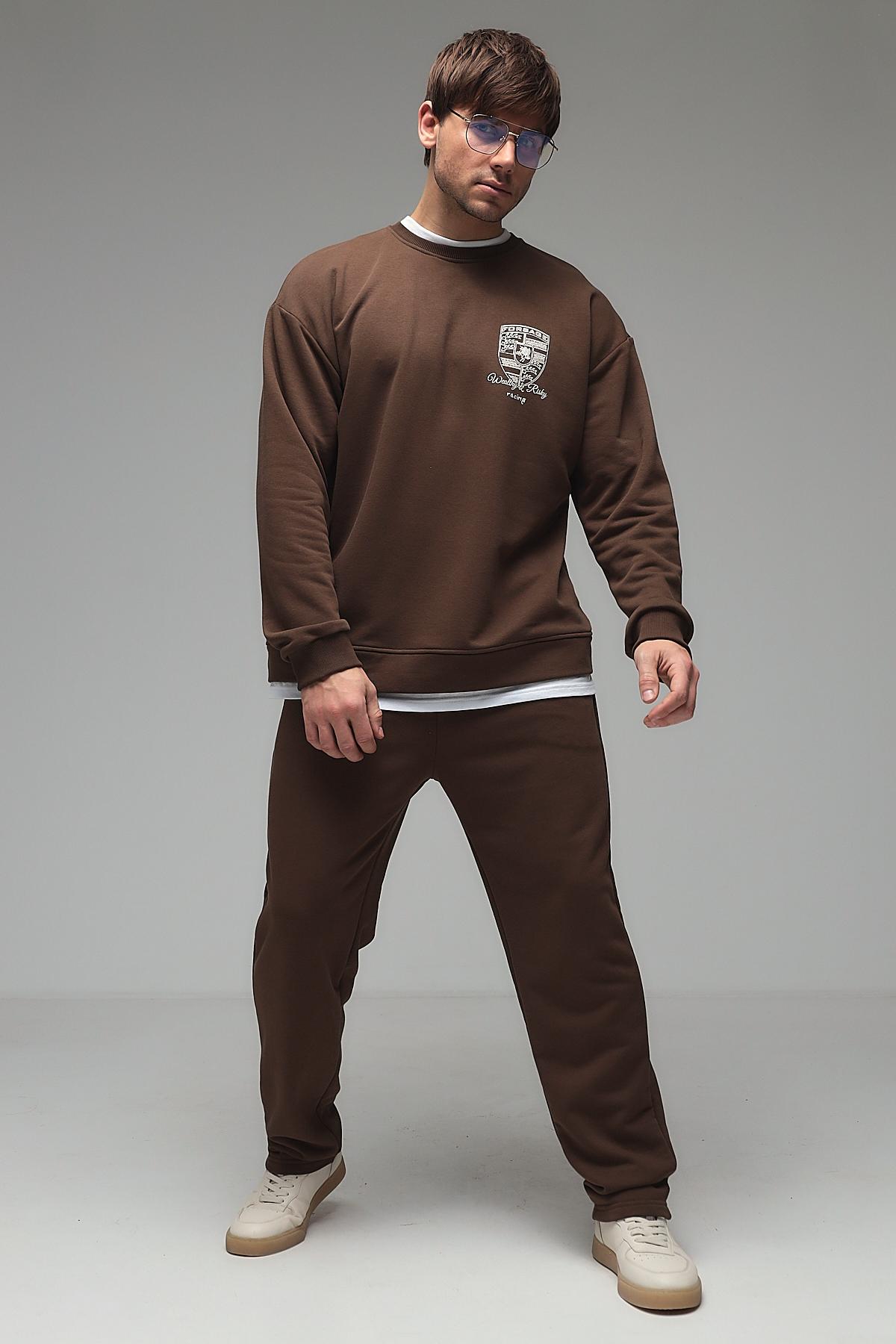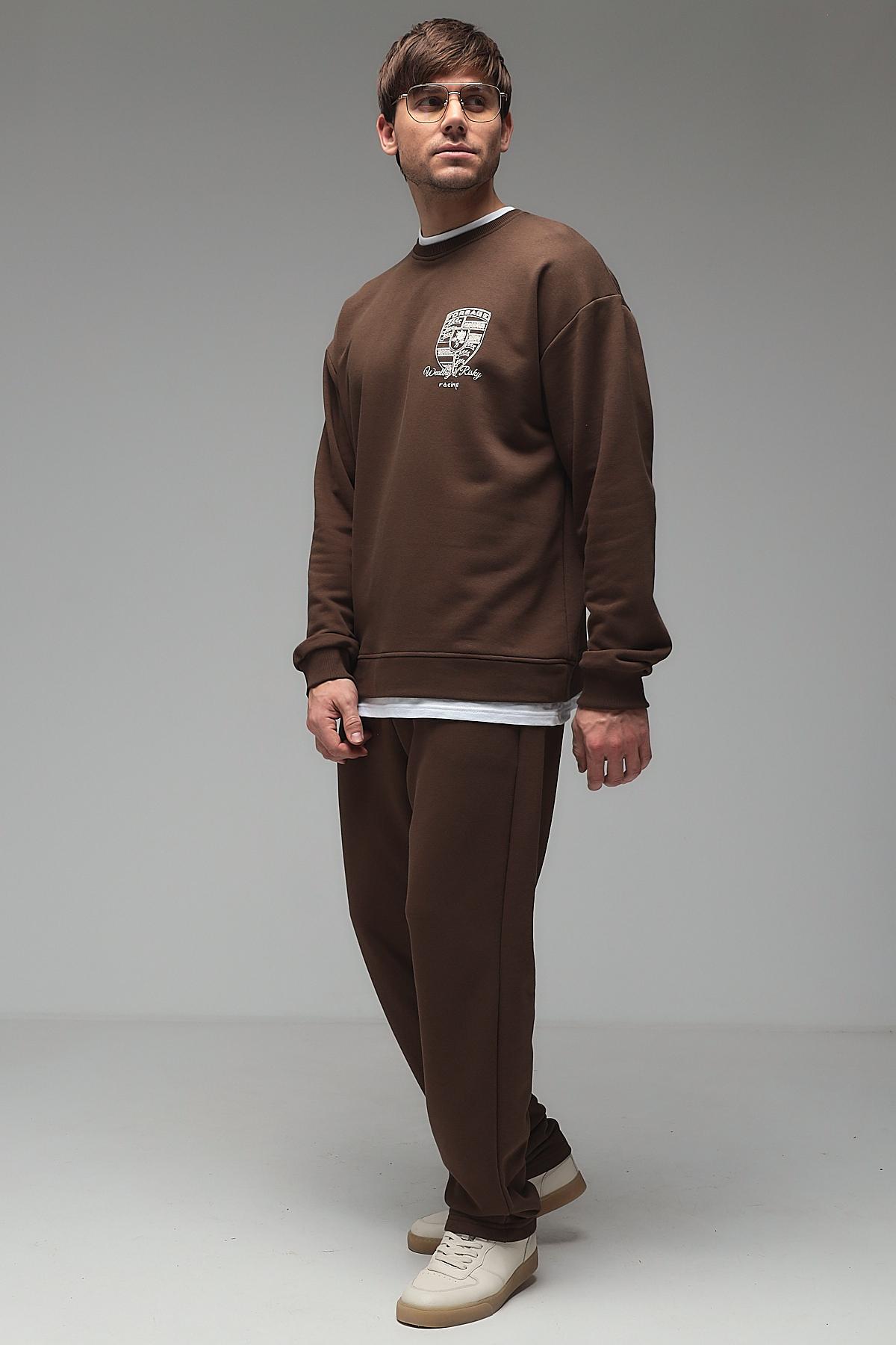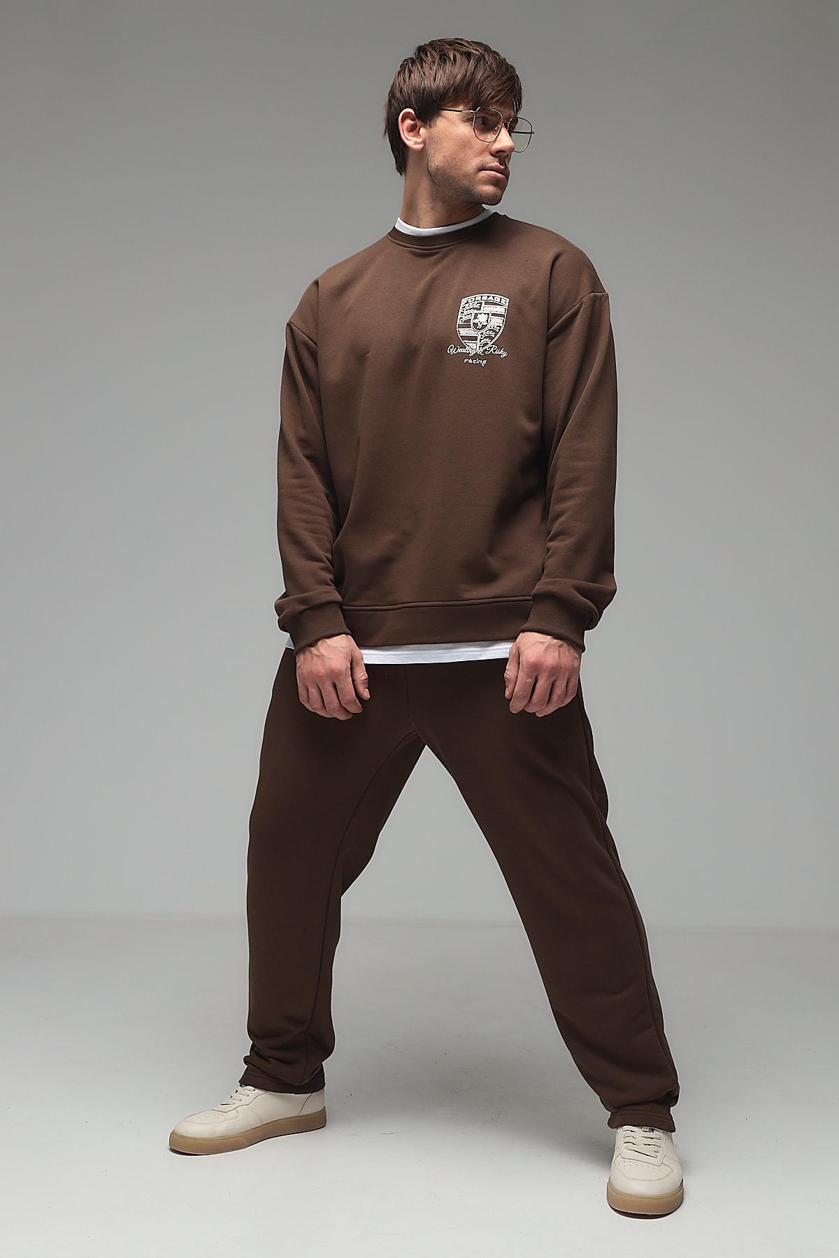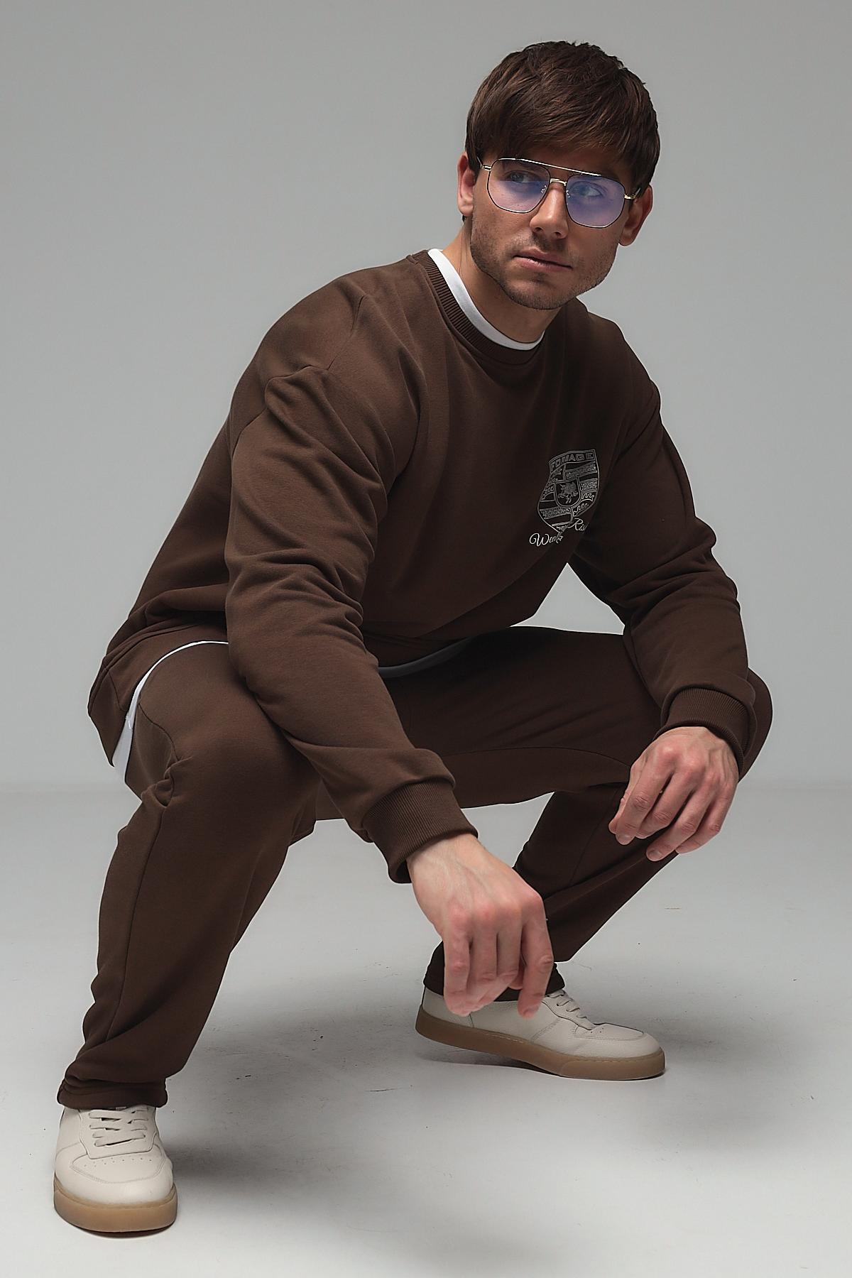 Мужской костюм с брюками из футера трёхнитки (петля) — это комплект одежды, обычно состоящий из толстовки или свитшота и брюк, изготовленный из особого вида трикотажа. Футер трёхнитка с петлёй — это плотный материал с гладкой лицевой стороной и изнаночной стороной, покрытой мелкими петельками. Такой костюм сочетает комфорт, износостойкость и теплоизоляцию, подходит для повседневной носки, спорта или домашнего использования.