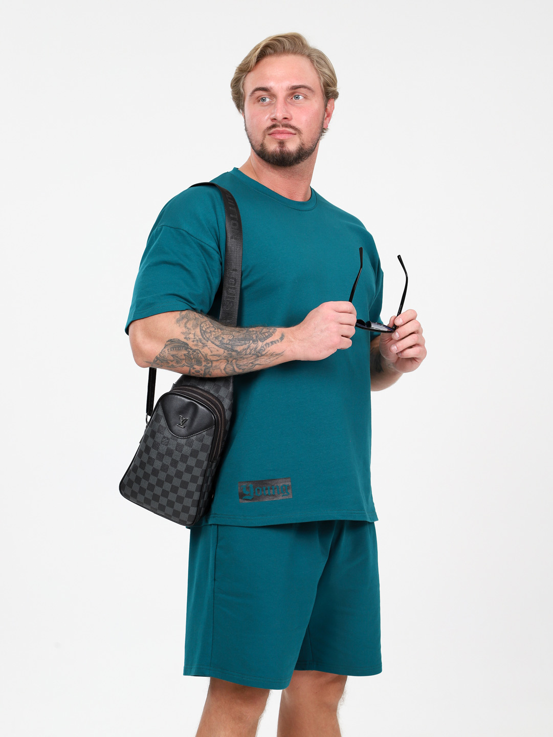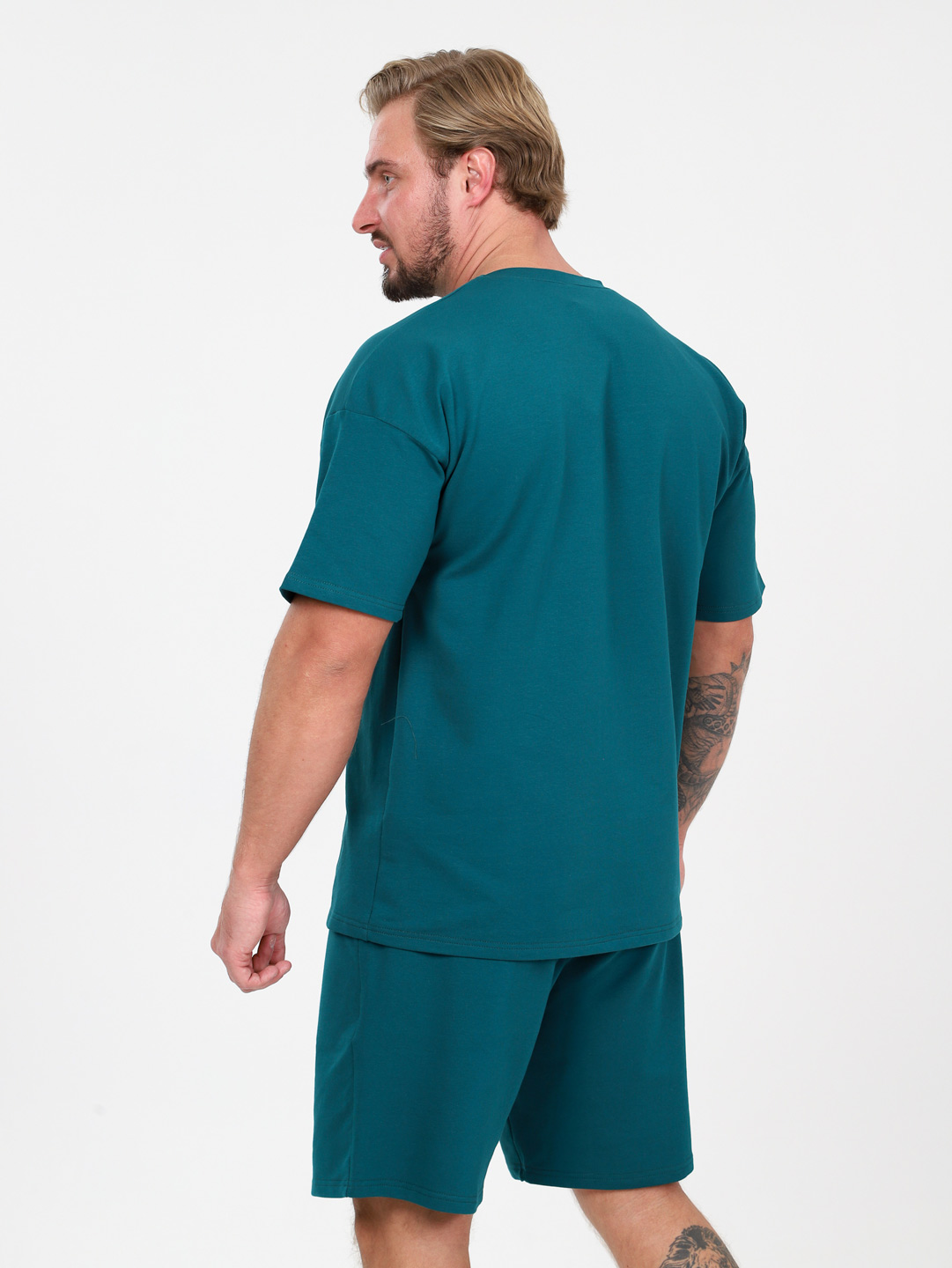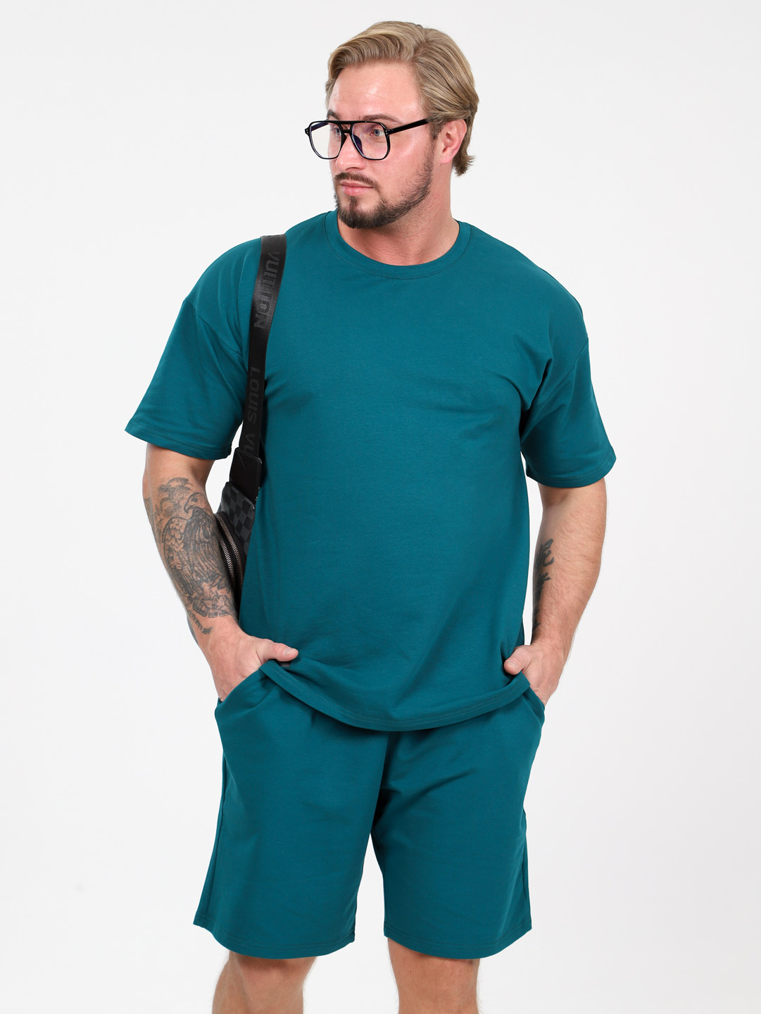 Костюм мужской представляет собой футболку и шорты. Футболка со спущенным плечом. Шорты с карманами с отрезным бочком, удобной посадкой и шнурком. Спортивный костюм изготовлен из премиального трикотажа (футер) турецкого производства, без добавления ПЭ (полиэстера), внутри петельки из натурального хлопка, не цепляются.