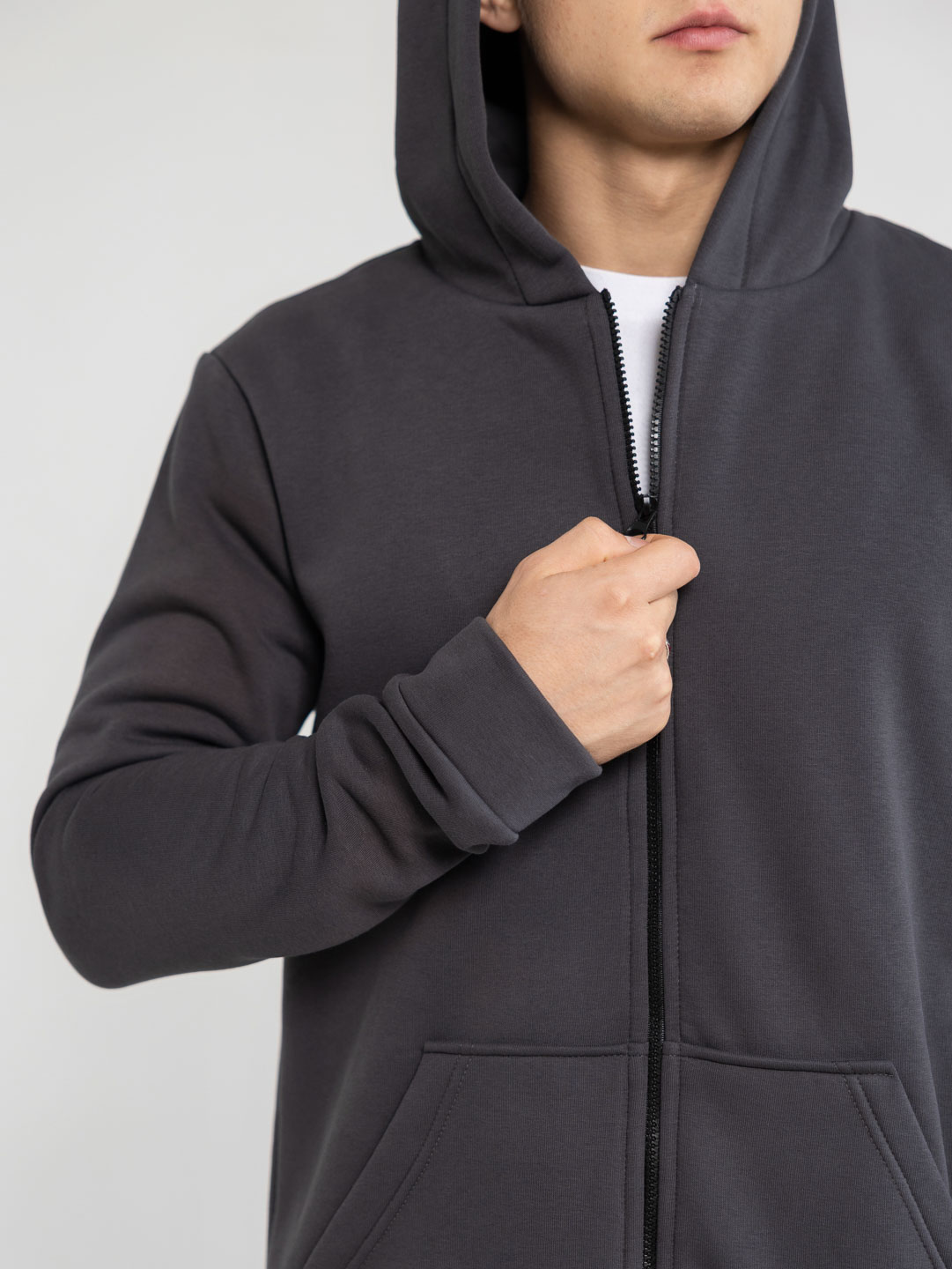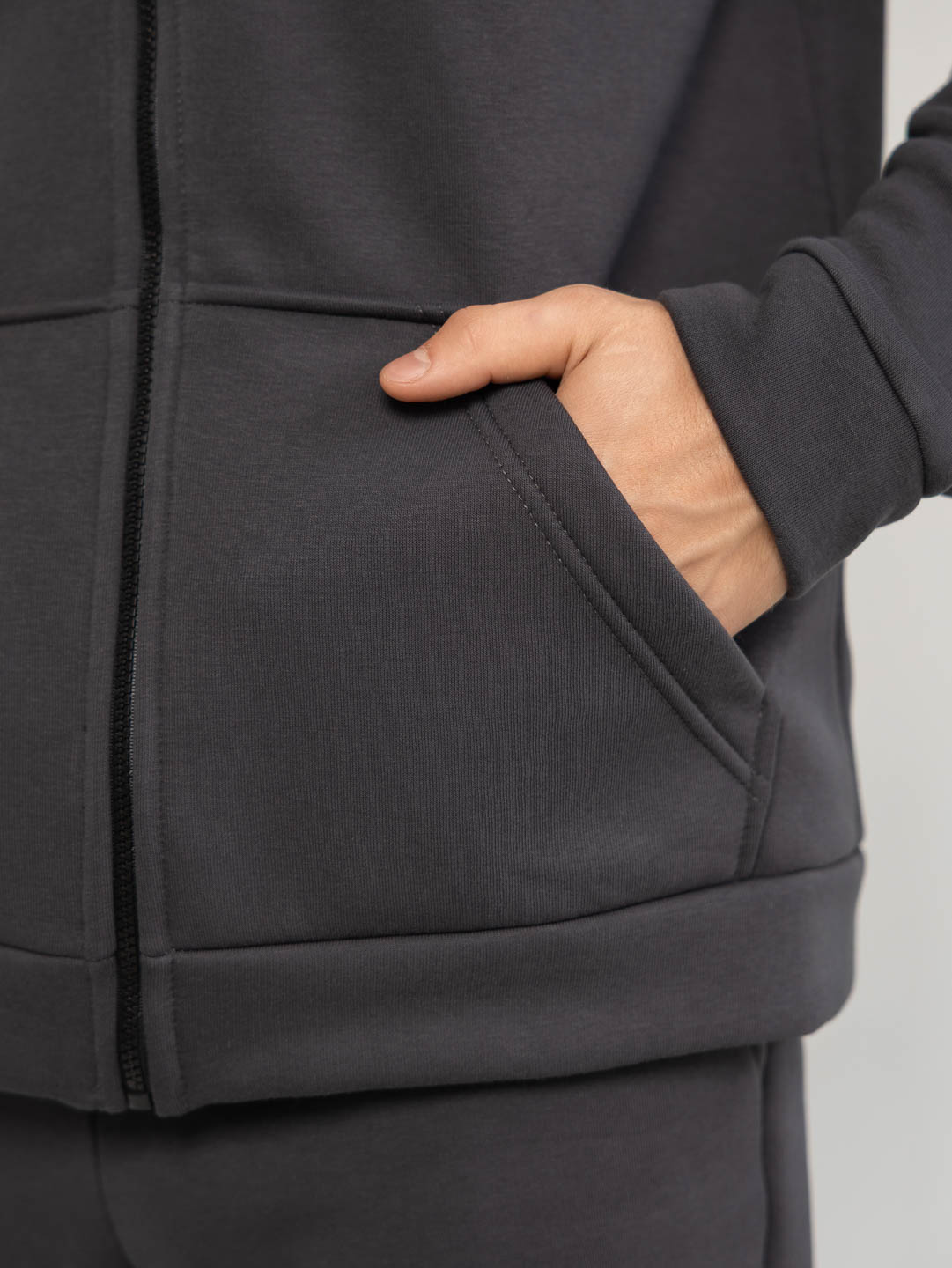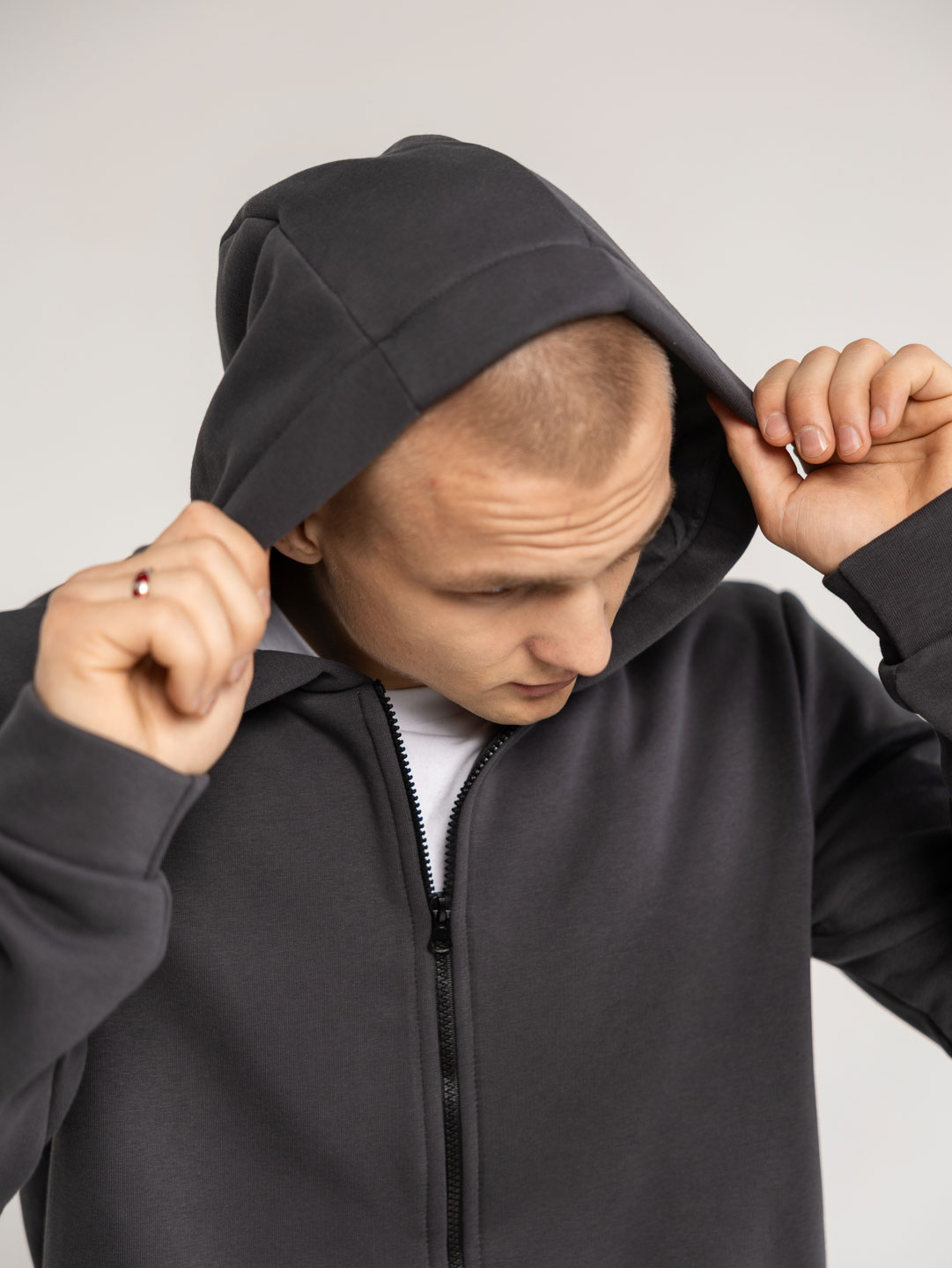 Утепленный мужской костюм из футера с начесом, состоящий из худи на молнии и брюк джоггеров. Толстовка с капюшоном и карманом кенгуру - подарит комфорт даже в самый морозный день. Брюки с поясом на резинке и манжетой по низу - защитят Вас от ветра и снега, сохранят тепло. Наш утепленный костюм идеально подойдет для вечерних прогулок и активных занятий спортом на свежем воздухе!