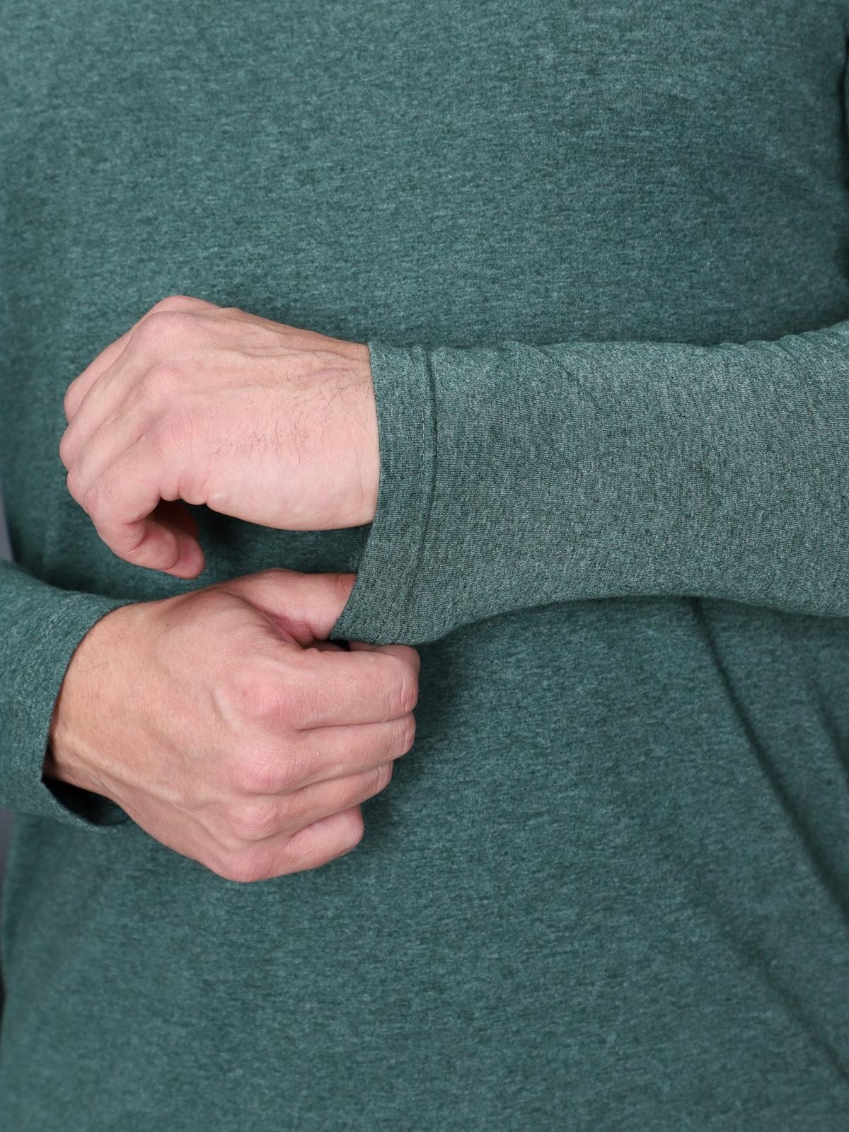 Мужской лонгслив «Рейнир» — это мужская футболка с длинным рукавом из трикотажа, доступная в нескольких расцветках (индиго, зелёный, антрацитовый) и размерах (от 48 до 62). Изделие изготовлено из кулирки меланжированной (80% хлопка, 20% полиэстера), что обеспечивает комфорт и долговечность.