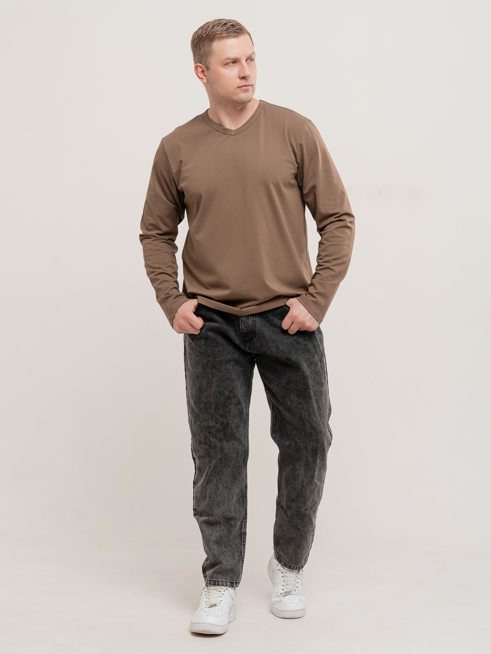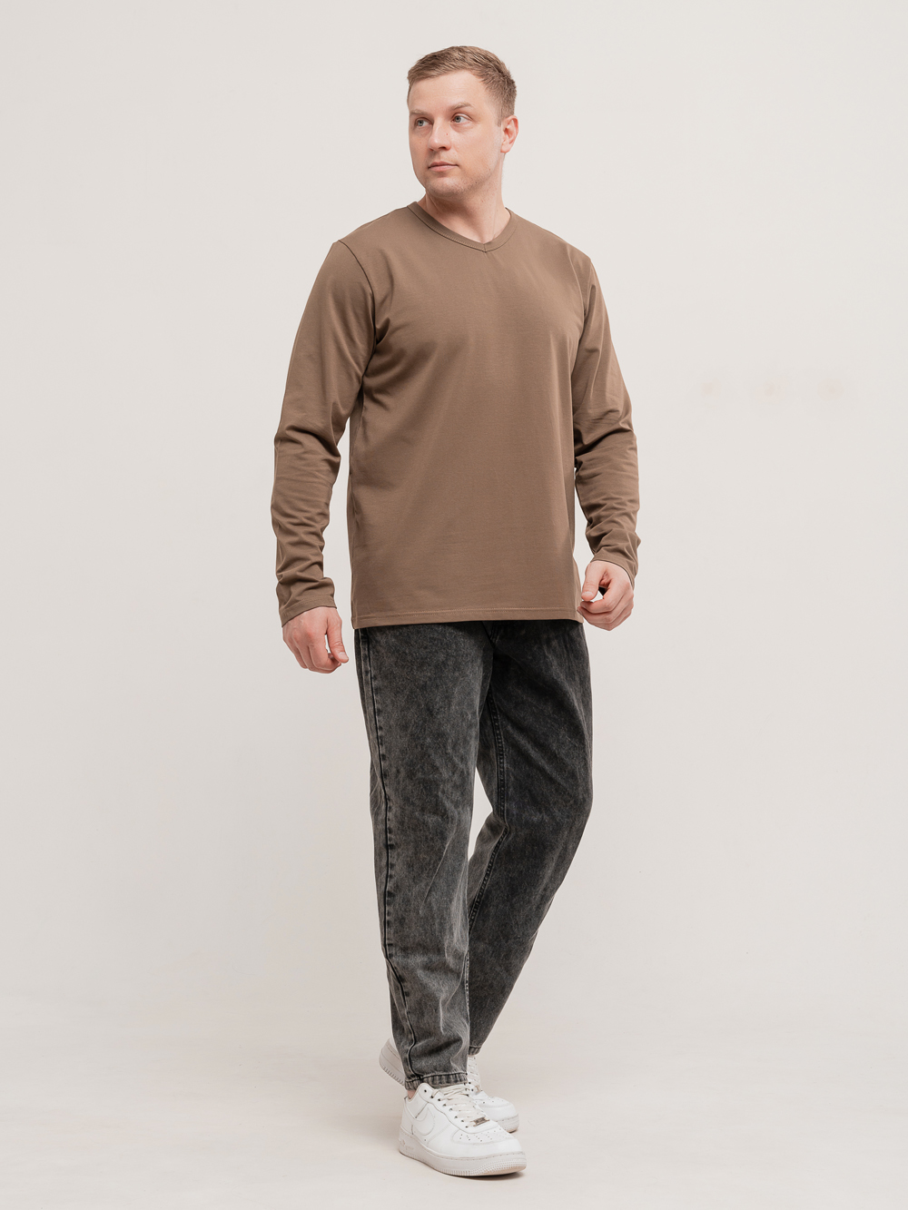 Мужской лонгслив с V-образной горловиной — универсальная базовая модель, которая подходит для повседневной носки и комфортного образа на каждый день. Изготовленный из мягкого трикотажа состава 95% хлопок и 5% эластан, лонгслив обладает оптимальной эластичностью, приятен к телу и отлично сохраняет форму. Плотность 200 г/м² делает ткань средней по толщине: она не просвечивает, хорошо держит силуэт и комфортна в носке в любое время года. Однотонный дизайн позволяет легко сочетать лонгслив с джинсами, брюками, спортивными штанами или жилетами. Модель подходит для работы, прогулок, отдыха и повседневных занятий. V-образная горловина визуально удлиняет шею и придаёт образу аккуратный, собранный вид. Длинный рукав обеспечивает дополнительный комфорт, сохраняя тепло без перегрева. Трикотажное полотно тянется, не сковывает движений и приятно облегает фигуру. Благодаря эластану материал не растягивается на локтях и сохраняет аккуратный внешний вид даже после многократных стирок. Этот однотонный мужской лонгслив — практичный элемент базового гардероба, который станет незаменимым в повседневных образах и прослужит долго благодаря качественной ткани и продуманному крою.