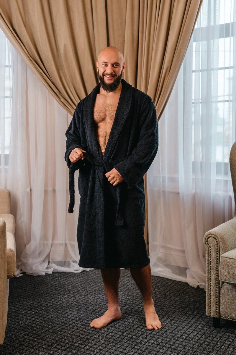Стильный и удобный махровый халат для мужчин обеспечит комфорт и практичность. Качественная махровая ткань выполнена из натурального хлопка в Узбекистане. Благодаря крою халата, он очень удобен, свободно «сидит».