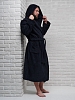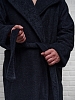 Модель халата с поясом позволяет ему быть универсальным и подходит к любому типу телосложения, скрывая недостатки и подчеркивая достоинства фигуры. Наличие карманов делает его практичным для ношения дома, в бане или сауне, а также на отдыхе.