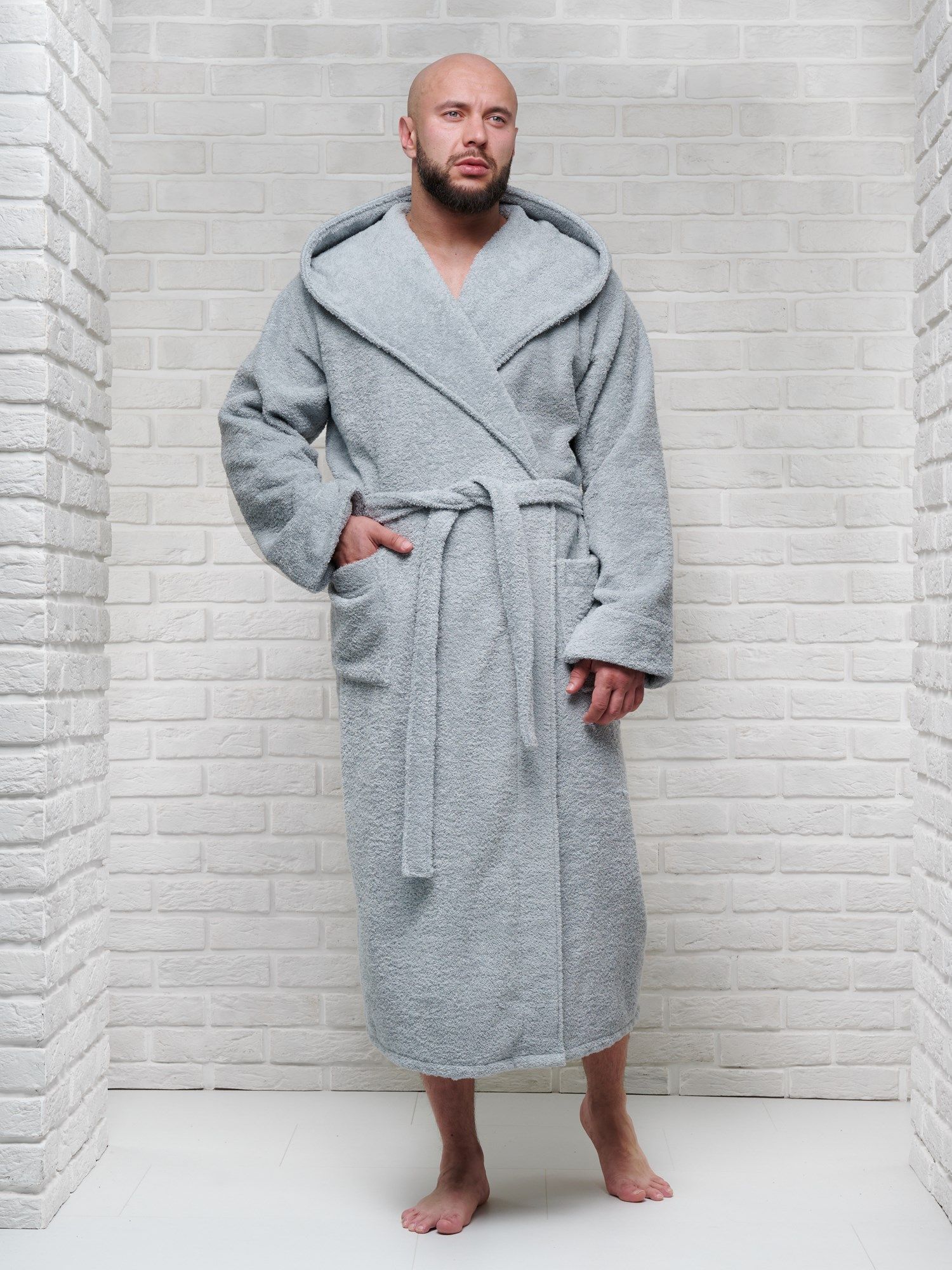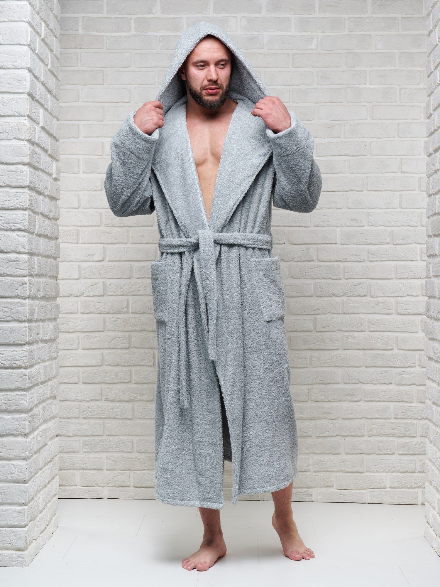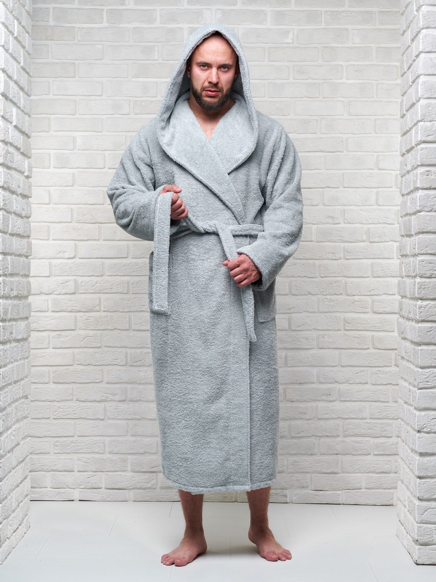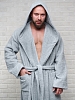 Мужской махровый халат PandaHug с капюшоном / светло-серый