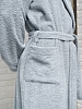 Модель халата с поясом позволяет ему быть универсальным и подходит к любому типу телосложения, скрывая недостатки и подчеркивая достоинства фигуры. Наличие карманов делает его практичным для ношения дома, в бане или сауне, а также на отдыхе.
