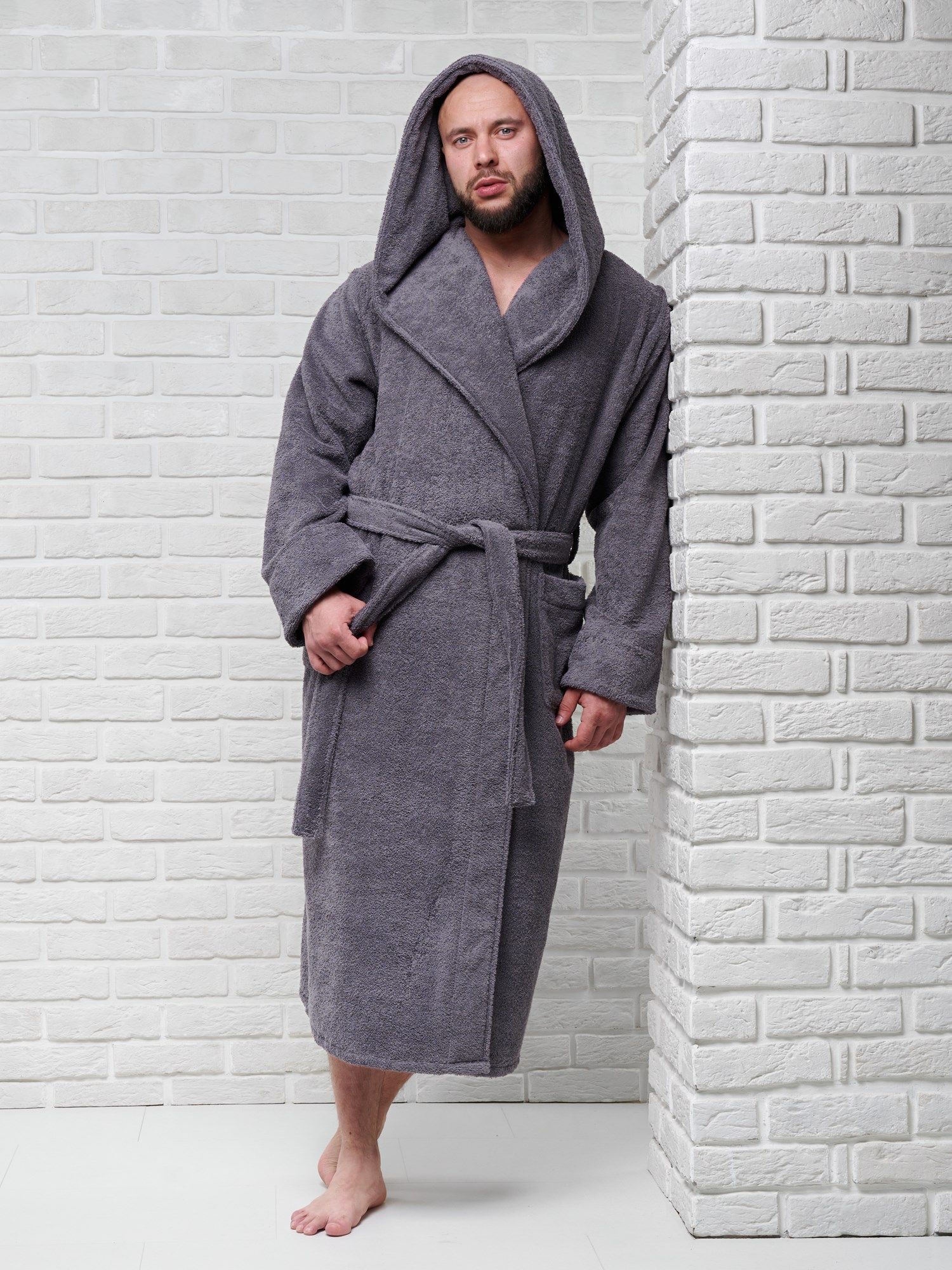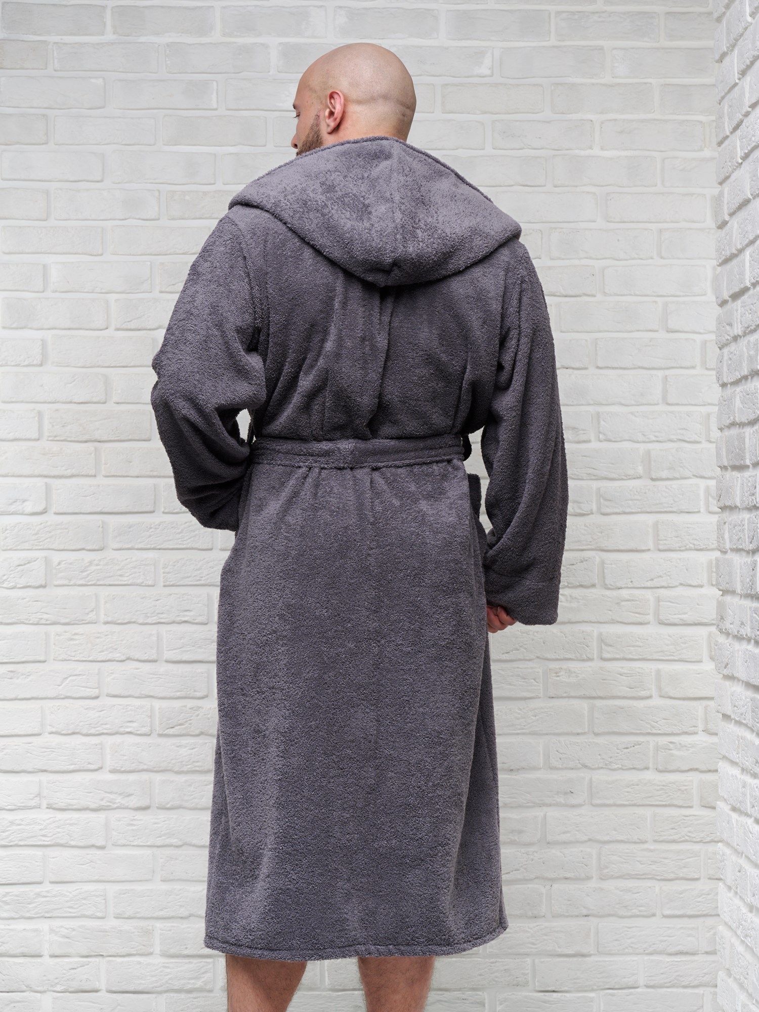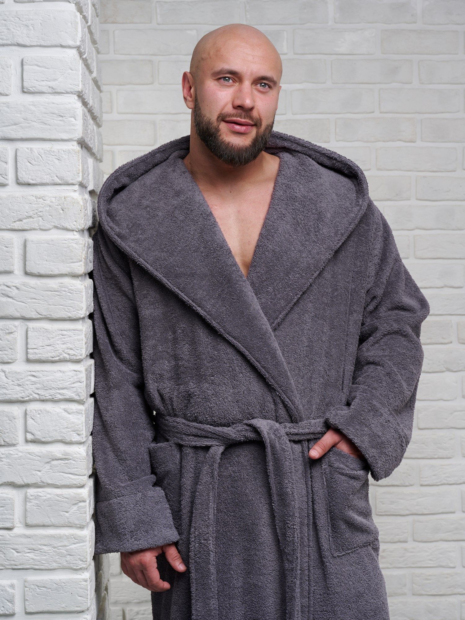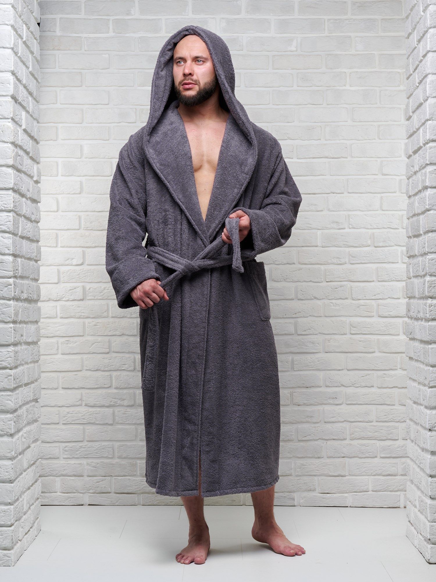 Мужской махровый халат PandaHug с капюшоном / темно-серый
