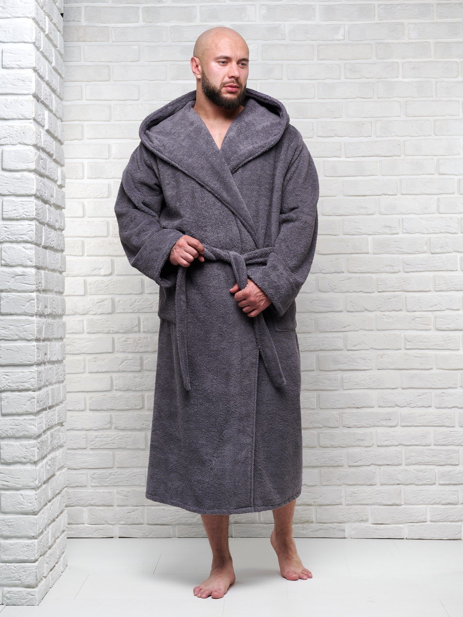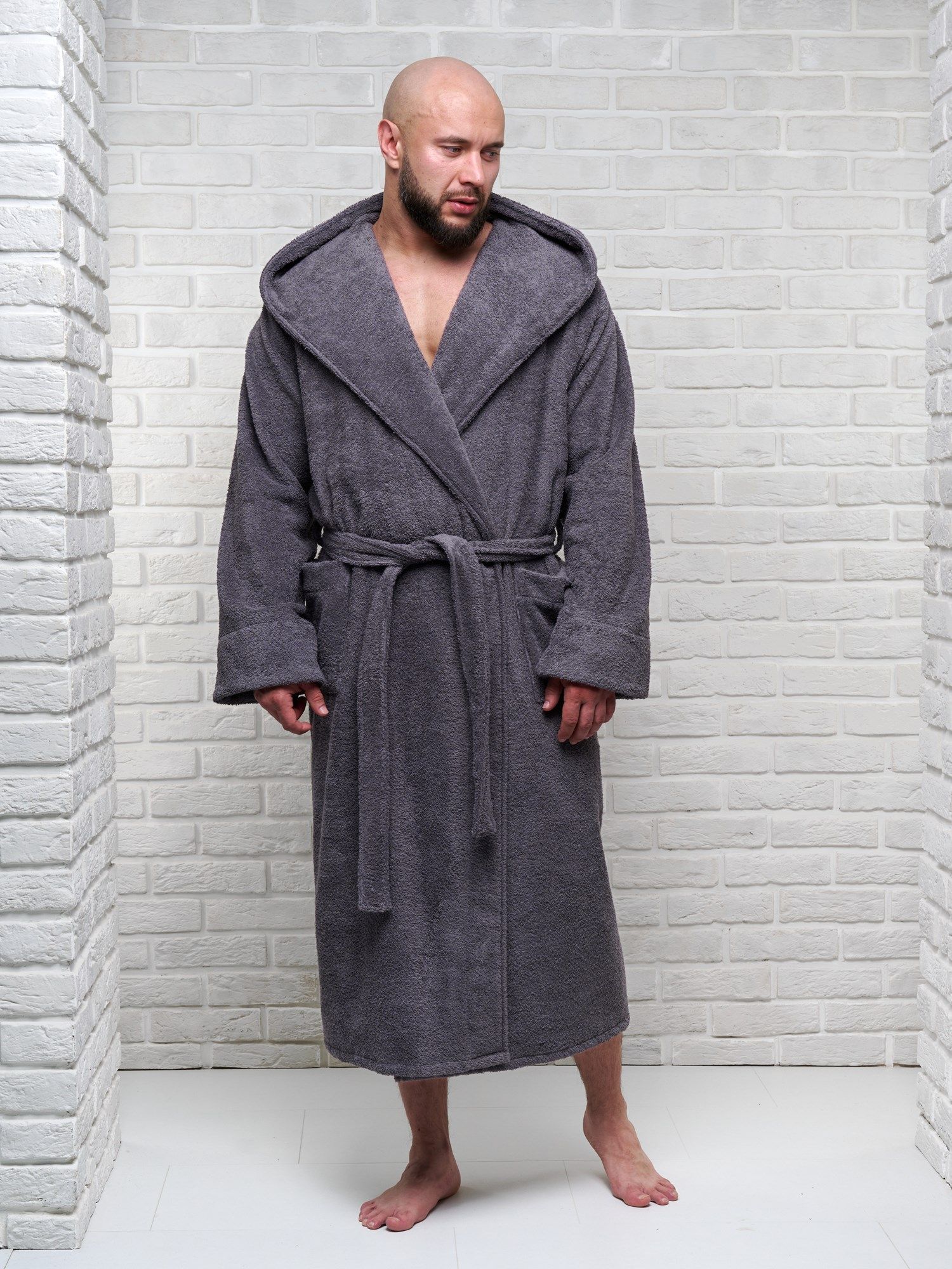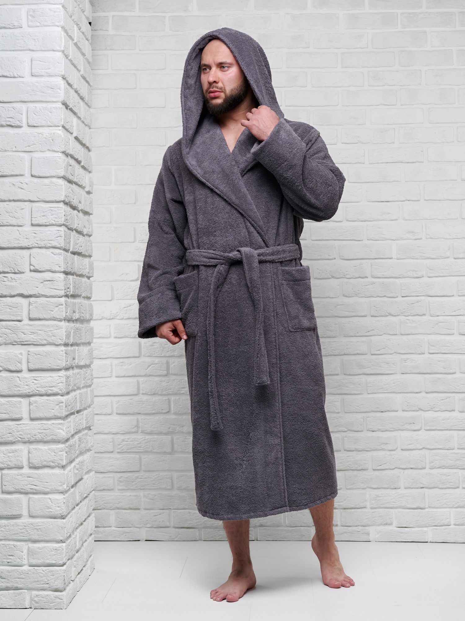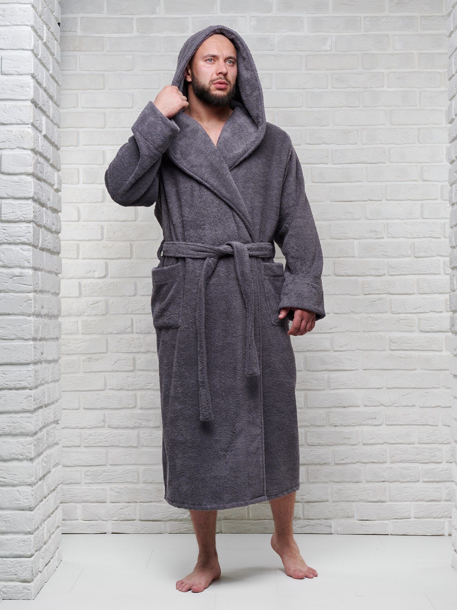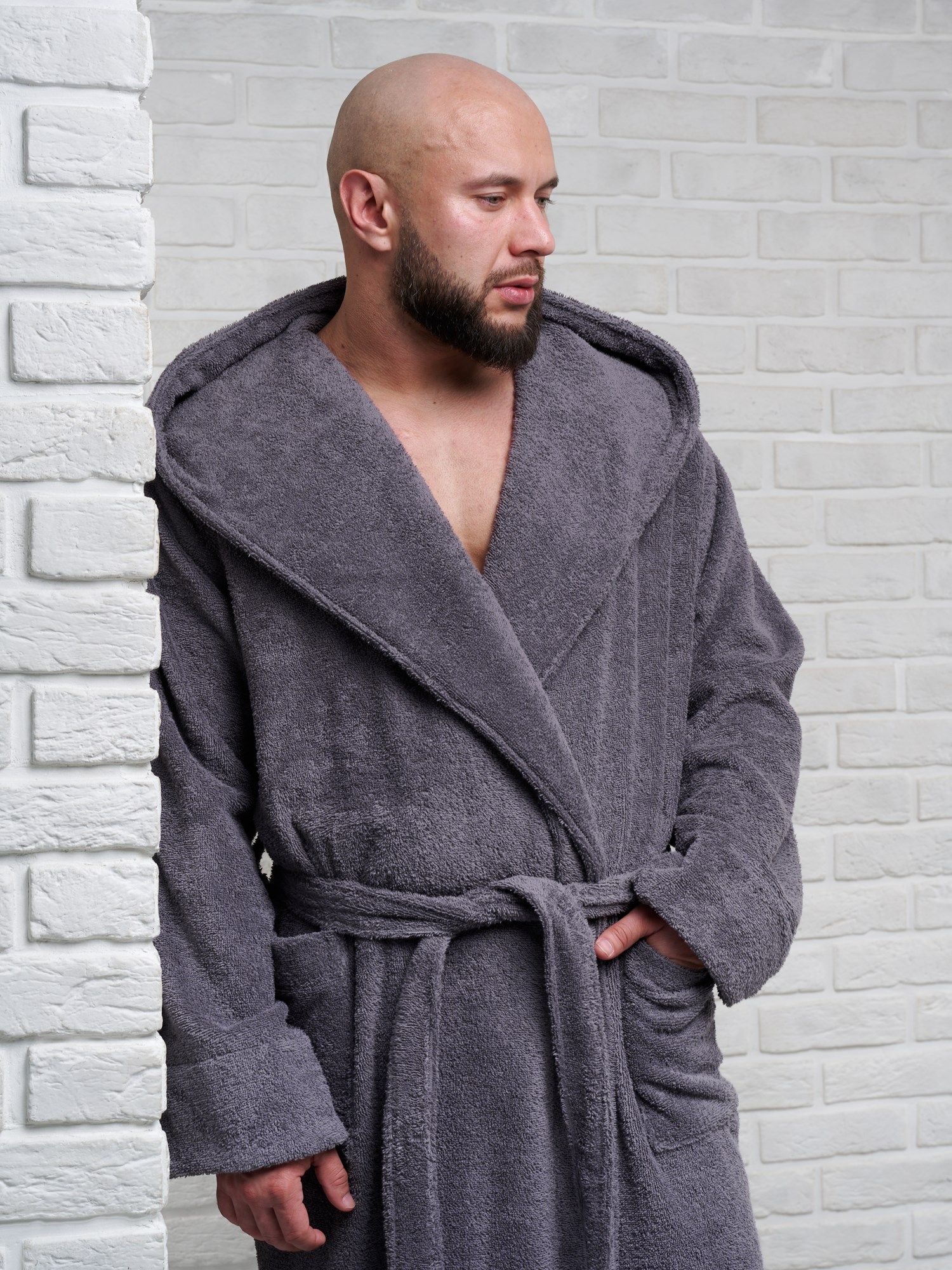 Мужской махровый халат PandaHug с капюшоном / темно-серый