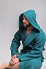 Мужской вафельный халат PandaHug Orlando с капюшоном / малахит