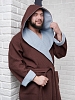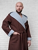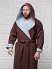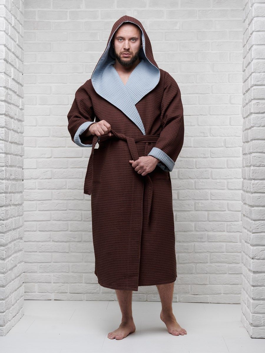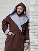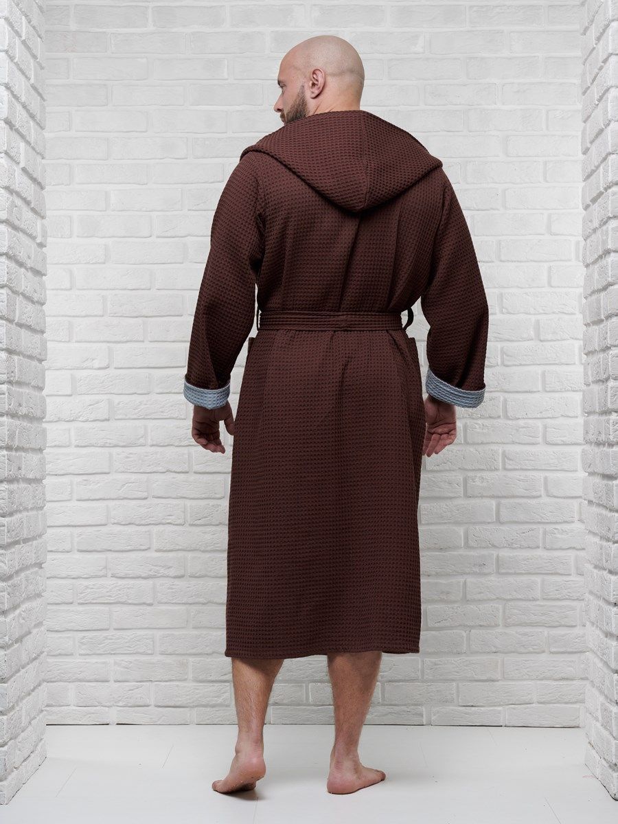Мужской вафельный халат с капюшоном двухцветный / темный шоколад
