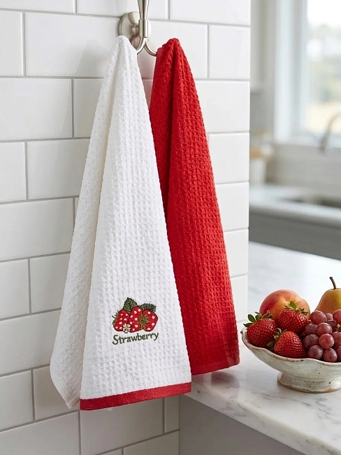 Набор кухонных махровых полотенец (коробка) 40*60 2 шт. / Клубника