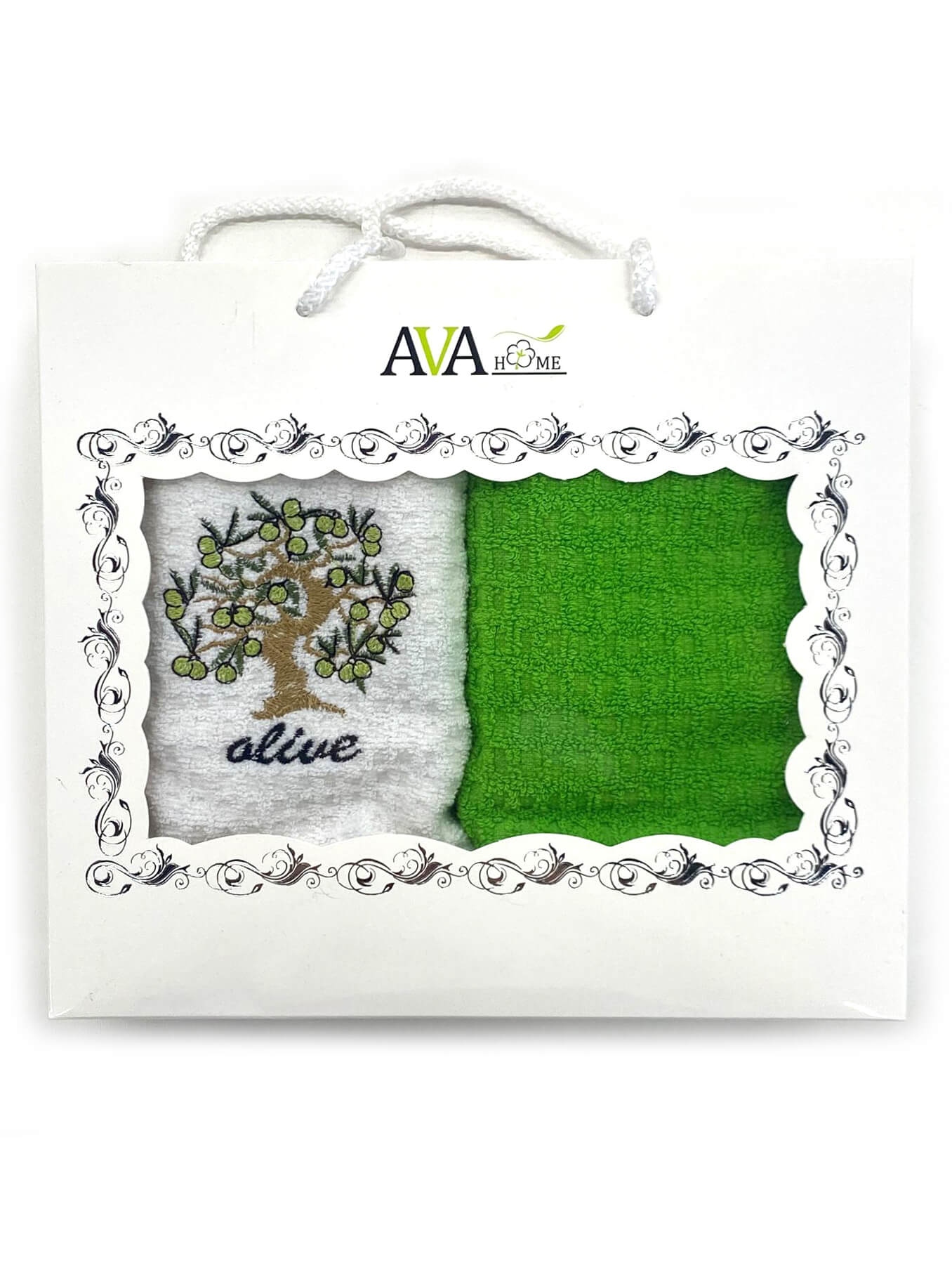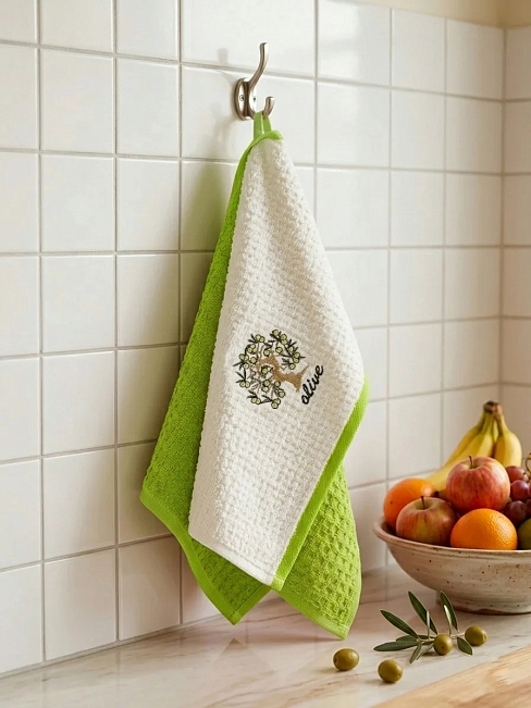 Набор кухонных махровых полотенец (коробка) 40*60 2 шт. / Оливковое дерево