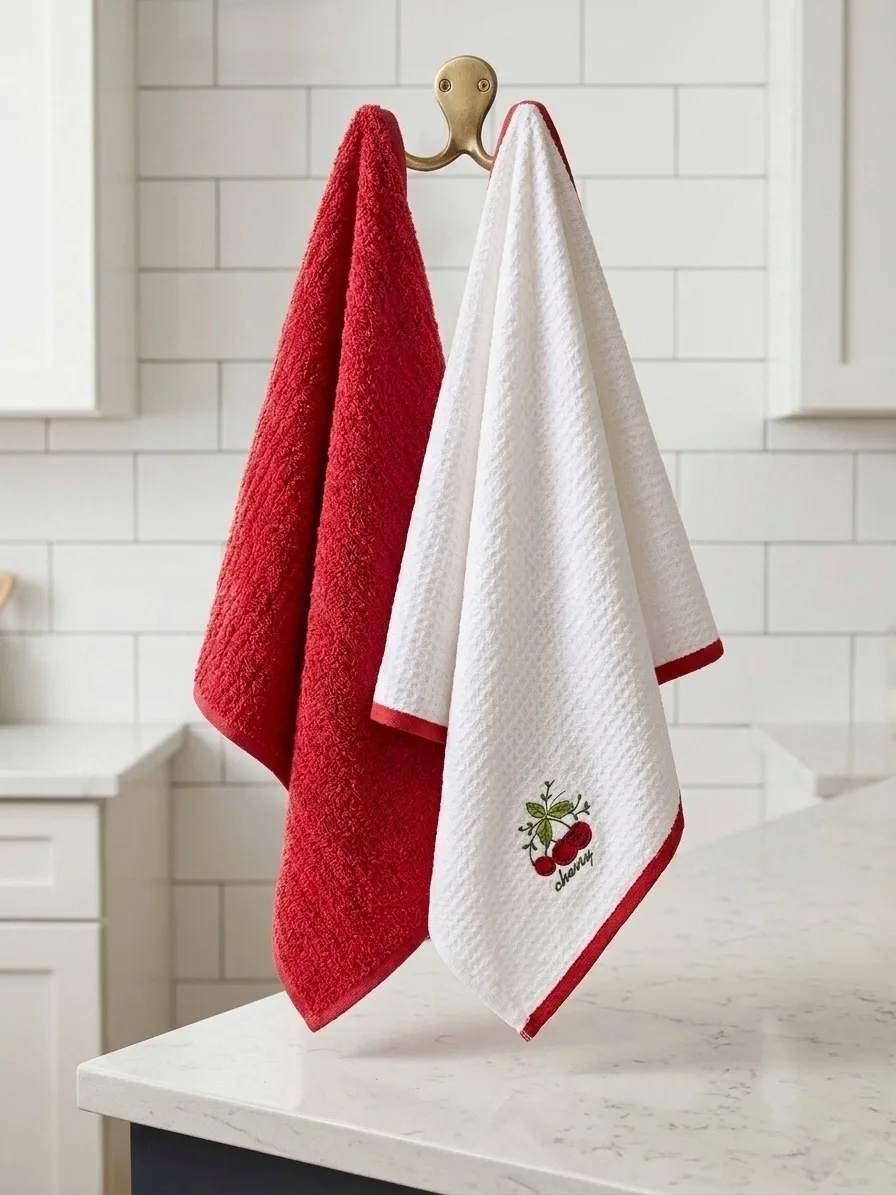 Набор кухонных махровых полотенец (коробка) 40*60 2 шт. / Вишня
