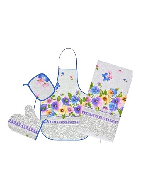 Набор кухонный 4 предмета рогожка / Фартук, варежка, прихватка, полотенце