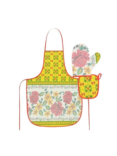 Набор кухонный "Хозяюшка" вафельное полотно / Фартук, варежка, прихватка