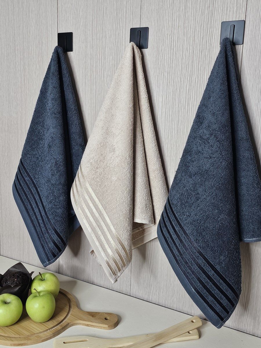 Набор махровых полотенец 40х70 3 шт. / т.сер, беж, т.сер, полоса