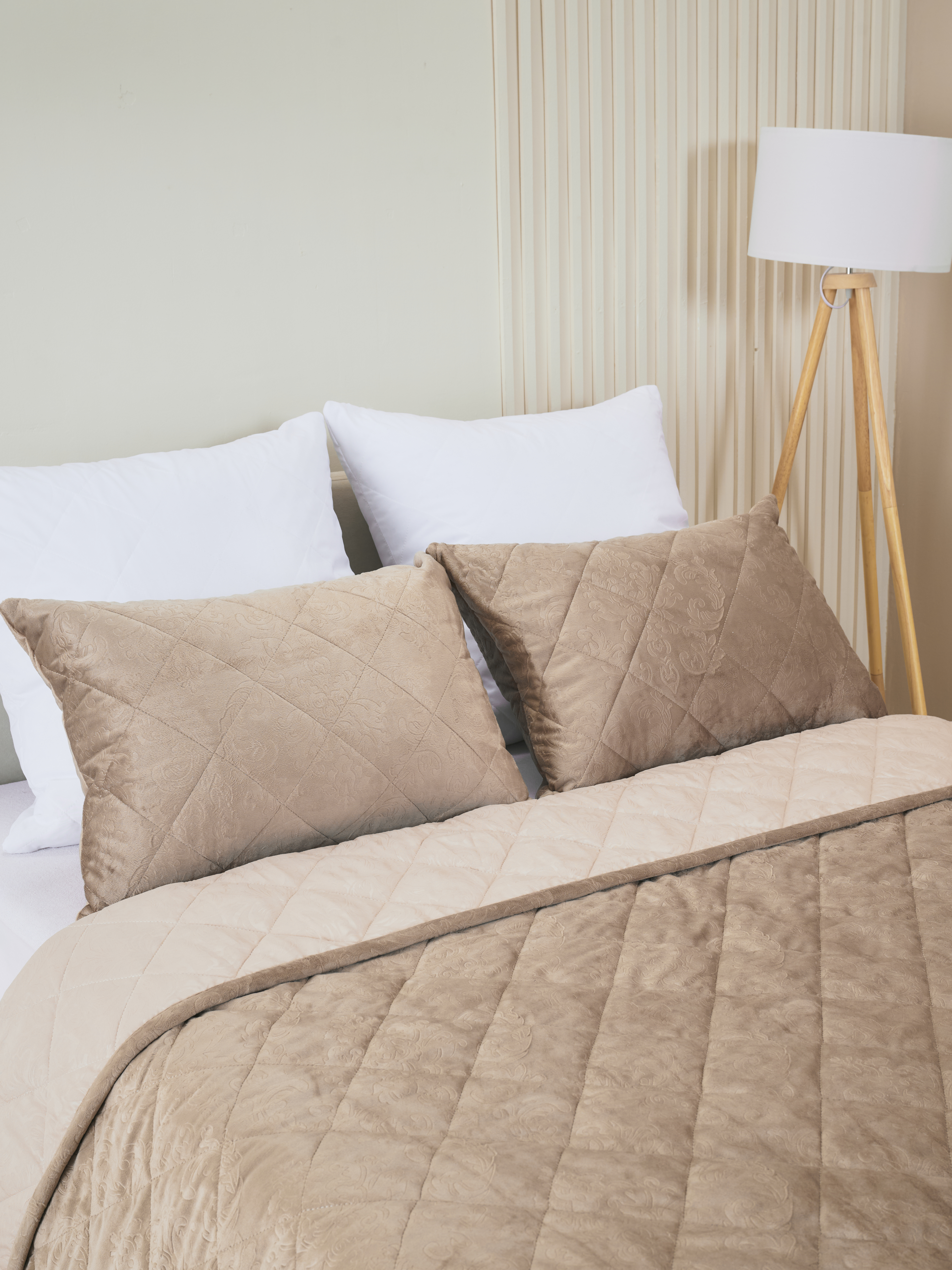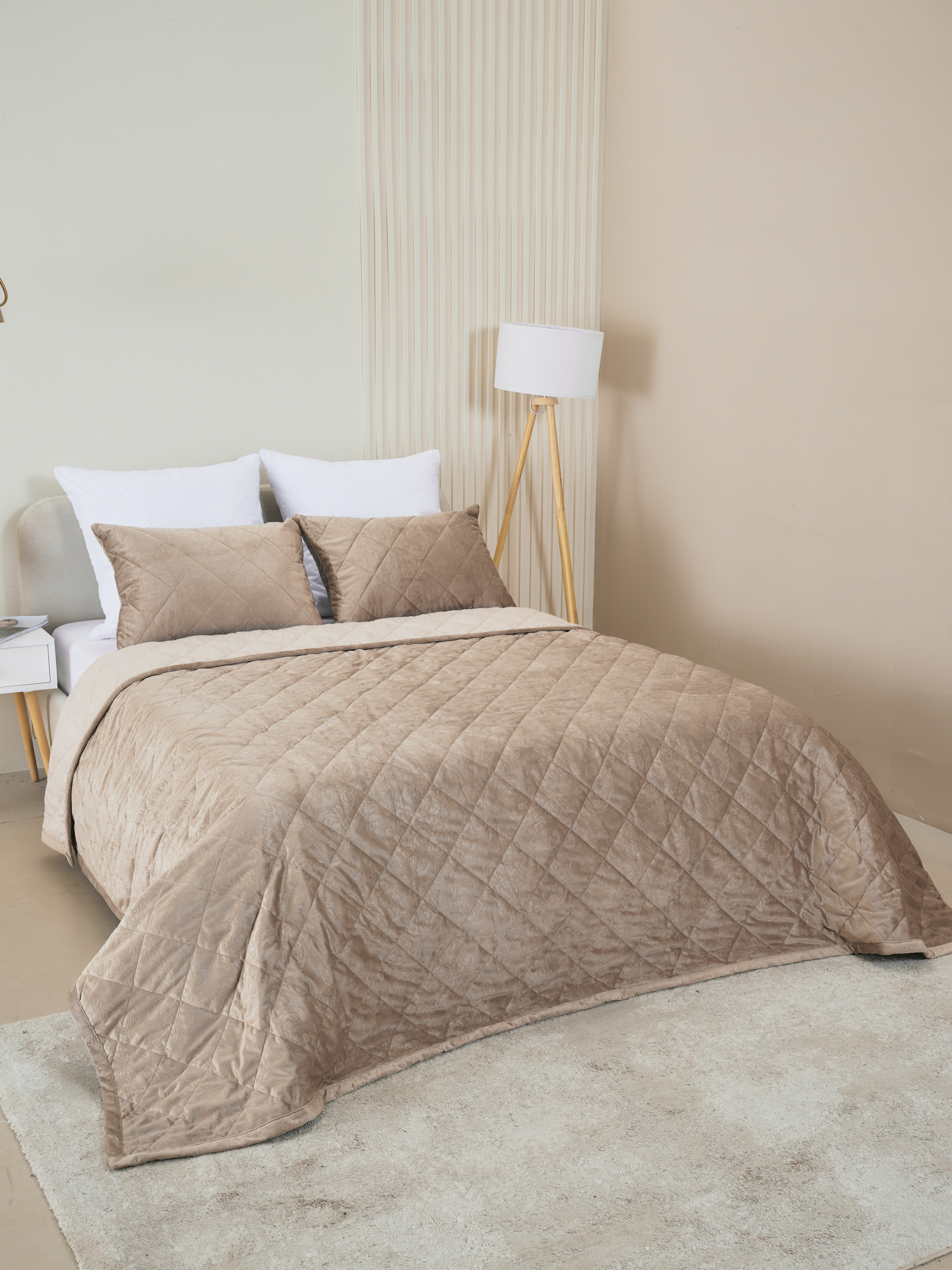 Набор покрывало и чехлы на подушку Кристалл / Бежевый
