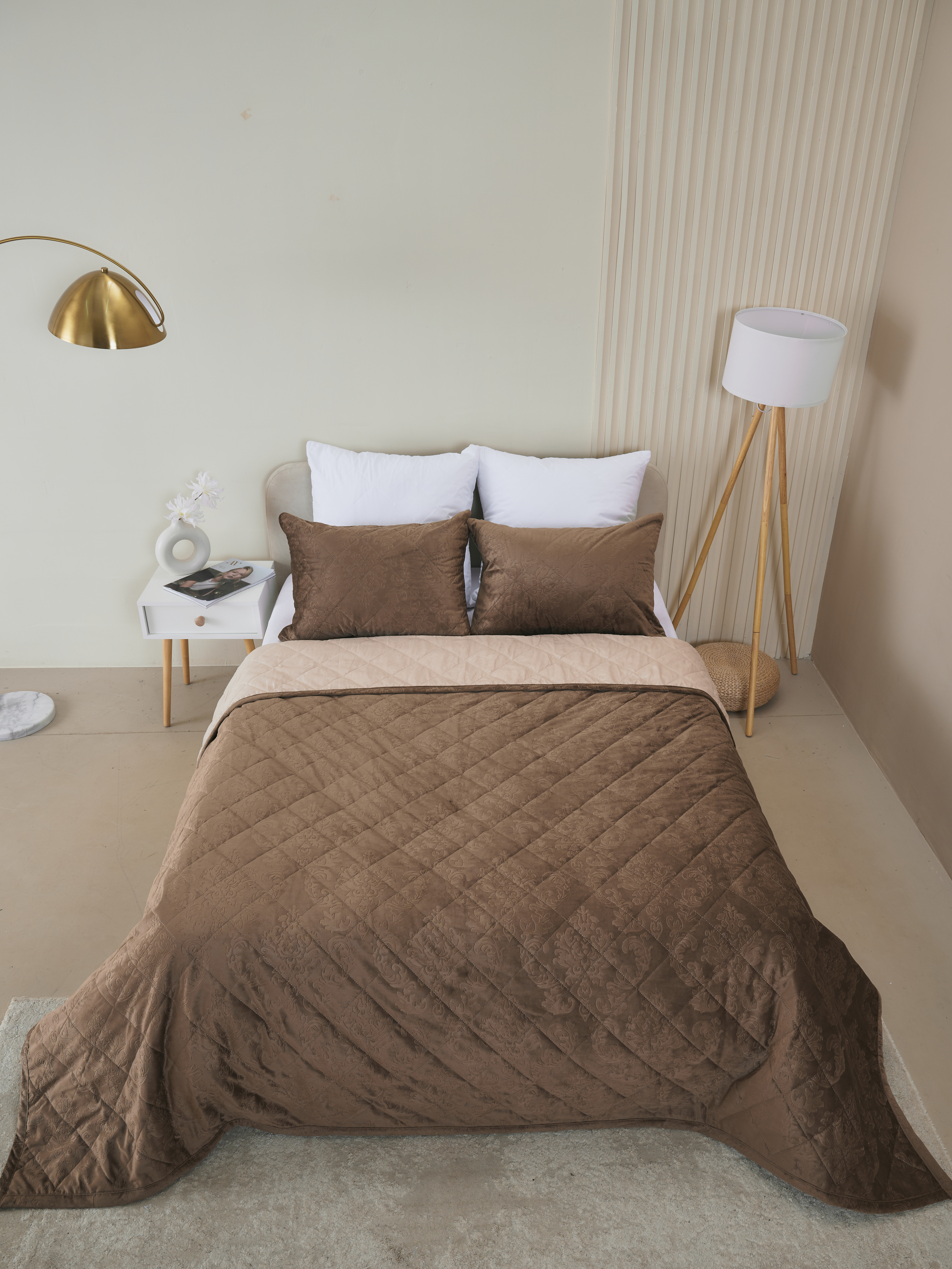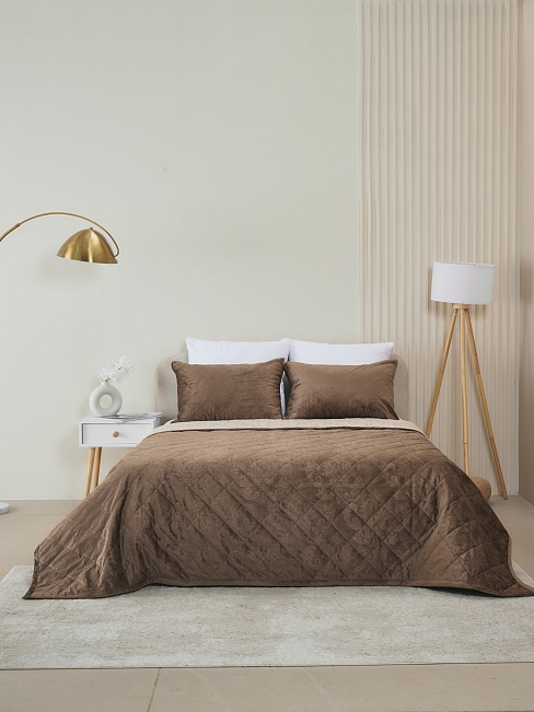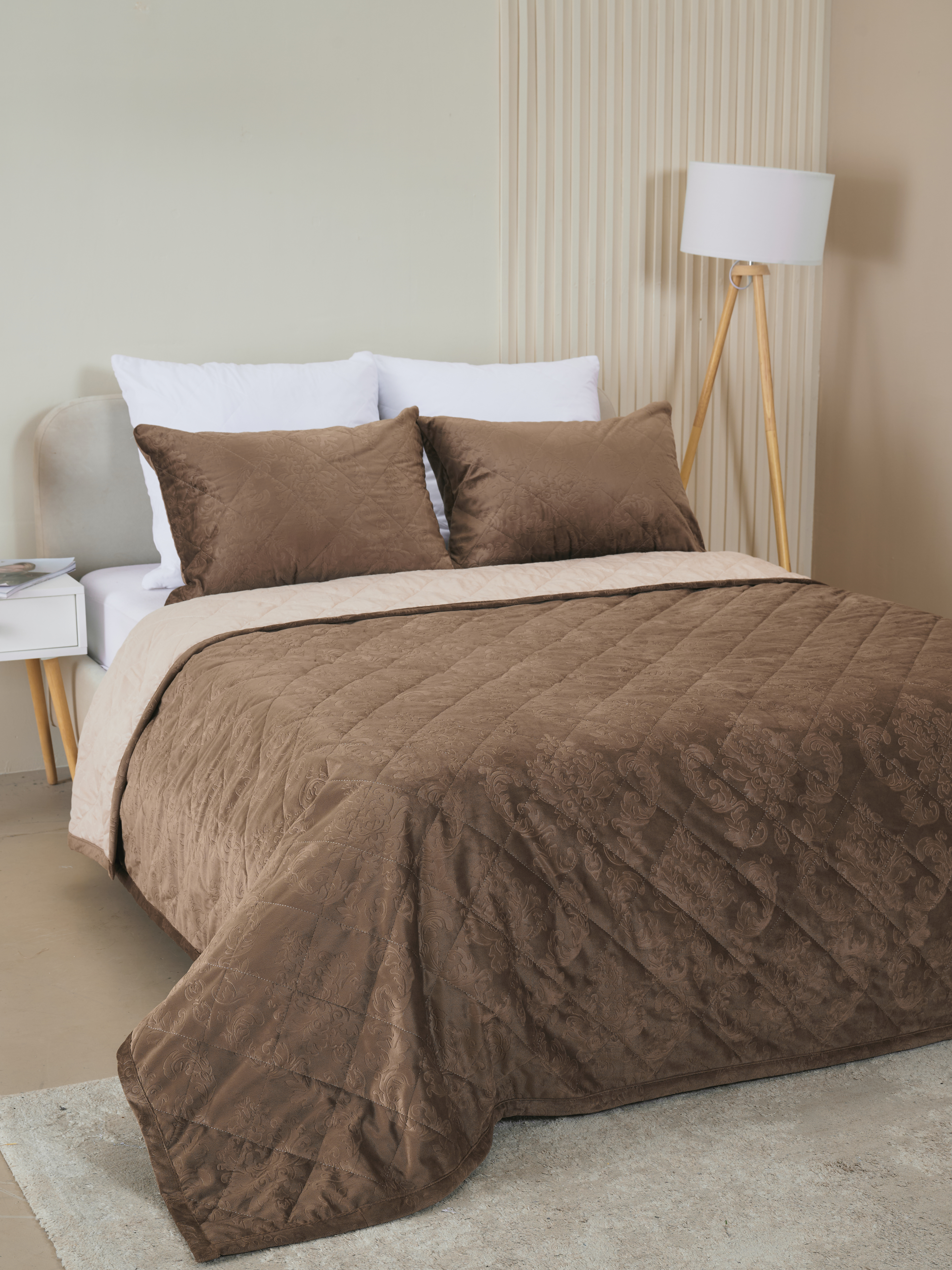 Набор покрывало и чехлы на подушку Кристалл / Коричневый