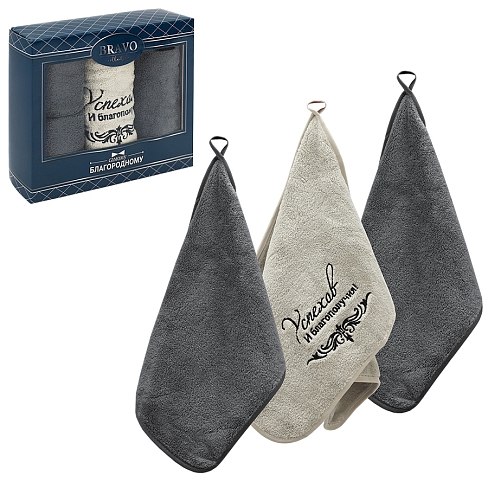 Подарочный набор полотенец "Мэн" - это три полотенца из микрофибры размером 30*50см. Состав 80% полиэстер + 20% полиамид, плотность 300г/м2. Полотенца " Мэн" производятся в Китае по современной технологии, без ущерба для экологии, они мягкие, не электризуются, быстро впитывают влагу. Упаковка набора - картонная подарочная коробка.