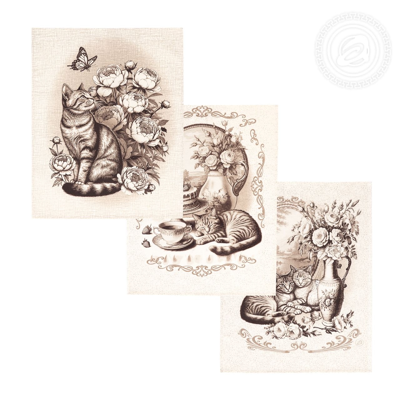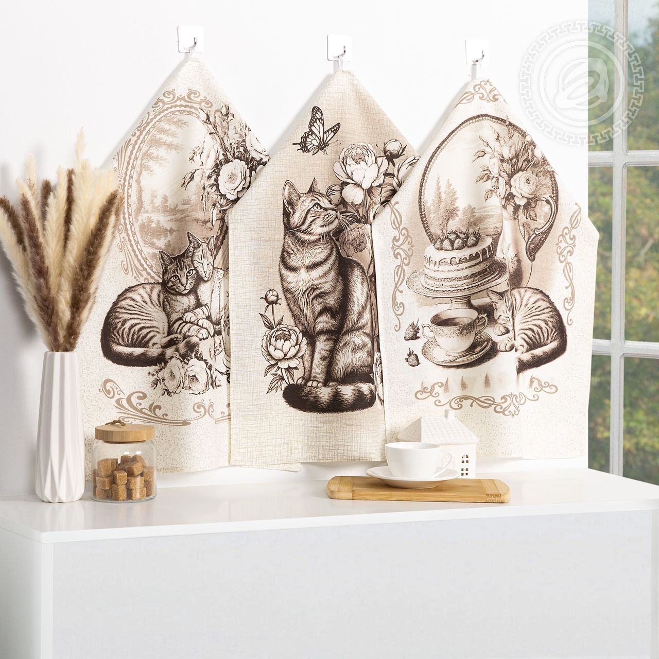 «Ностальгия» – набор полотенец из рогожки для кухни с ретро-принтом. Перед нами задремавшие котики, зеркала в винтажной оправе и букеты пионов и роз. Все эти детали, выполненные в нежных тонах, складываются в необыкновенную композицию, которая создает чувство спокойствия, гармонии и приятной ностальгии. Уют и вдохновение в каждом штрихе!