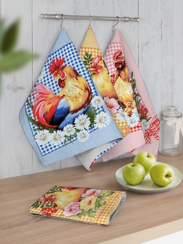 Набор полотенец вафельное полотно 3 шт. / Петушок