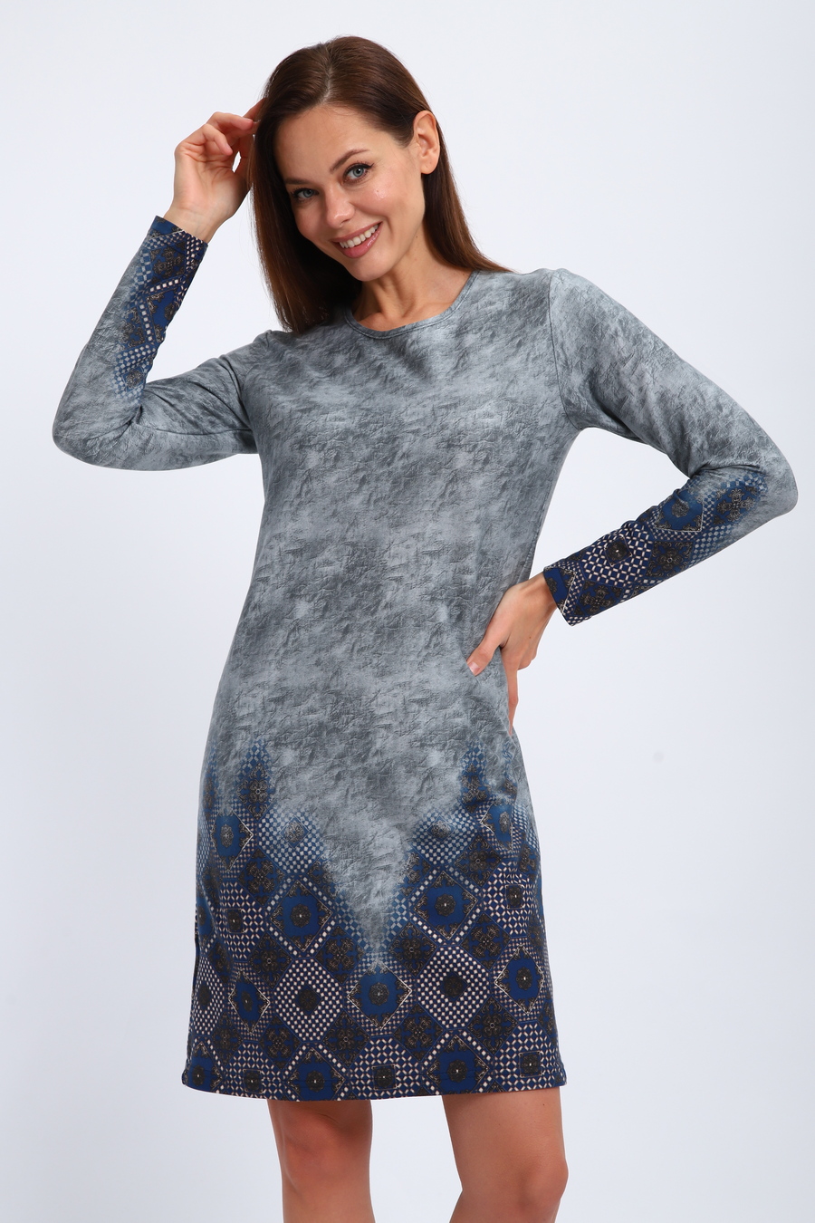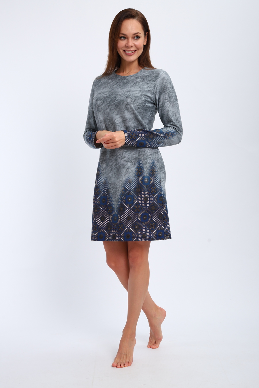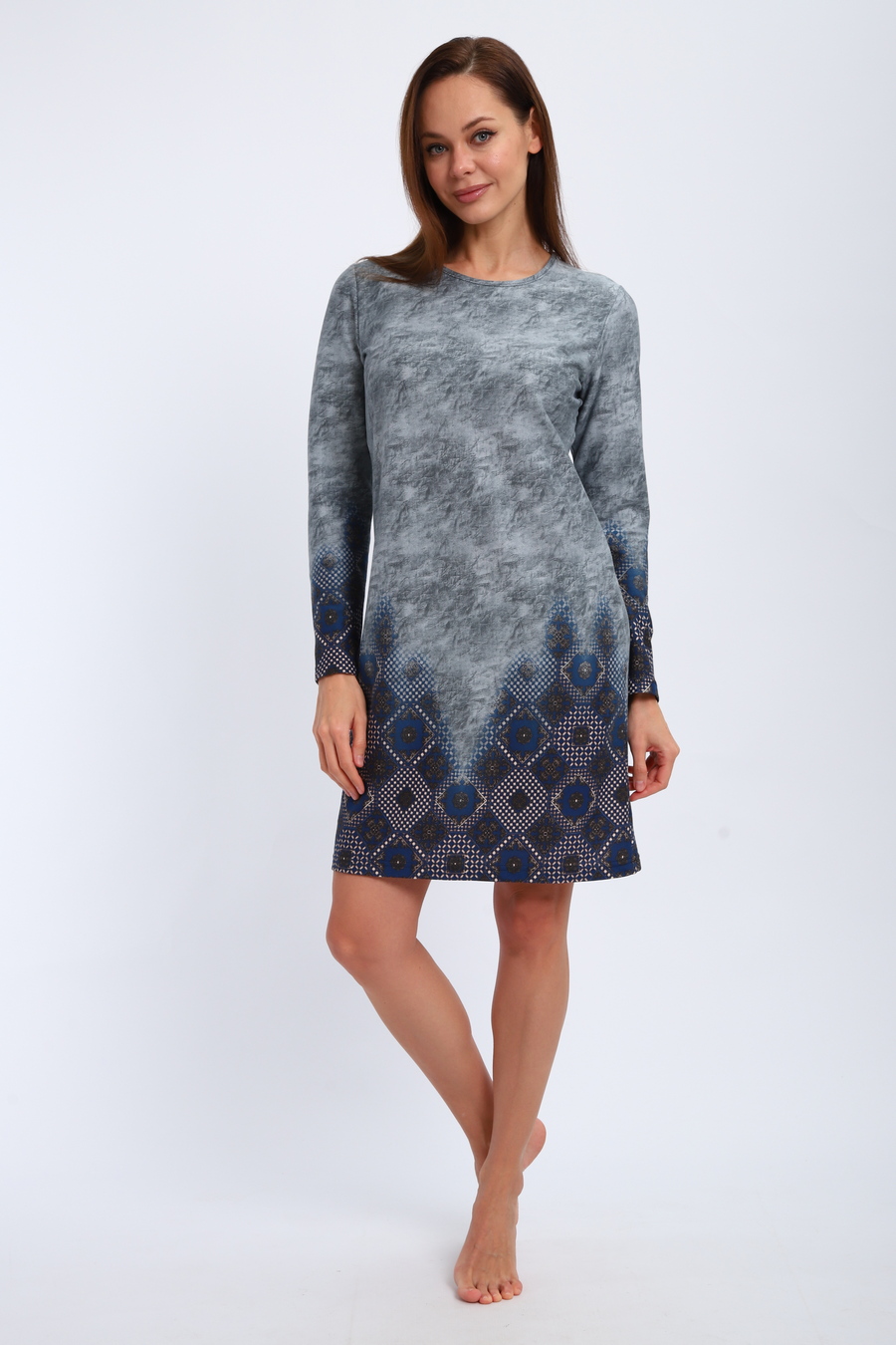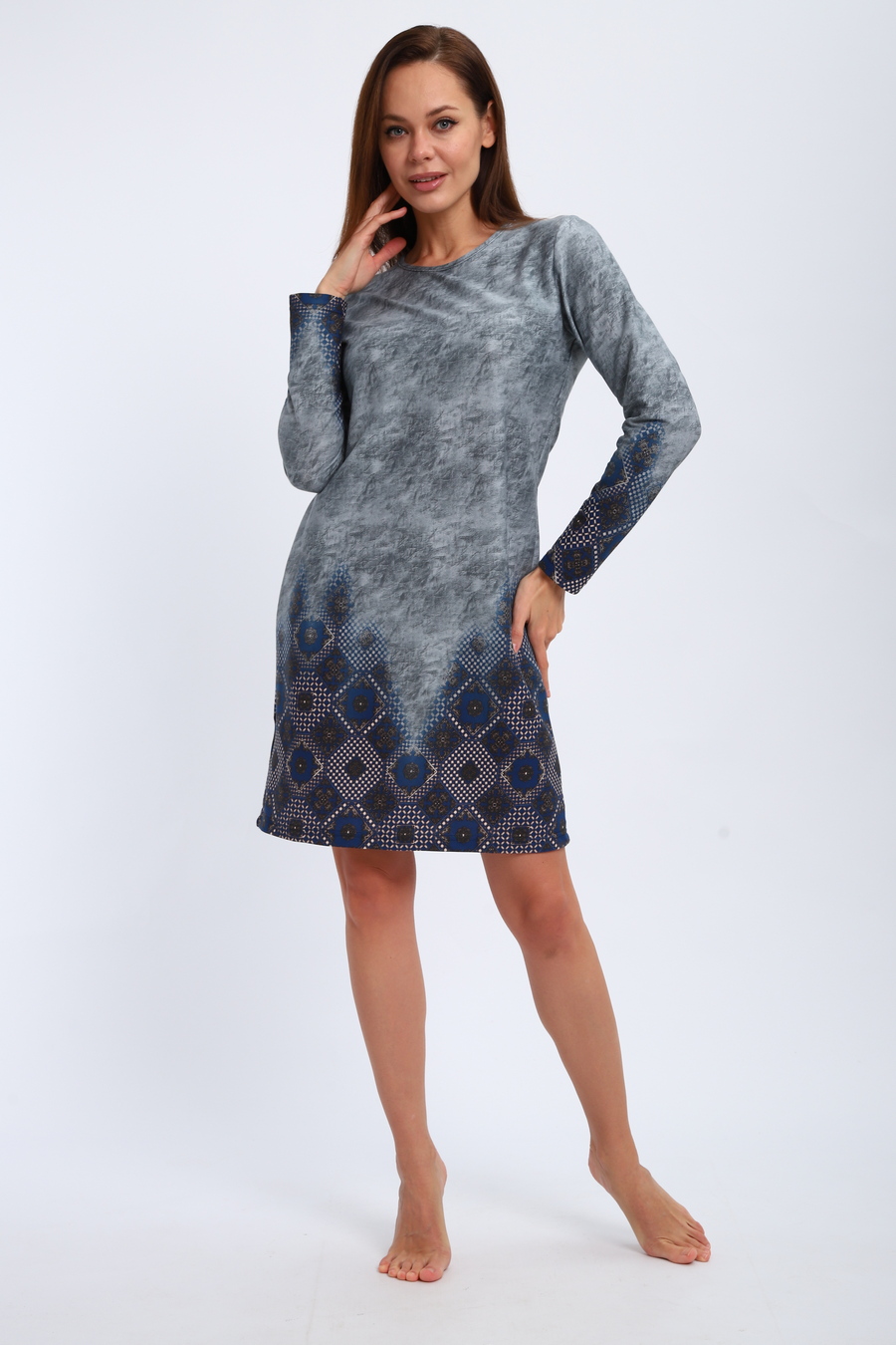 Ночная сорочка из интерлока Соня / Серо-голубой