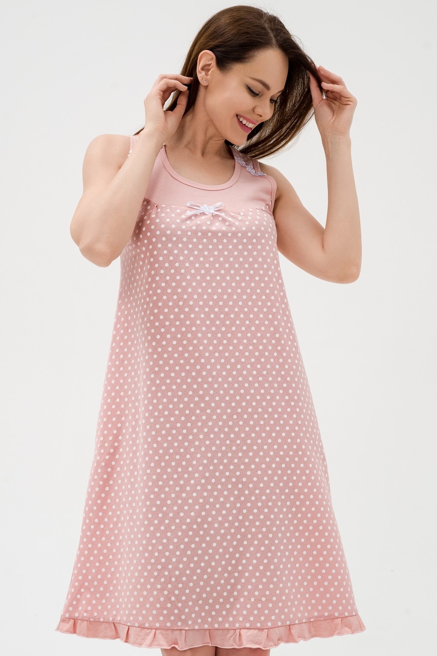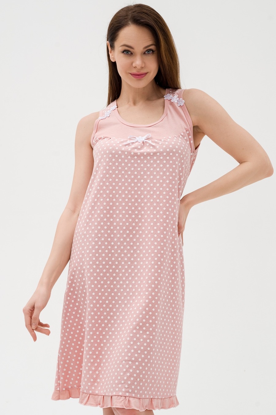 Женская сорочка Василиса / Горошек на какао
