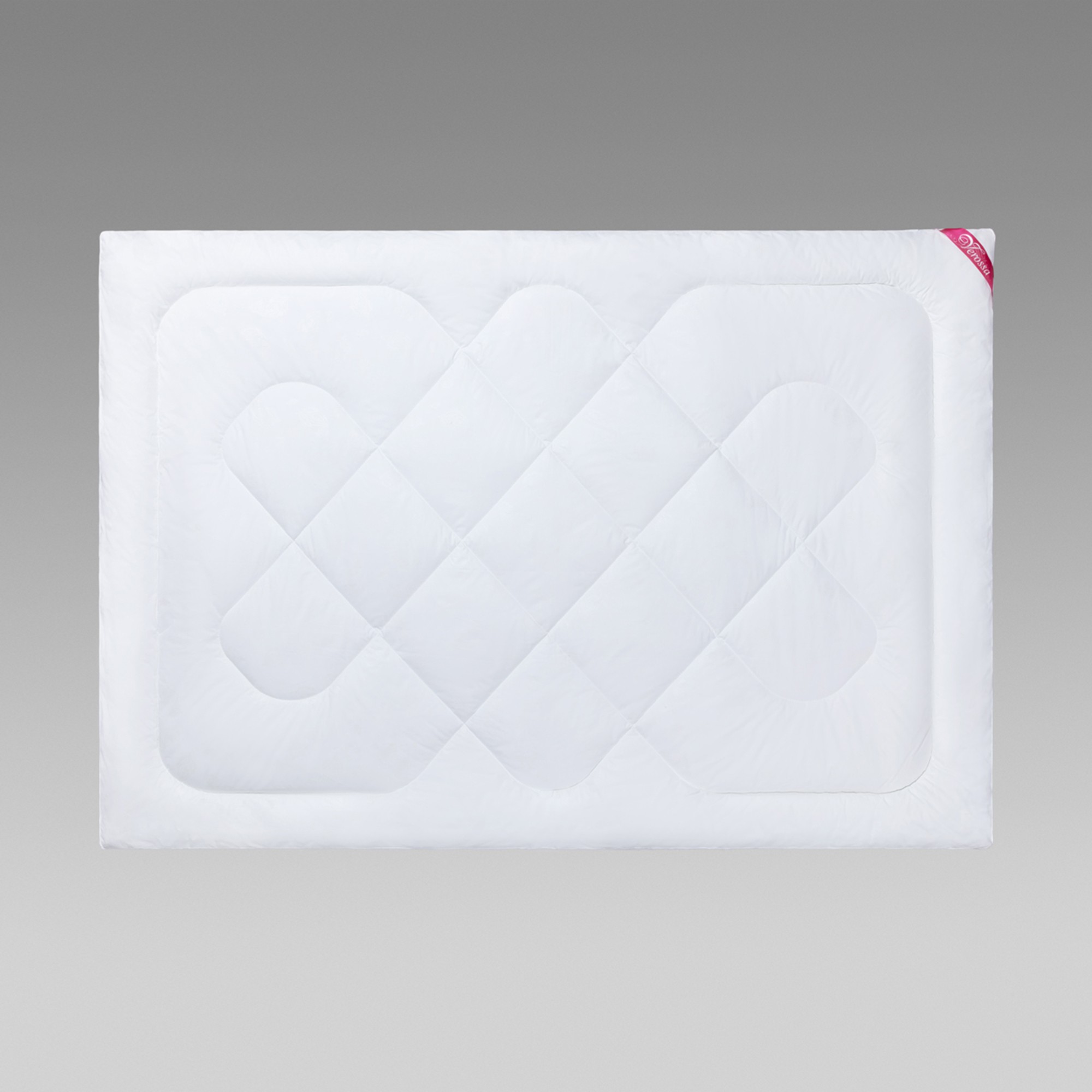 Наполнитель состоит из тончайшего волокна, структура которого повторяет структуру натурального лебяжьего пуха. Волокно в десять раз тоньше волоса человека, именно поэтому изделия из него такие пышные, невесомые и при этом упругие. Они отлично регулируют тепло, препятствуют возникновению бактерий и образованию пылевого клеща. Прочная натуральная ткань чехла с «перламутровым» узором приятна на ощупь, не требует особого ухода.
