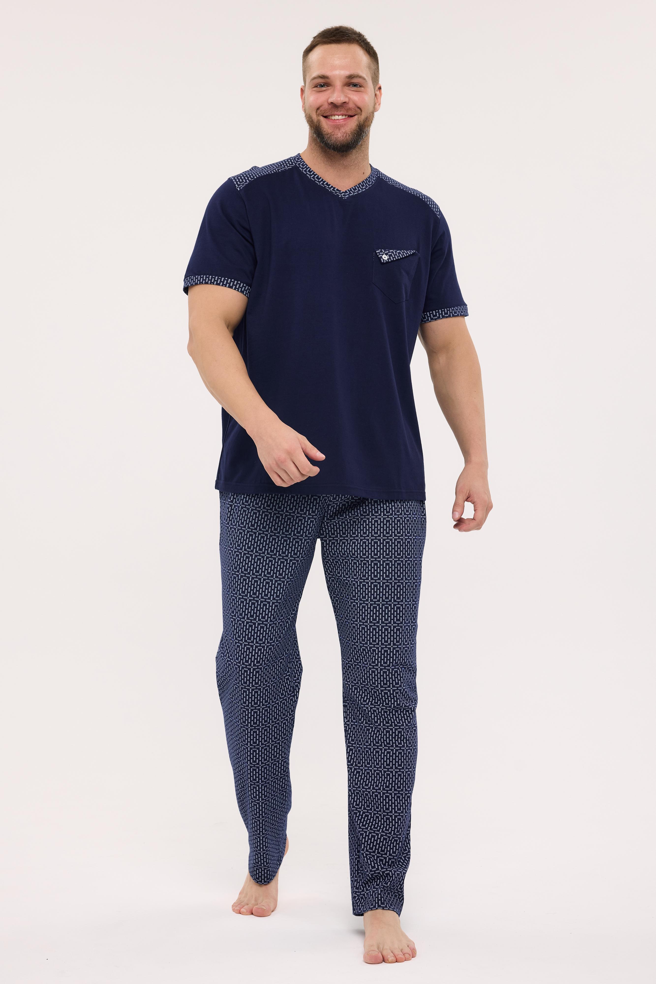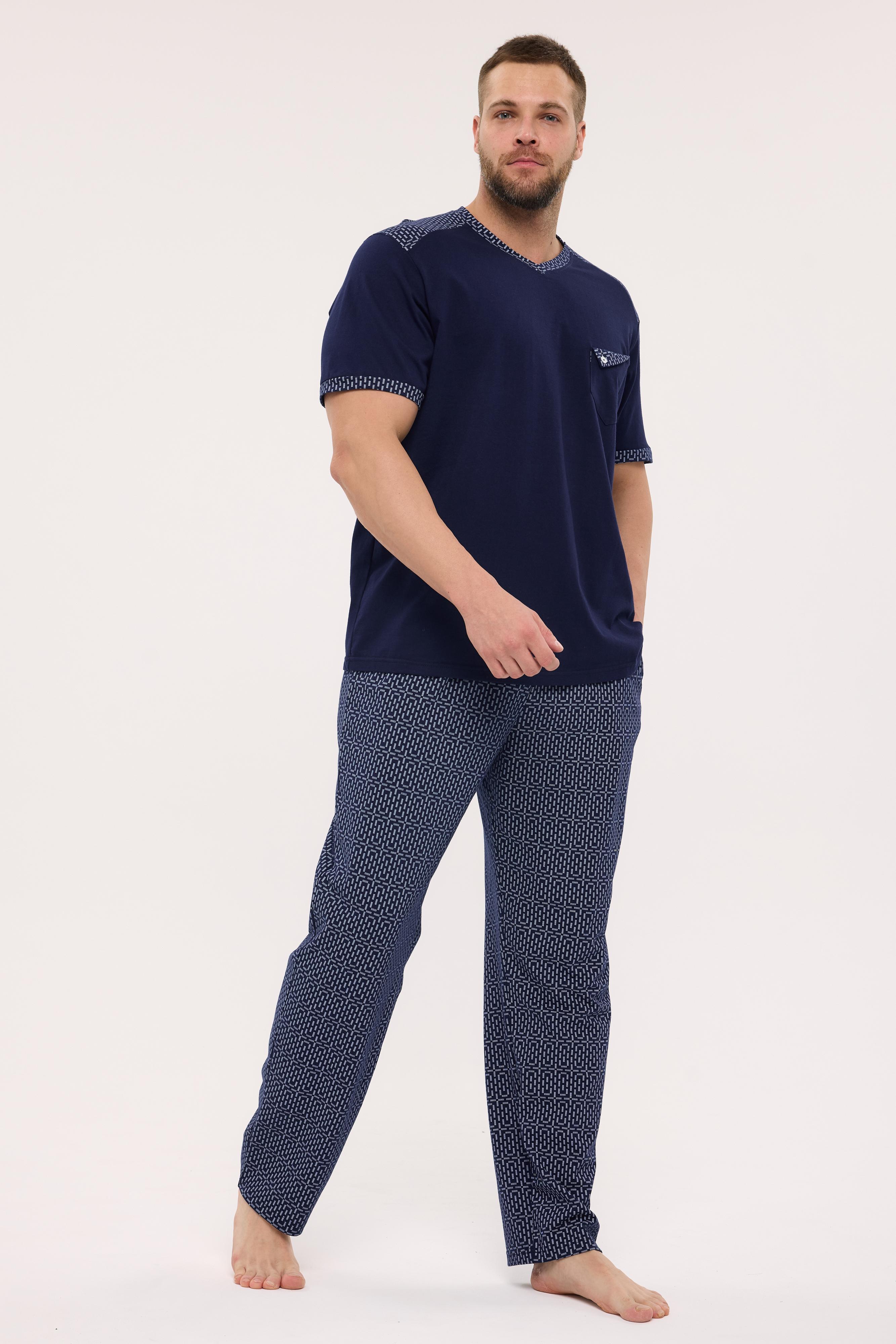 Пижама Искандер представляет собой комфортный домашний комплект, состоящий из футболки и брюк, выполненный из качественного трикотажного полотна кулирка. Материал отличается мягкостью и приятной текстурой, что делает пижаму идеальной для ежедневного использования.