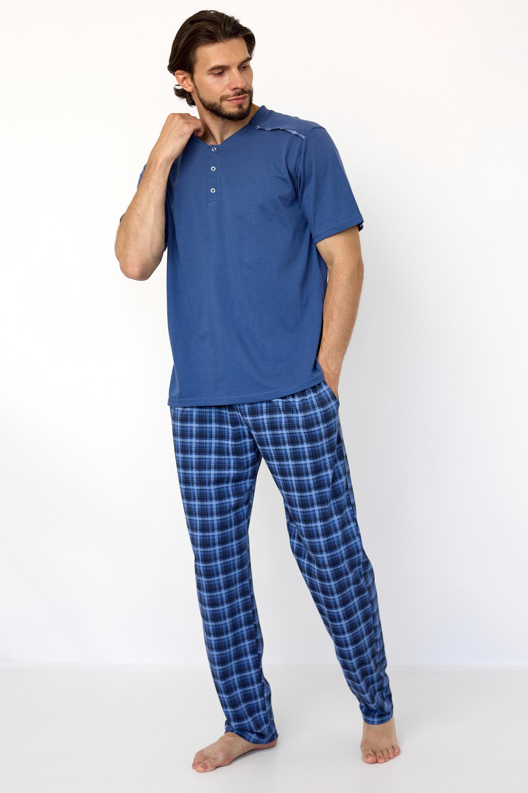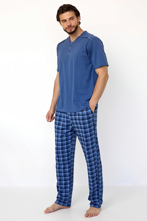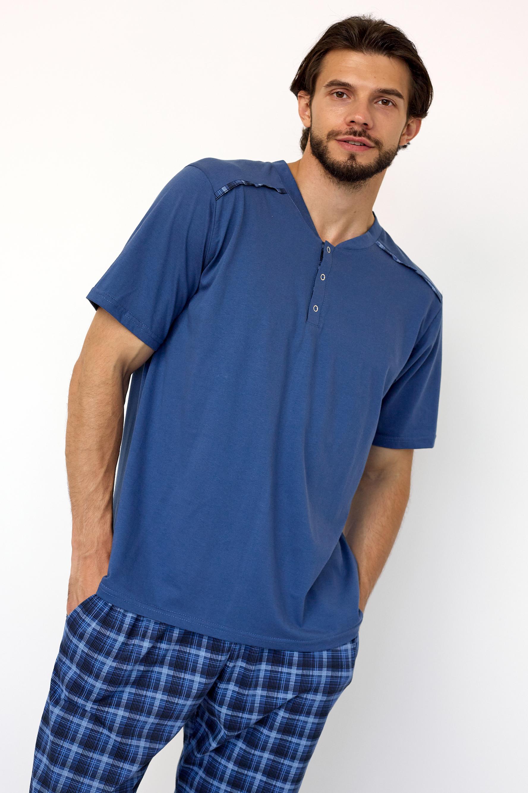 Пижама Клетка представляет собой комфортный домашний комплект, состоящий из футболки и брюк, выполненный из качественного трикотажного полотна кулирка. Материал отличается мягкостью и приятной текстурой, что делает пижаму идеальной для ежедневного использования.