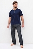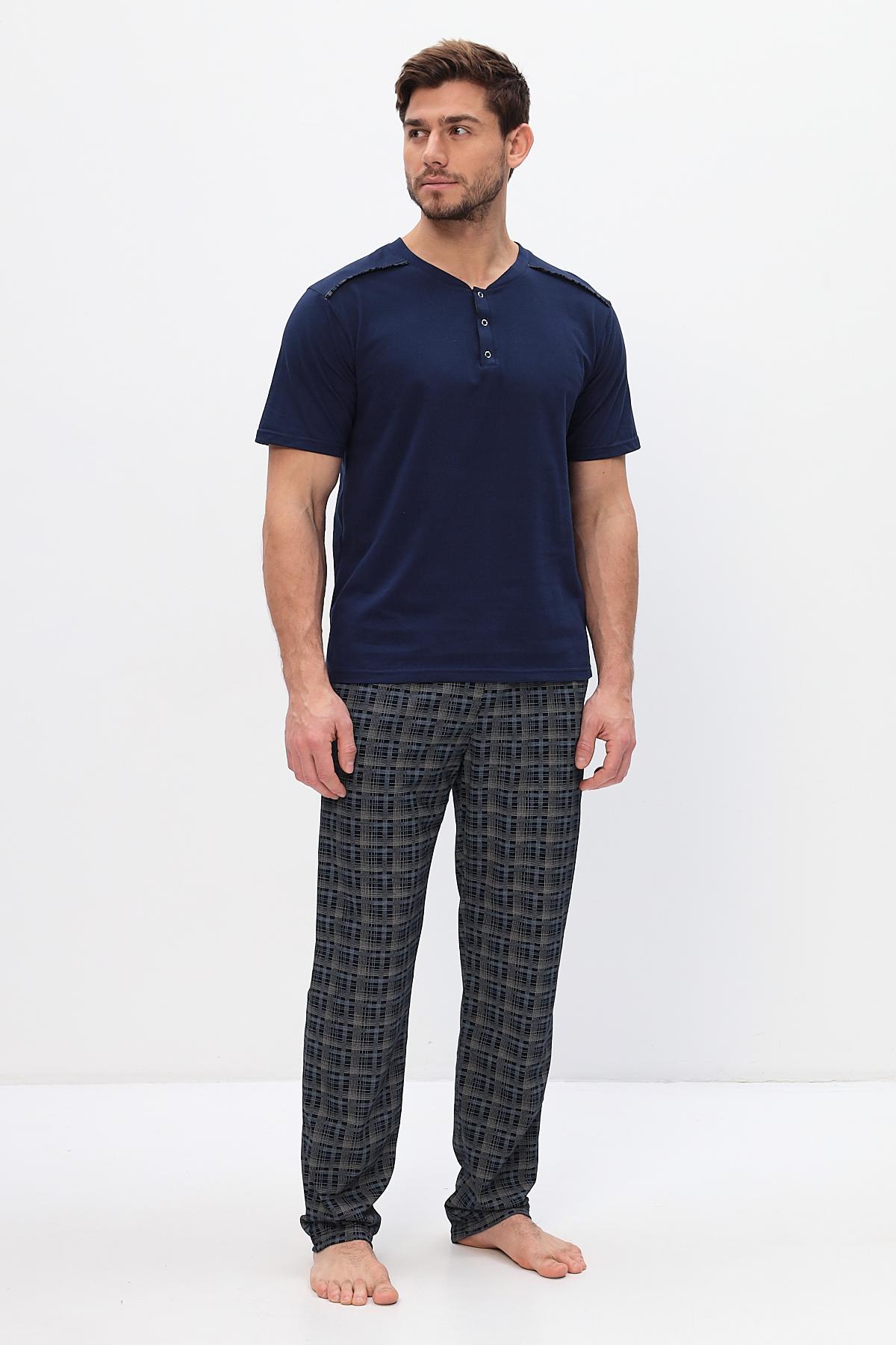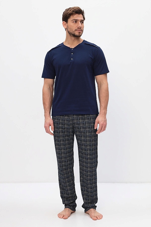 Пижама Клетка представляет собой комфортный домашний комплект, состоящий из футболки и брюк, выполненный из качественного трикотажного полотна кулирка. Материал отличается мягкостью и приятной текстурой, что делает пижаму идеальной для ежедневного использования.