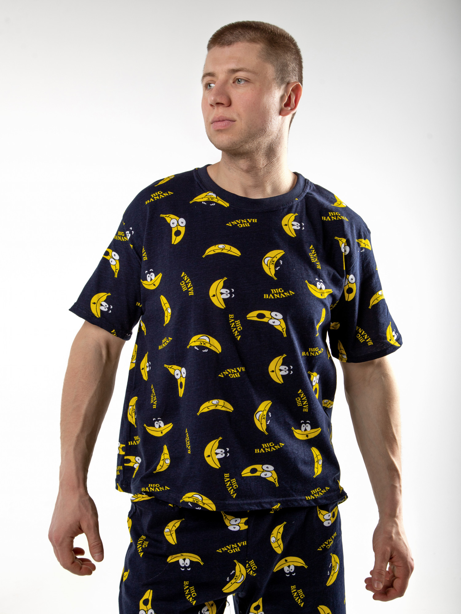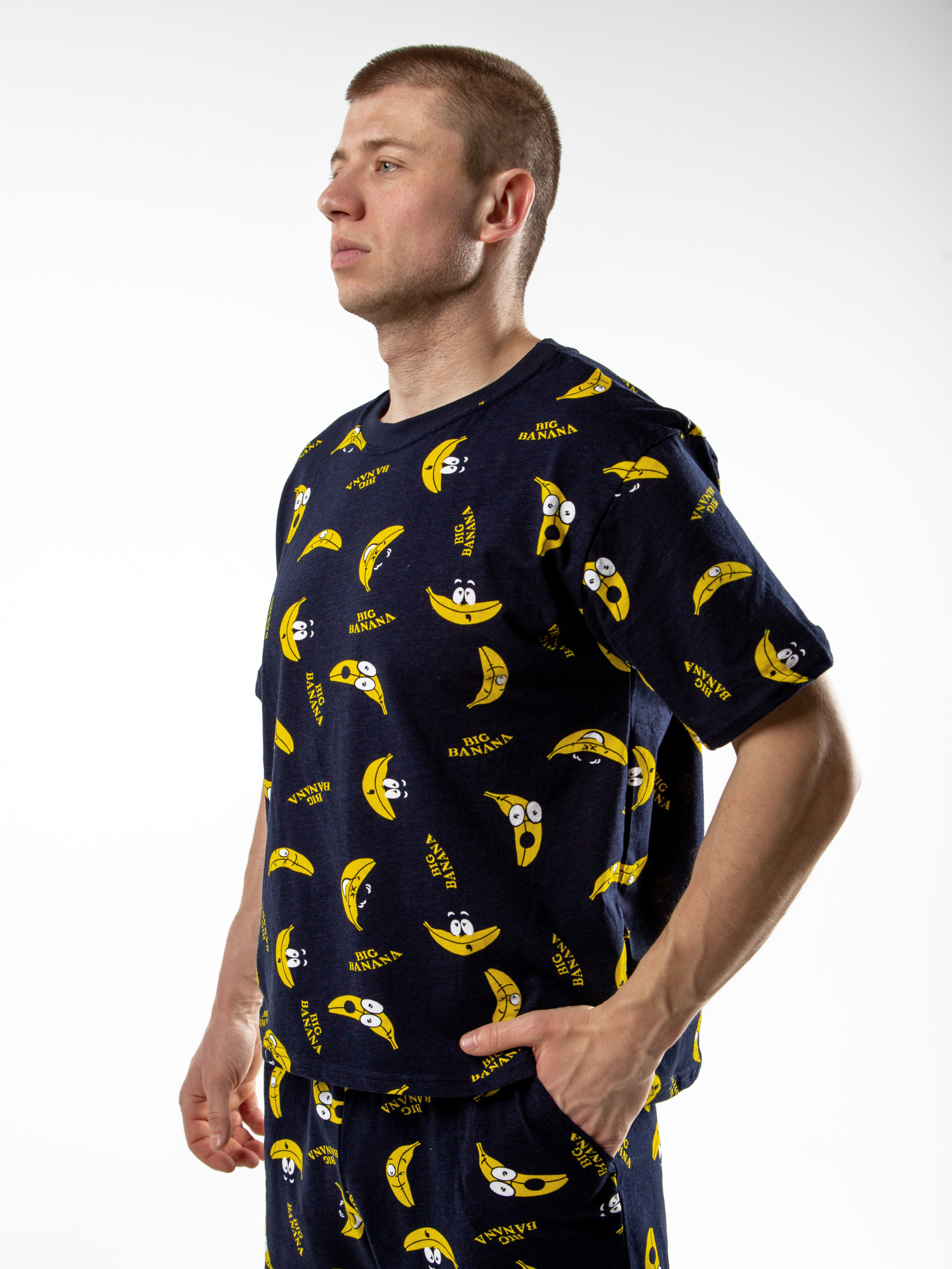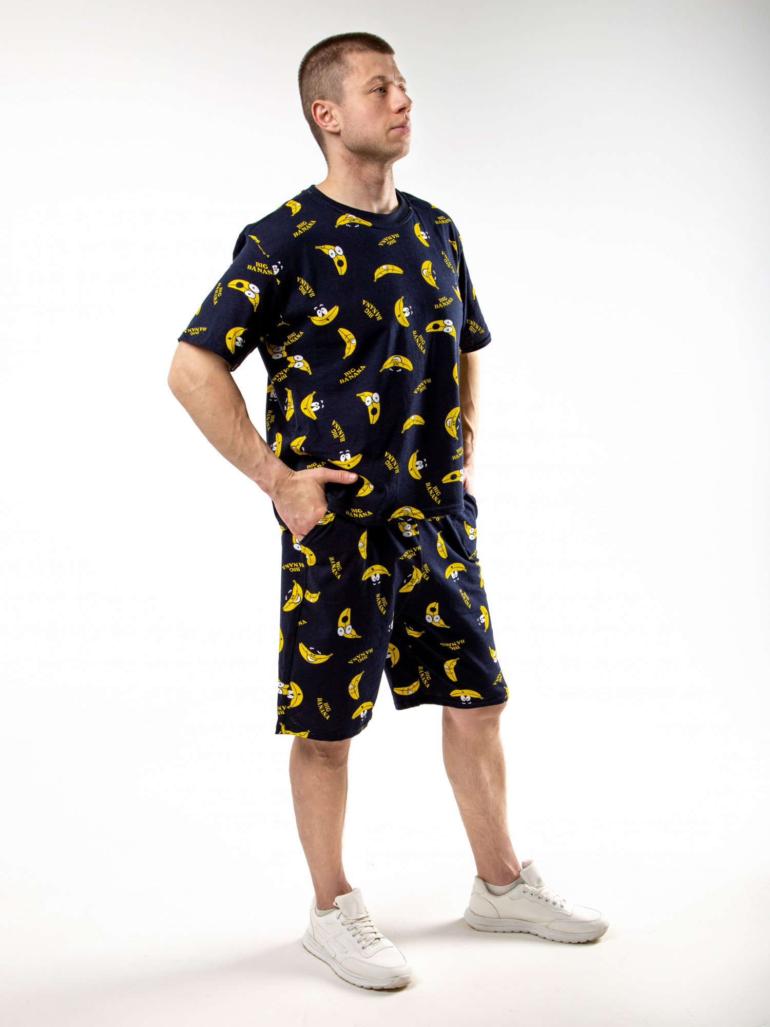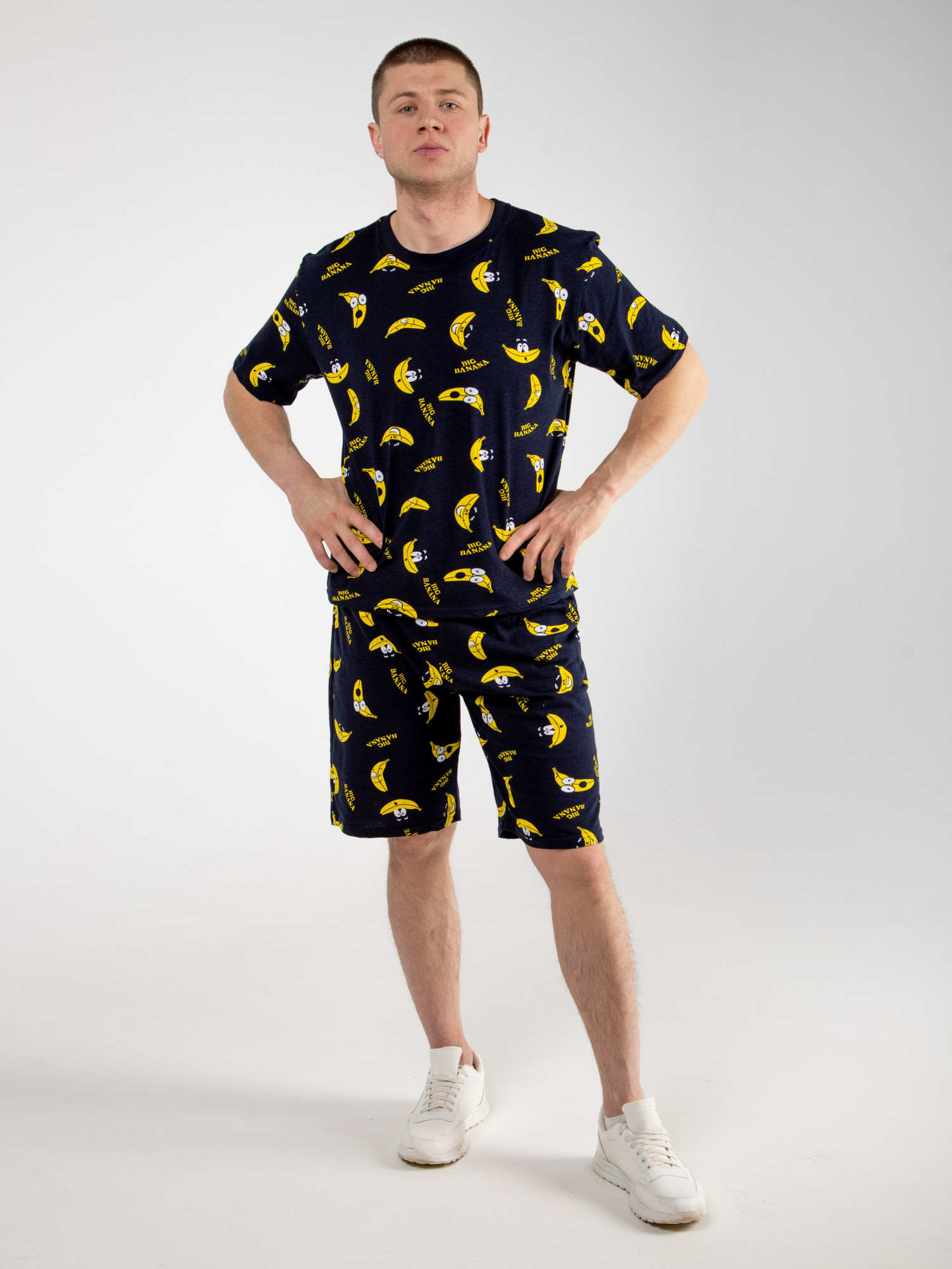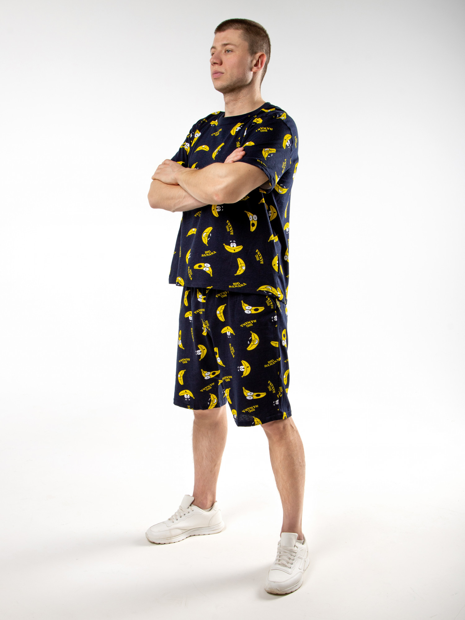 Мужская пижама с шортами из легкой хлопковой ткани.